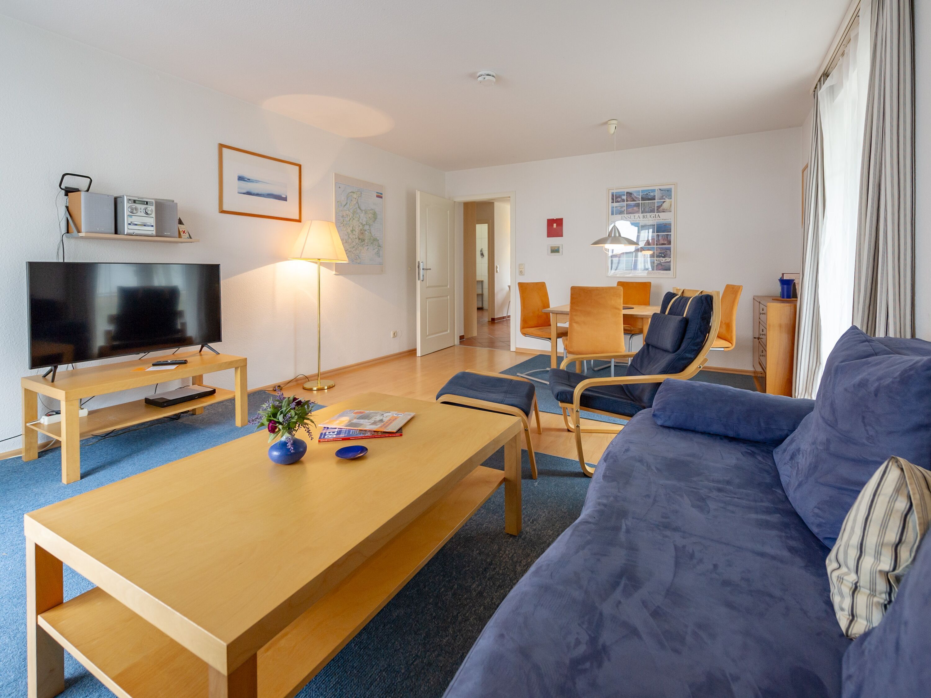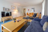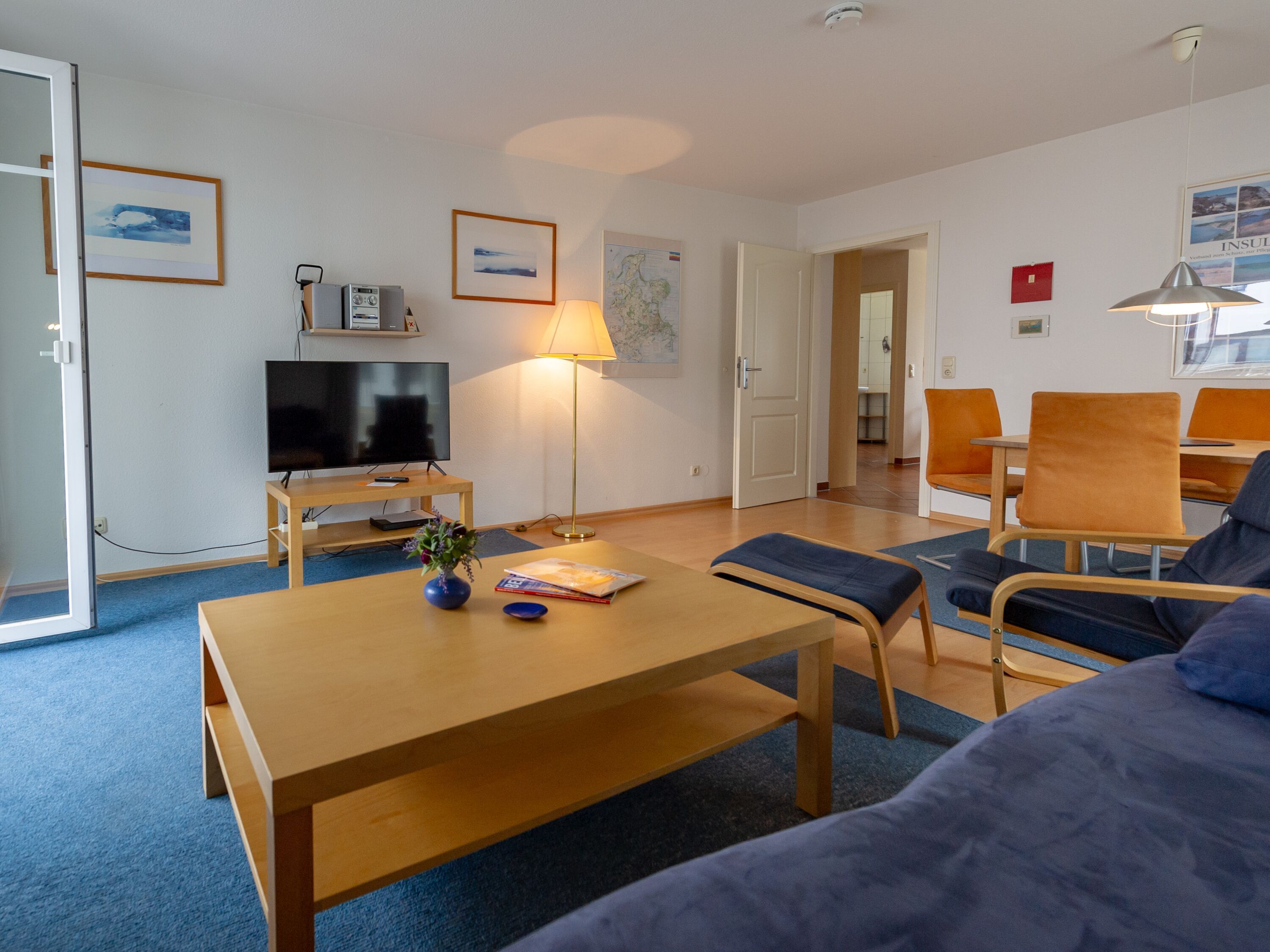 Die Wohnung verfügt über ein großes Wohnzimmer mit einer gemütlichen Couch, einem Esstisch, einem Flachbild-TV, einer Stereoanlage mit CD-Player, einen DVD-Player.