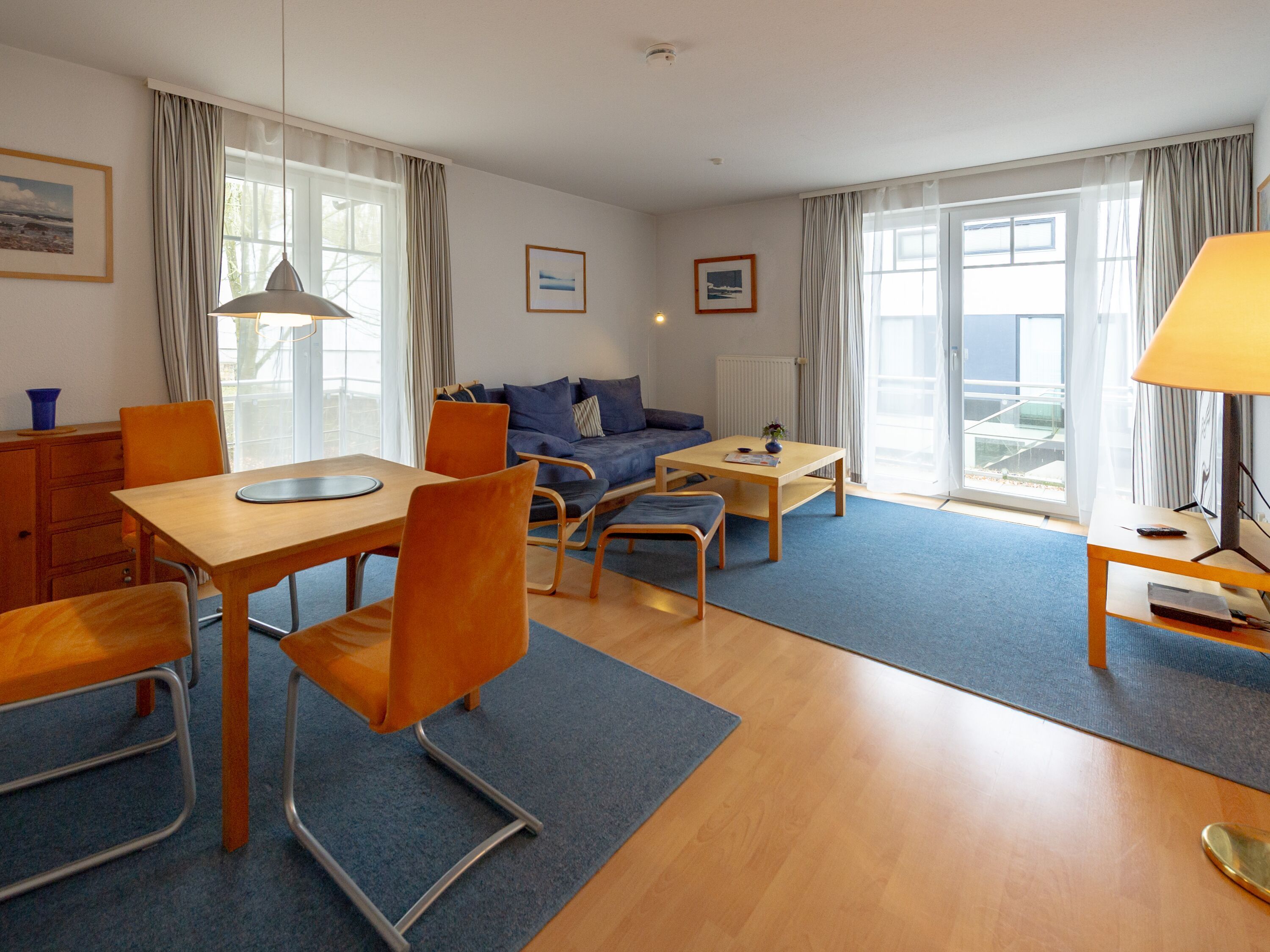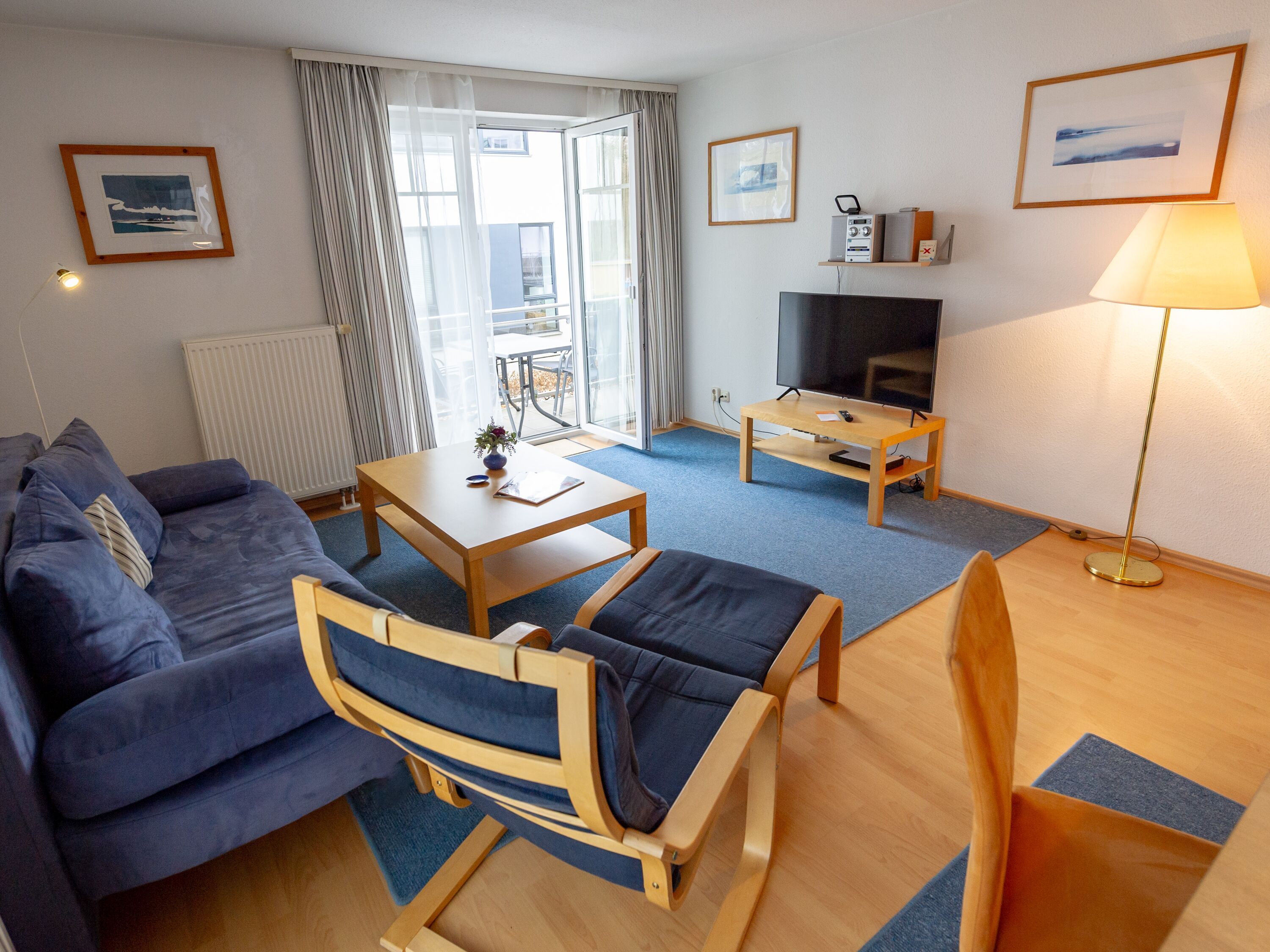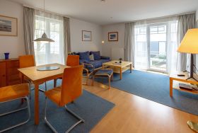 Dieses schöne 2-Raum-Appartement im 1. Obergeschoss ist ca. 65 m² groß und bietet Ihnen gleich zwei möblierte Balkone, nach Osten und Westen gerichtet, so dass Sie ganz nach Belieben dem Lauf der Sonne folgen können.
