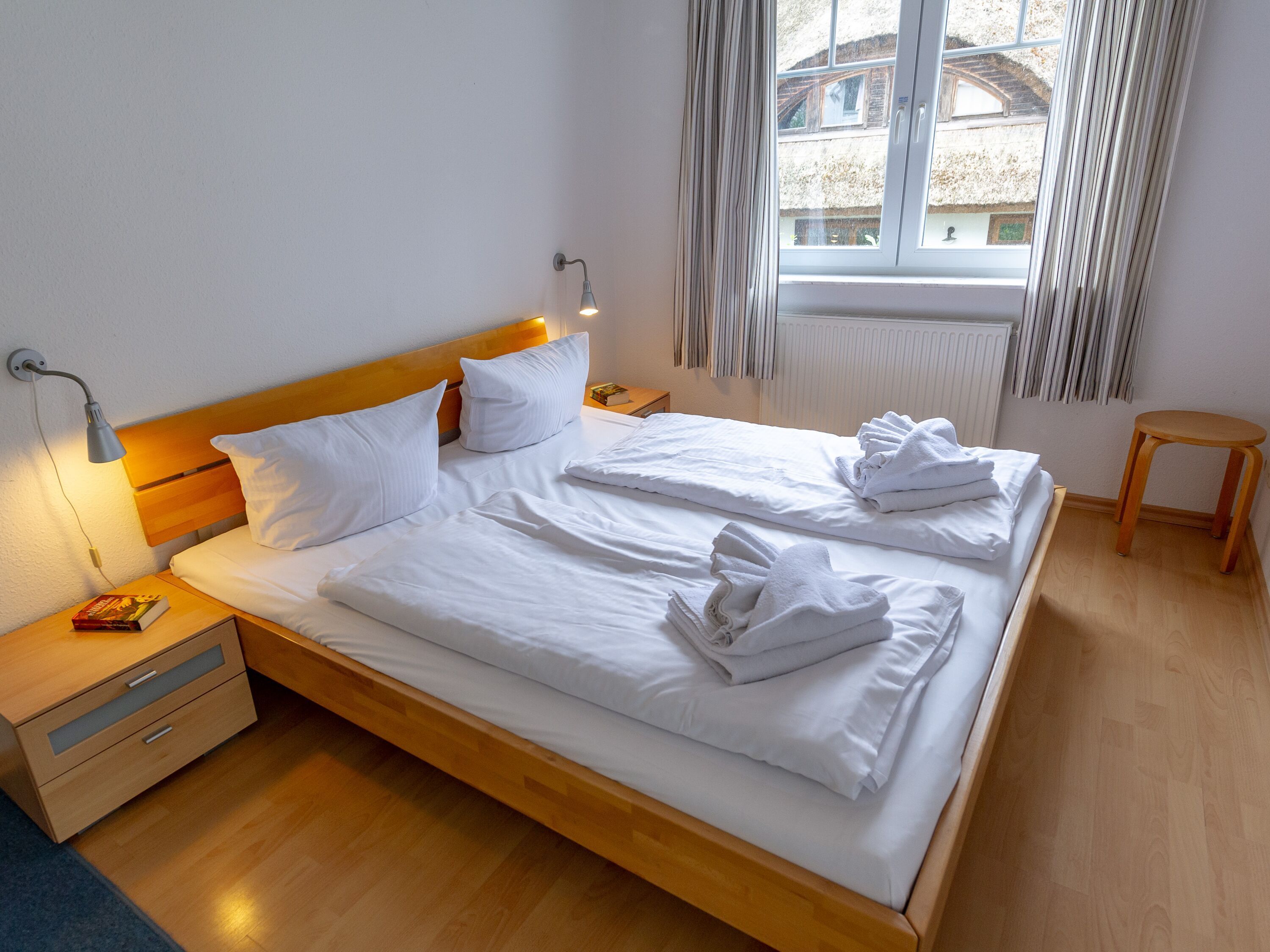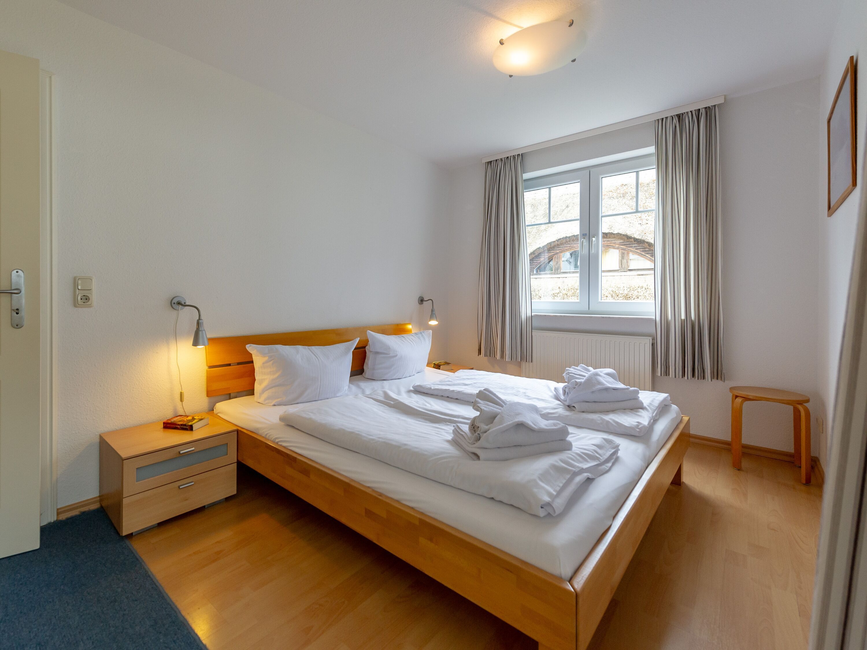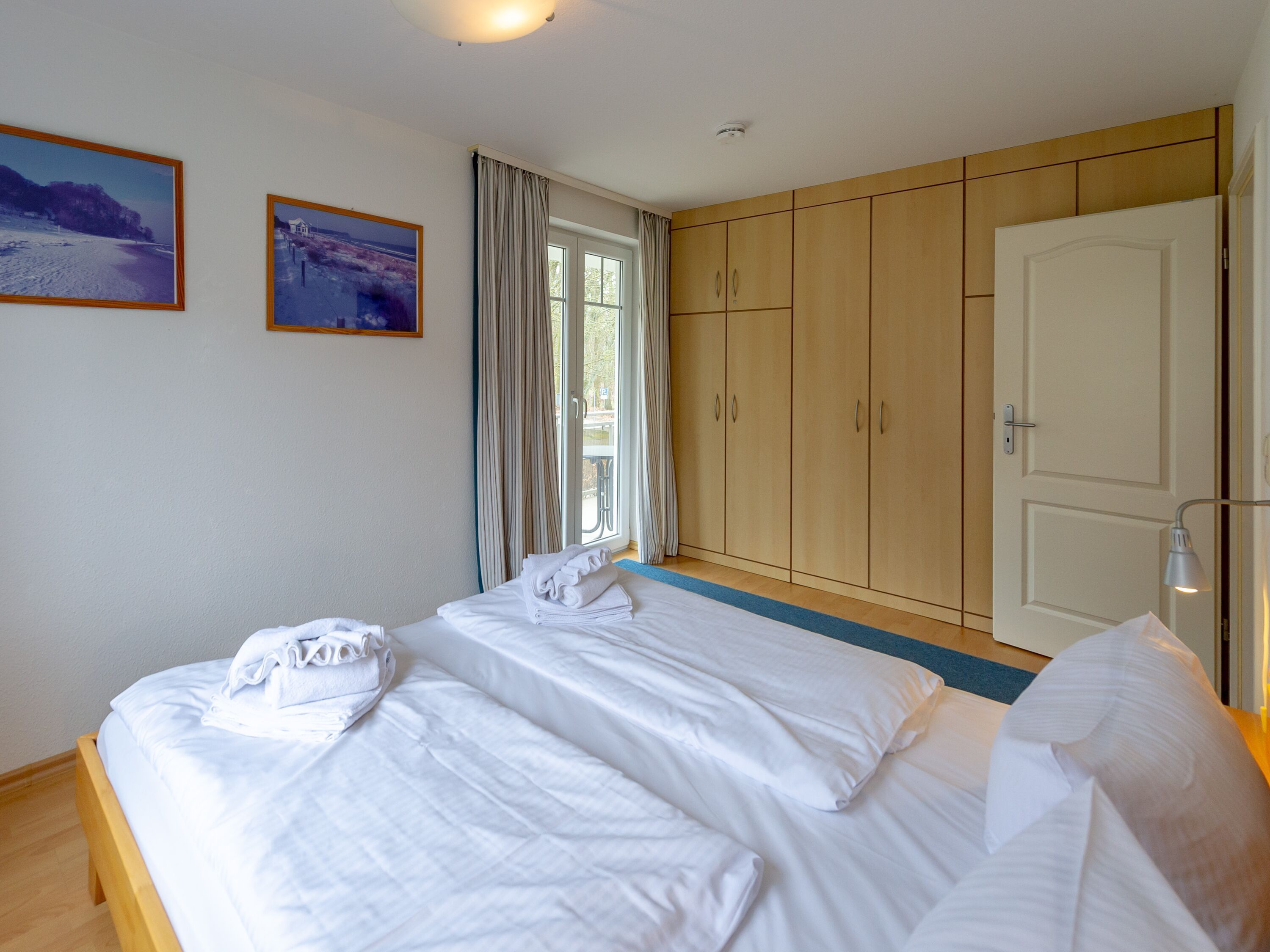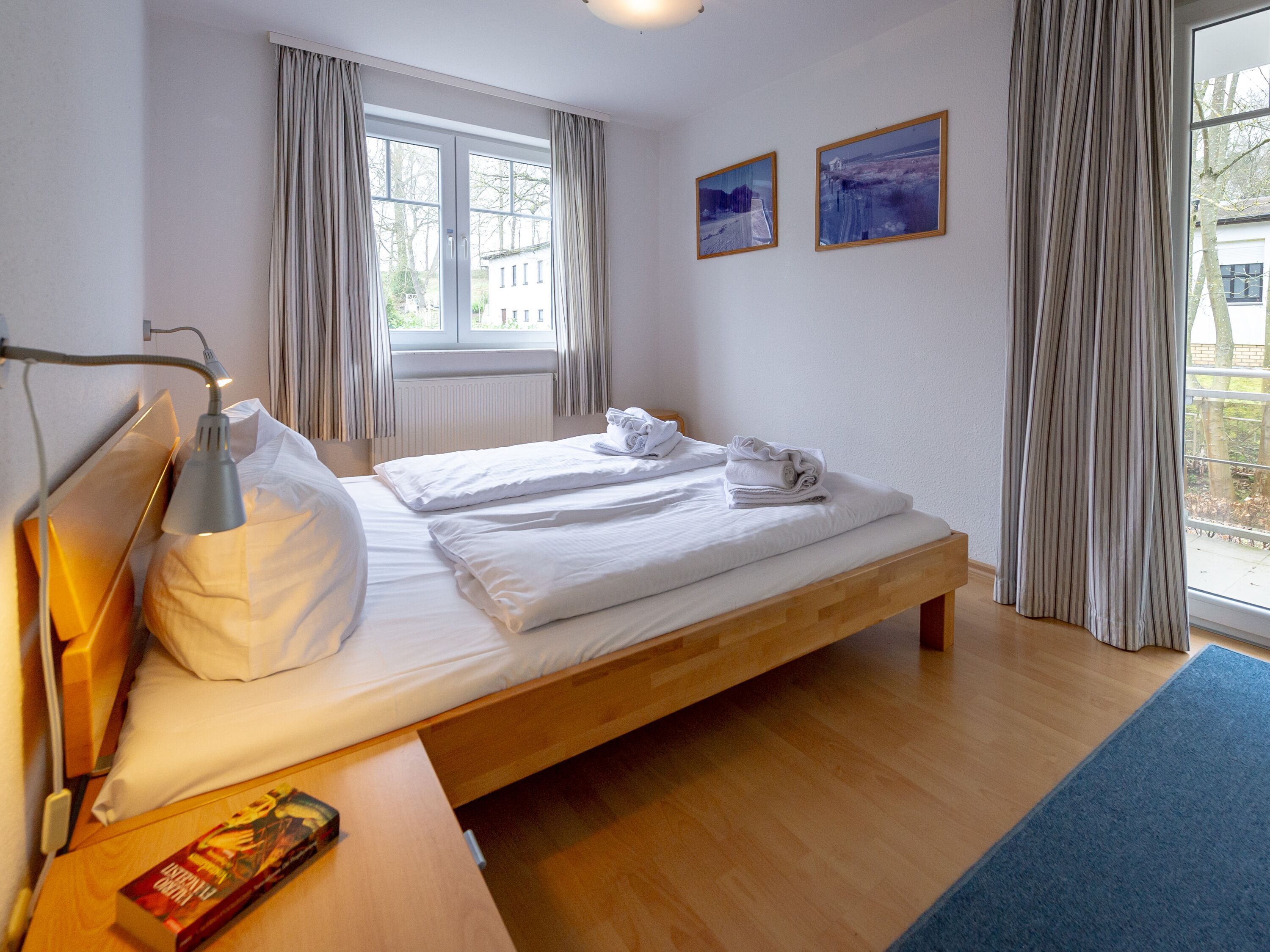 Ihr Schlafzimmer mit einem komfortablen Doppelbett hat Zugang zum vorgelagerten Balkon.