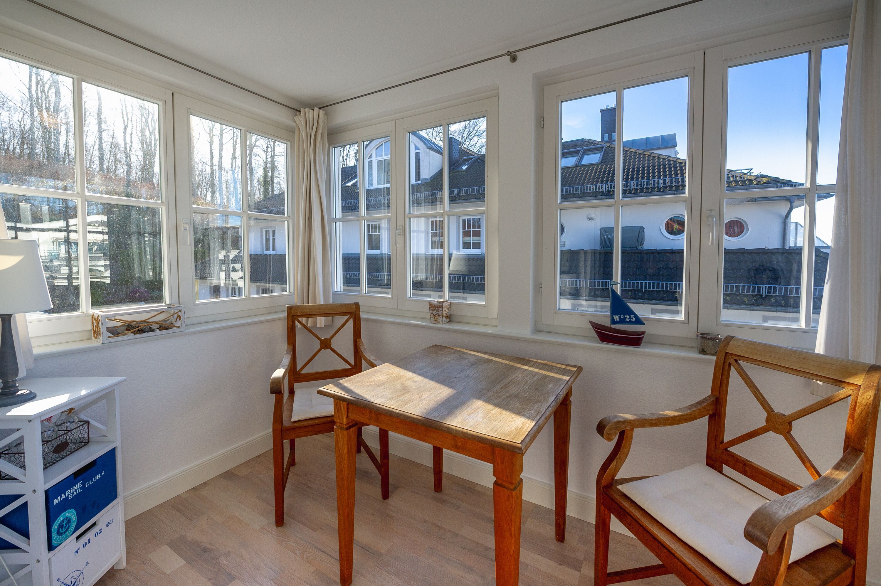 Im hellen Wintergarten, der zur Südseite hin liegt, befindet sich eine kleine Essecke. Kostenfrei stehen eine Auswahl an CDs, eine kleine Buchauswahl, diverse Spiele, Bügelutensilien und ein W-LAN-Internetanschluss zur Verfügung.