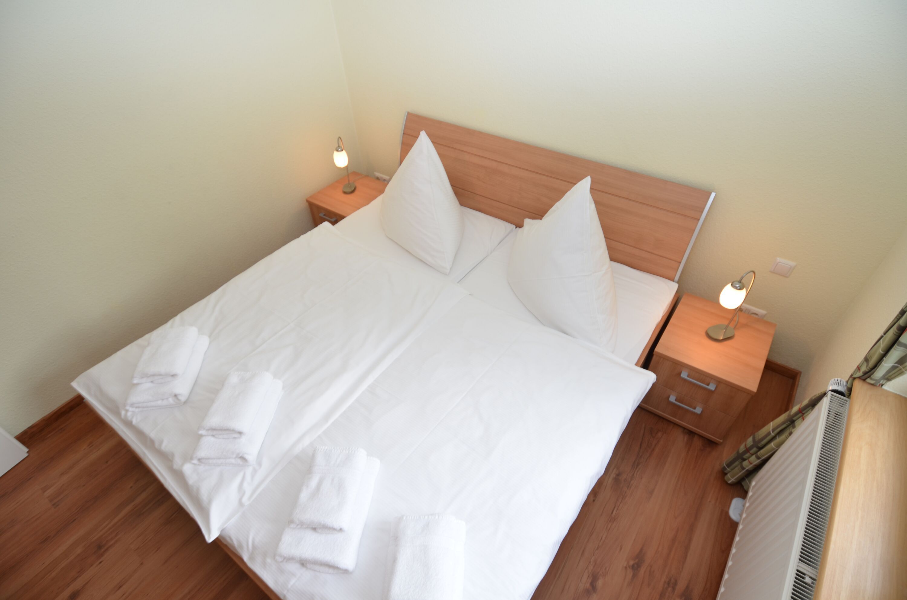 Appartement 15: Dieses schöne 3-Raum-Appartement mit einer Wohnfläche von ca. 77 m² begrüßt Sie im Erdgeschoss des hinteren Hauses mit einer möblierten Terrasse zur Westseite. Als besonderes Highlight hat die Fewo eine eigene Sauna, die Sie jederzeit kostenfrei nutzen können!