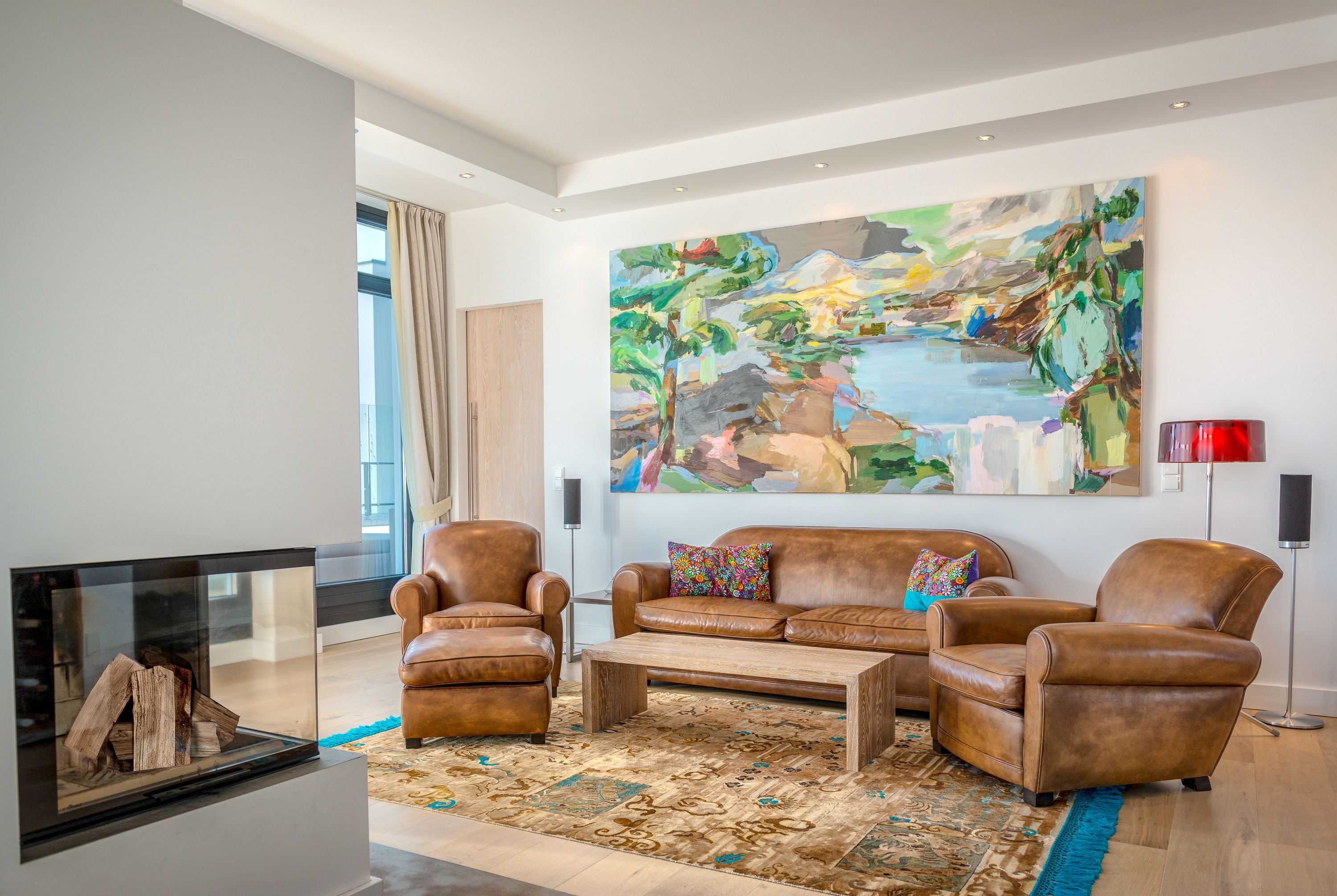 Das gesamte Nichtraucher-Penthouse verfügt über Böden aus gekälkten Eichendielen und ist komplett mit einer Fußbodenheizung versehen.