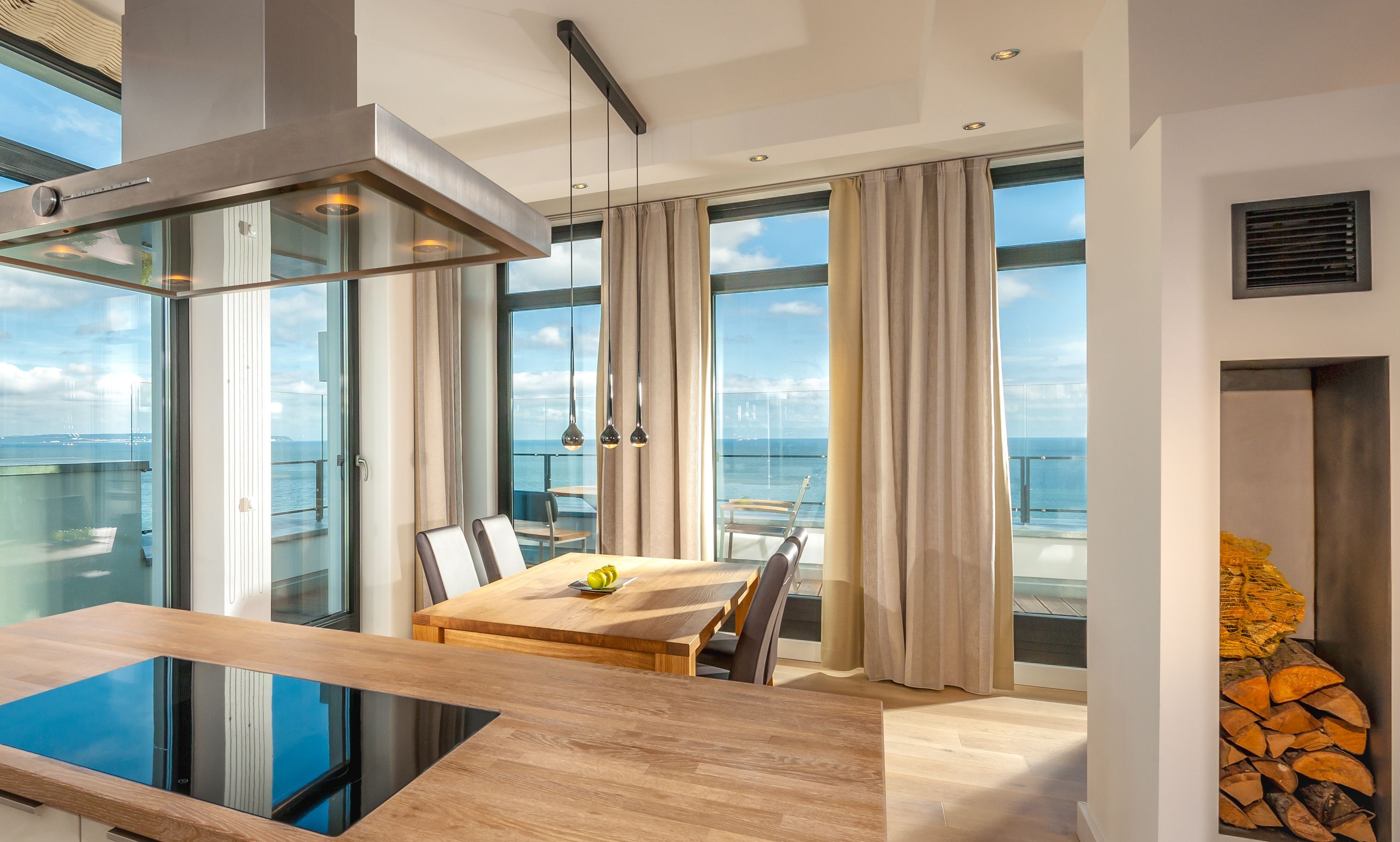 Die umlaufende Dachterrasse ist von jedem Raum aus zu betreten und bietet zu jeder Tageszeit reichlich Platz zum ausgiebigen Relaxen. Bei einem Glas Wein, beim Blick über die Ostsee oder einfach nur beim Zuhören des Meeresrauschens findet hier ein einzigartiger Urlaubstag seinen Ausklang.