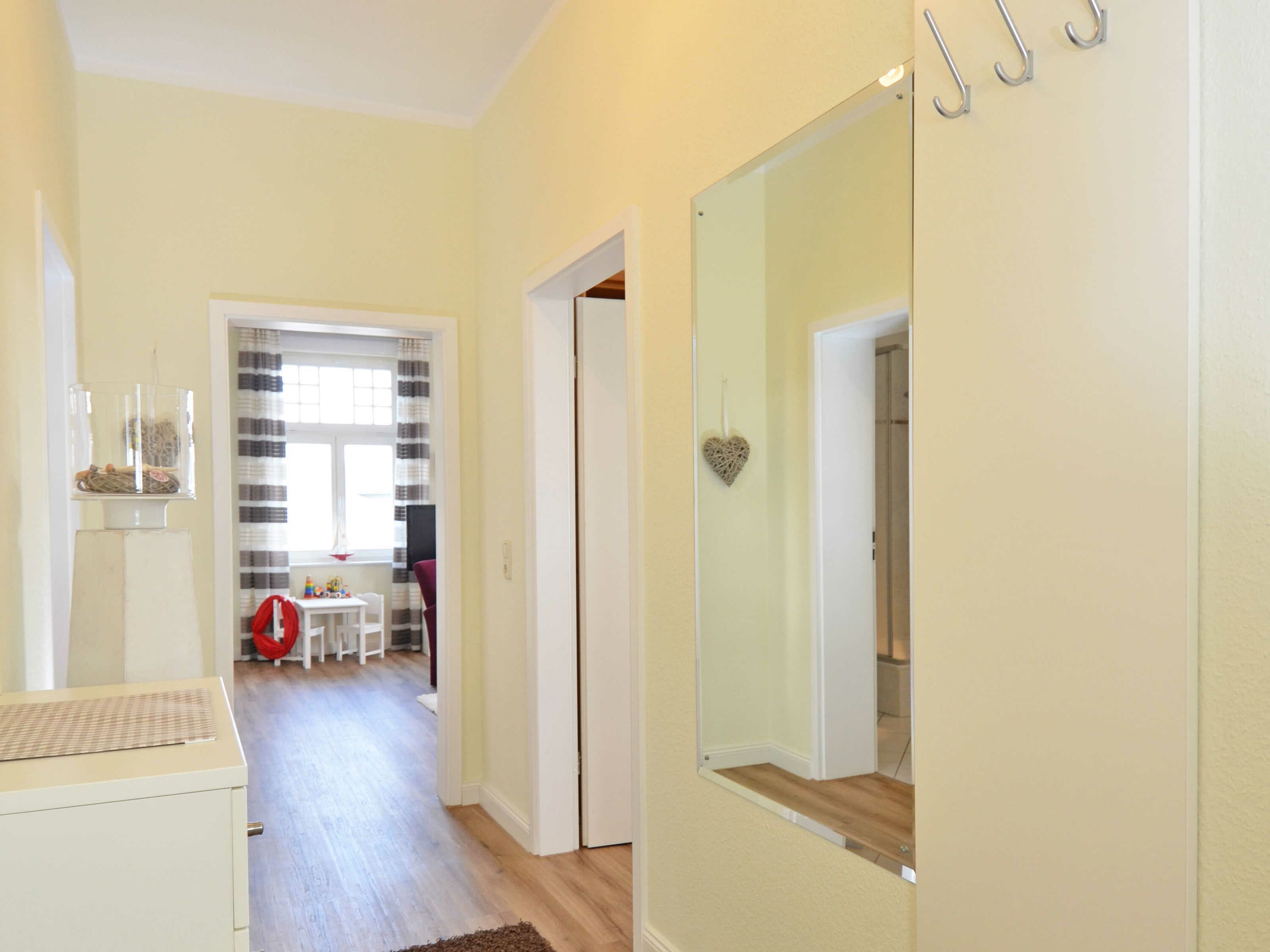Gut zu wissen: Die Wohnung liegt sehr zentral und strandnah im Ortskern von Binz. Bis zum Strand mit Strandkorbverleih sind es nur ca. 100 m und bis zum Kurplatz und in die Fußgängerzone nur wenige Gehminuten. Im Haus befindet sich ein Fahrstuhl, der Sie mühelos in die 2. Etage bringt. Ein PKW-Stellplatz steht auf dem Grundstück kostenfrei zur Verfügung.
