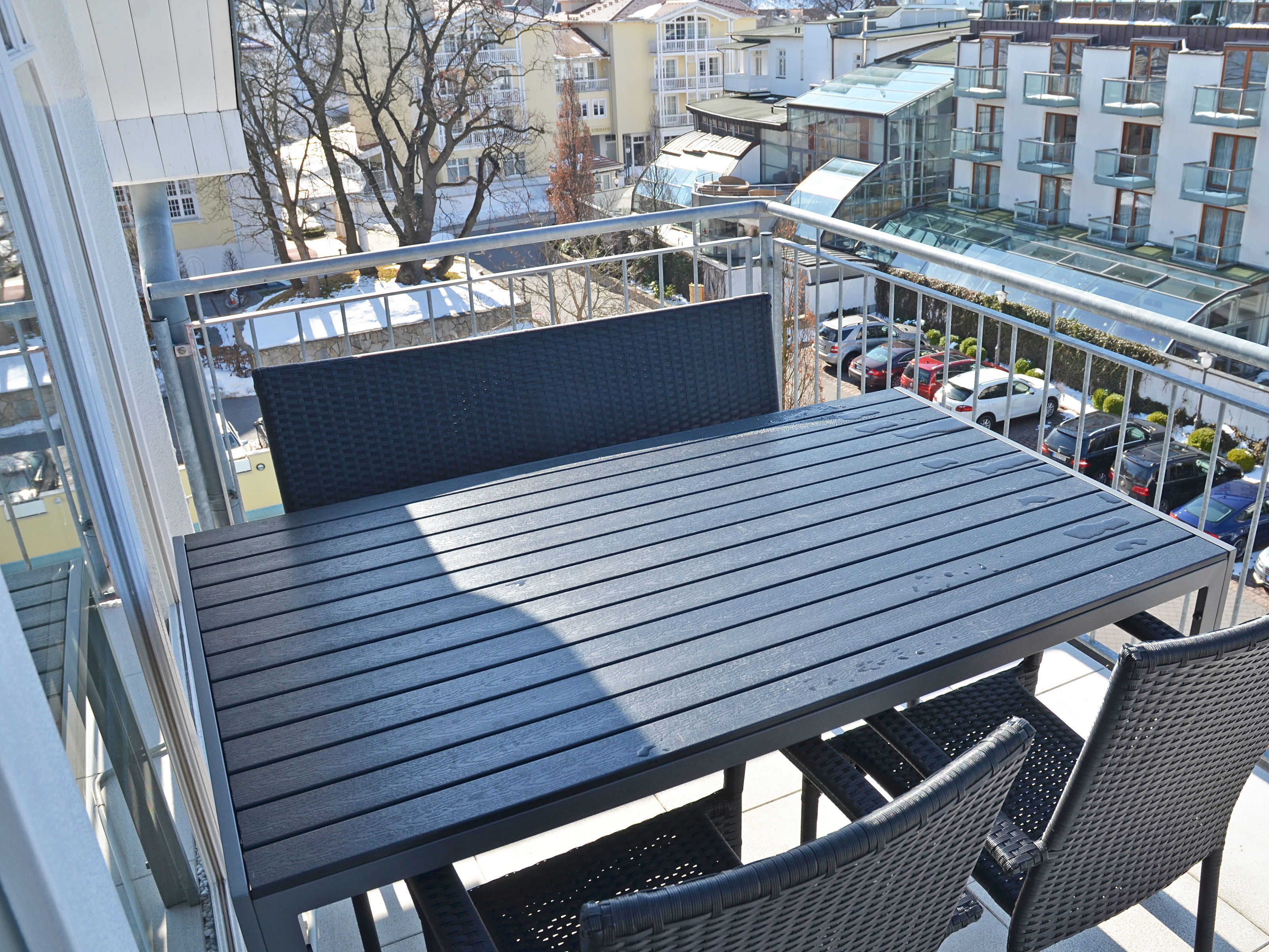 Auch dieser Raum verfügt über einen schönen Balkon zur Südseite - hier können Sie fast den ganzen Tag die wohligen Sonnenstrahlen genießen. Die Balkonmöbel stehen saisonal - in der Regel von Mai bis Ende September - zur Verfügung.