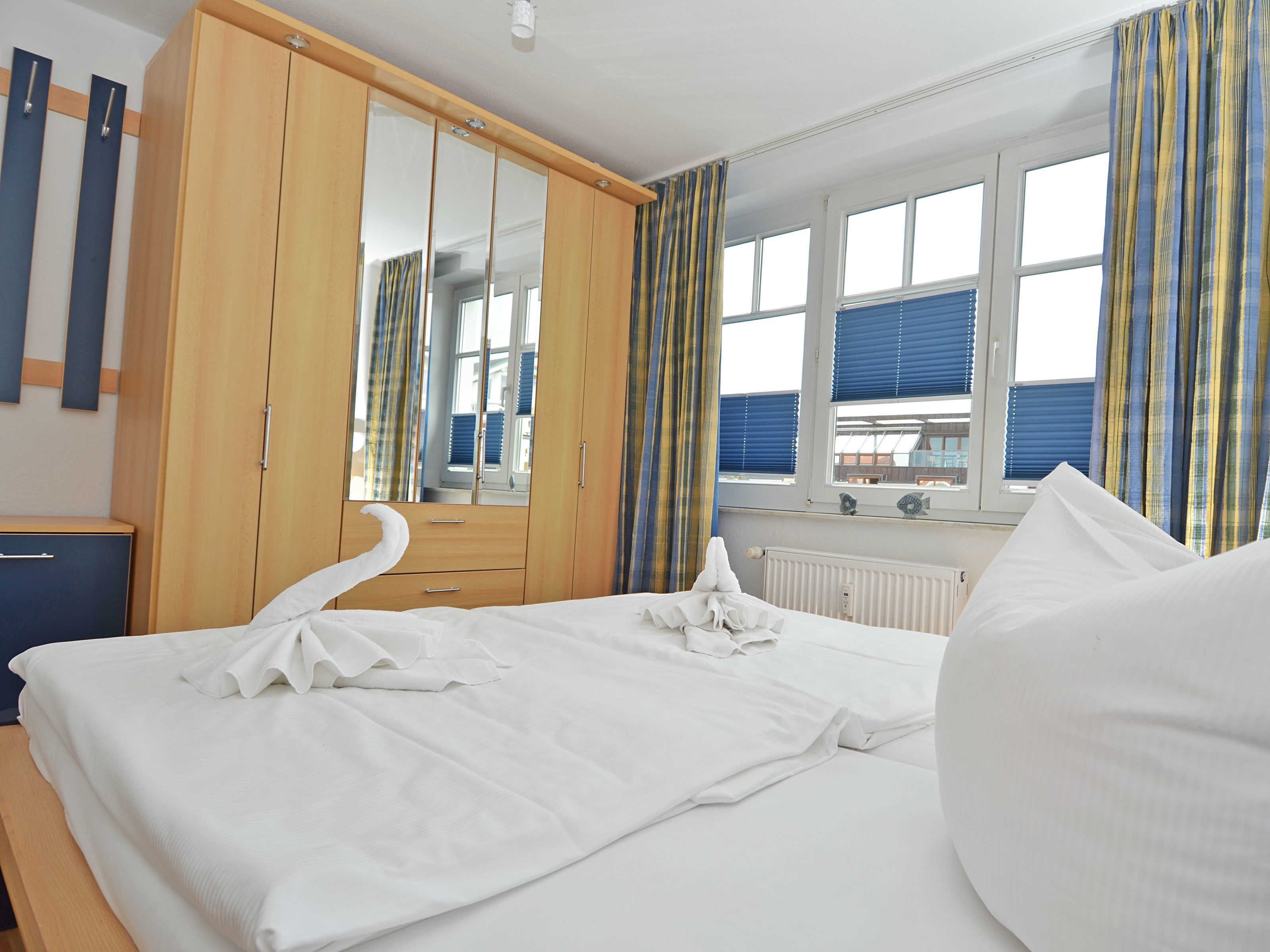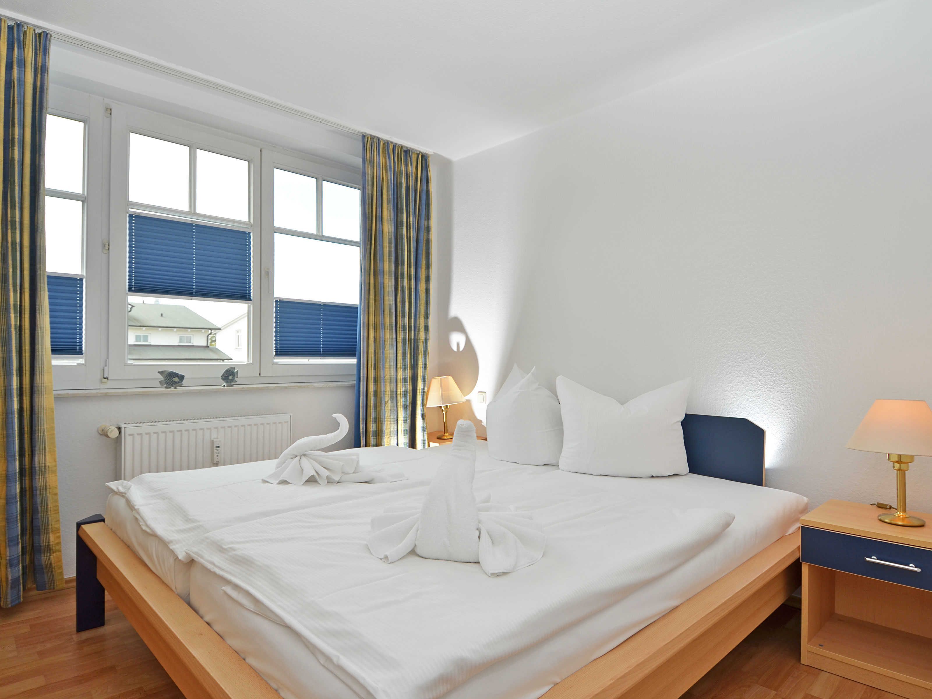 Ebenfalls auf dieser Etage befindet sich das Schlafzimmer mit einem Doppelbett und ausreichend Stauraum für Ihre Urlaubsgarderobe. Hochwertige Matratzen sorgen für einen erholsamen Schlaf. Das moderne Bad mit Dusche/WC besticht durch den geschmackvollen Granitwaschtisch.