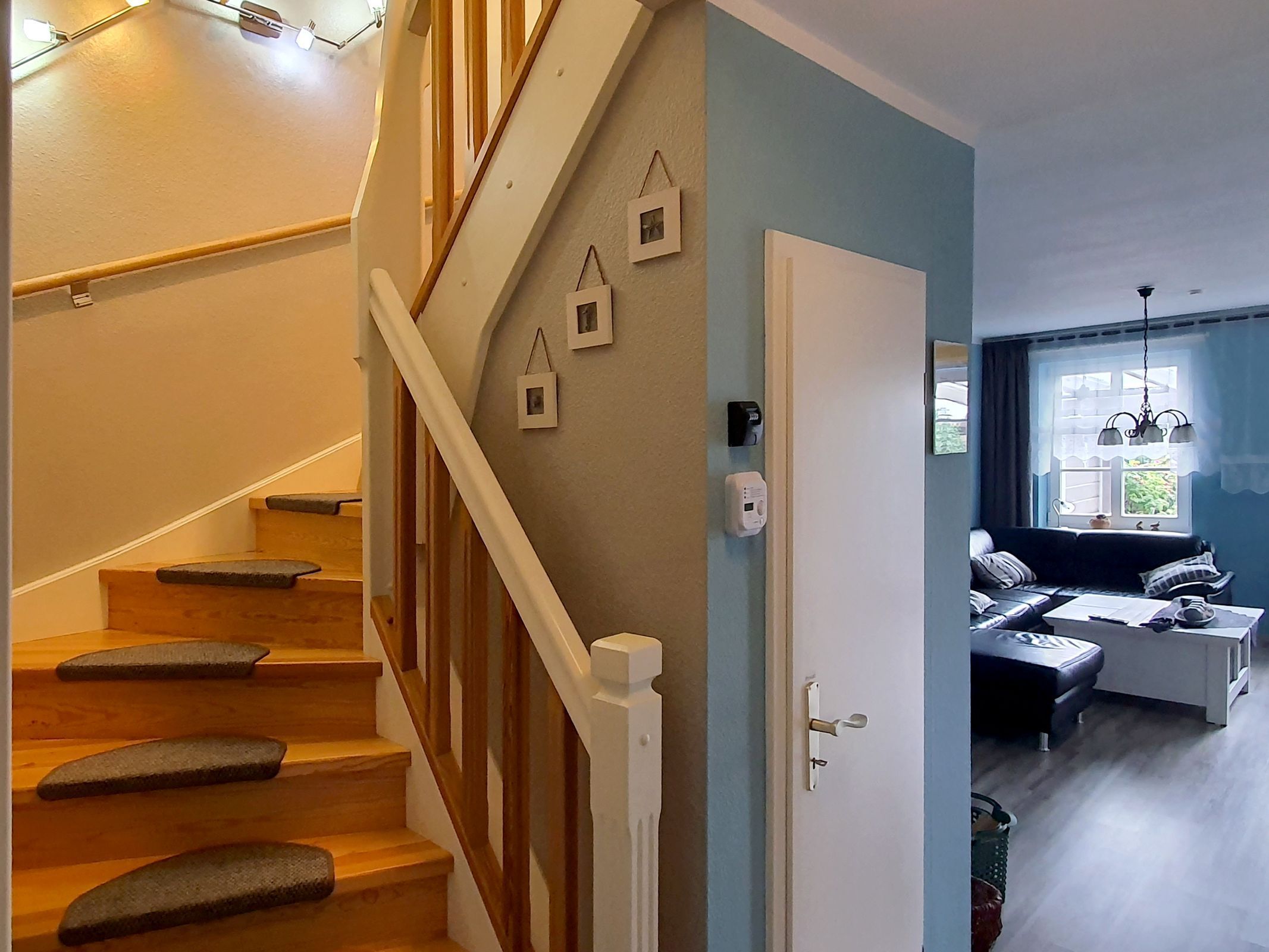 Ein direkt über den Flur zugängliches Bad mit Dusche/WC sowie Fön befindet sich ebenfalls im EG.