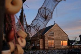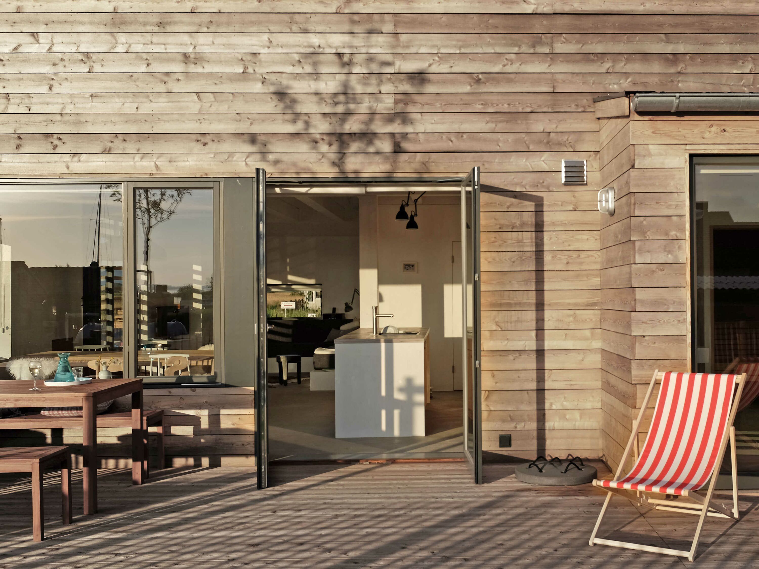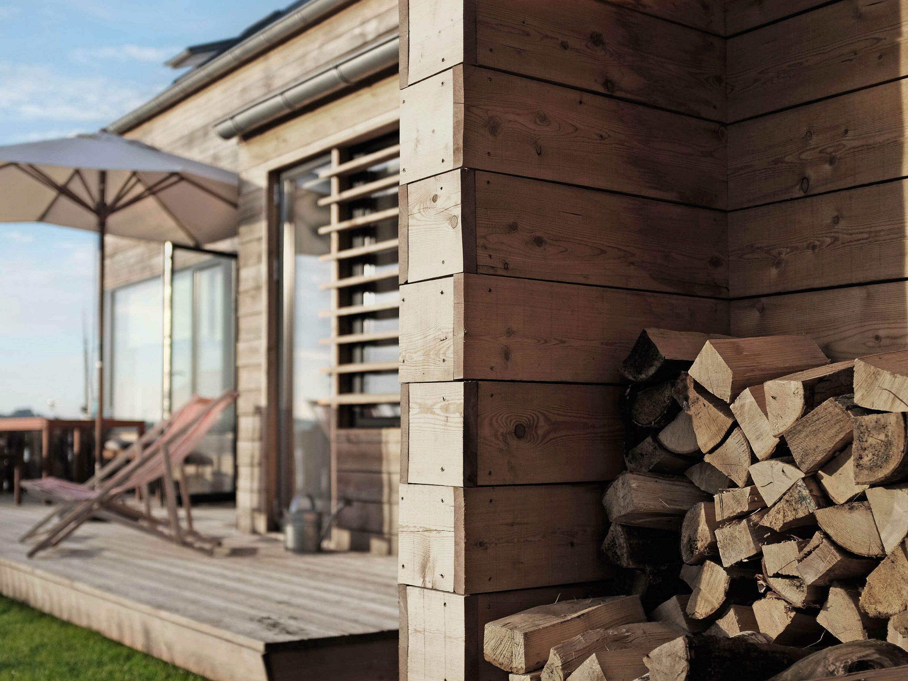 Die Bootshäuser an den Küsten des Baltikums dienten früher hauptsächlich der Lagerung und Wartung von Schiffen und Fanggeräten. Der traditionelle, einfache Baukörper, die Einbettung in die Landschaft und der ehrliche Einsatz von Materialien dienten auch für das „Strandwood House“ als Inspirationsquelle.
