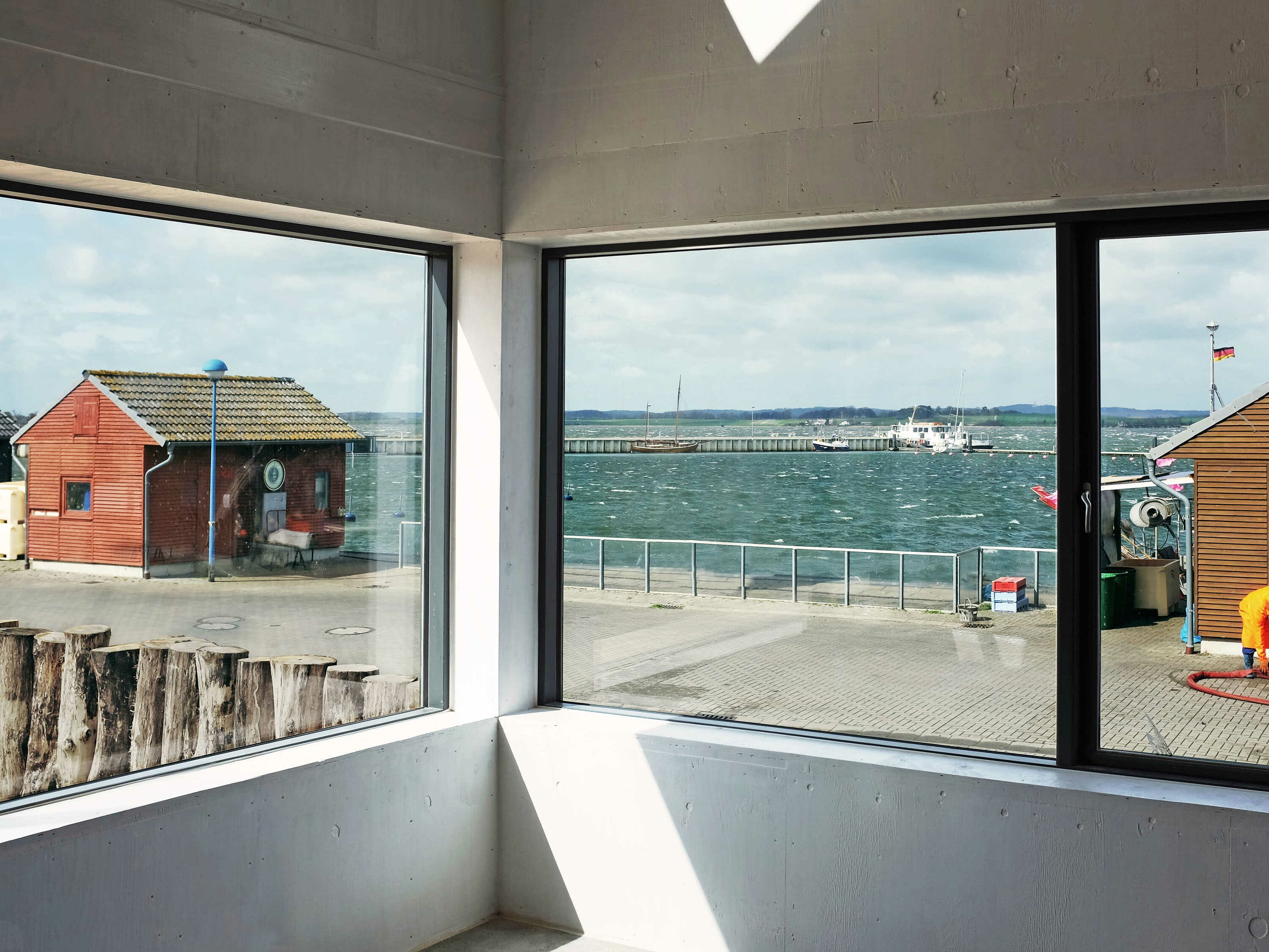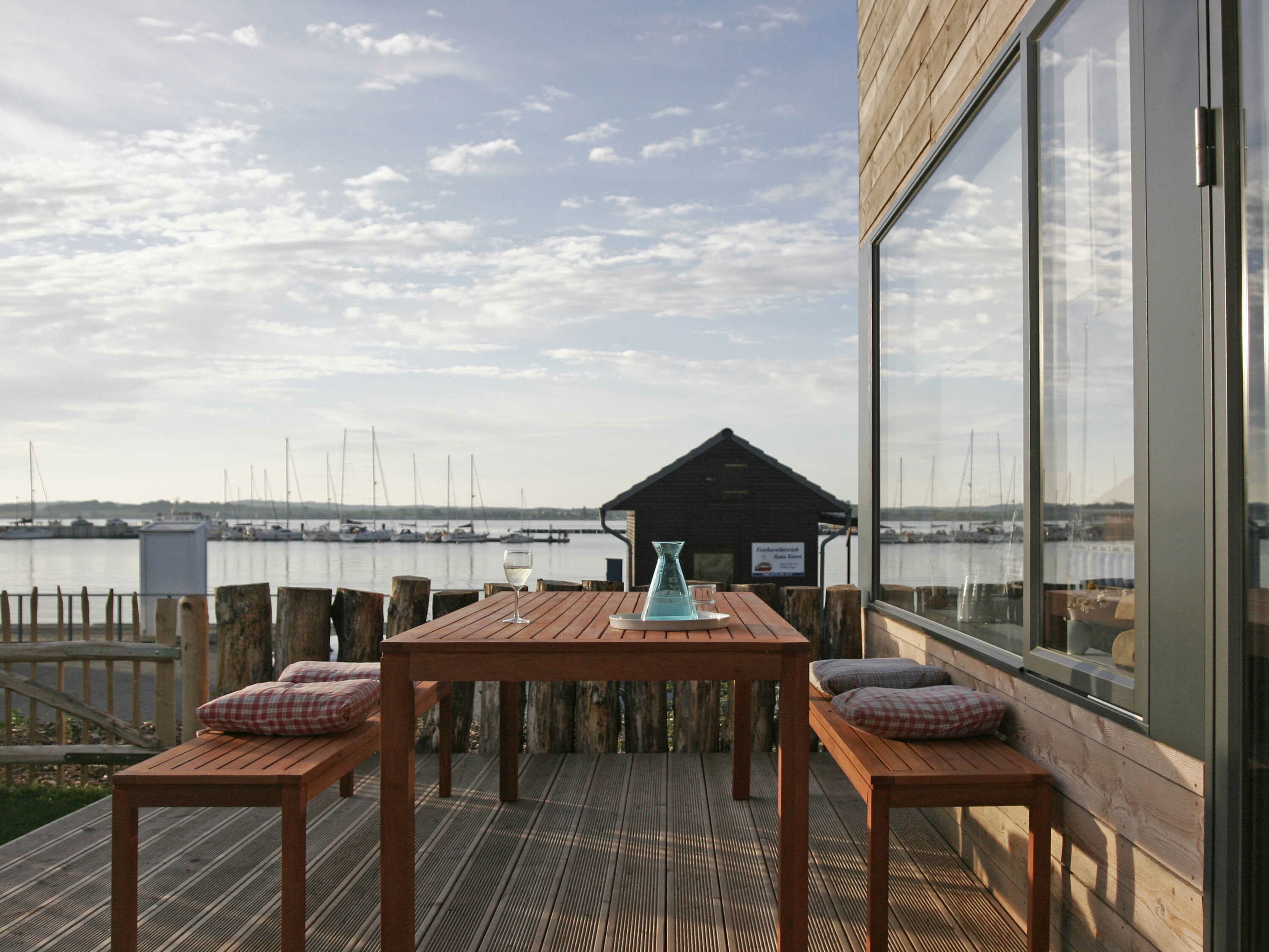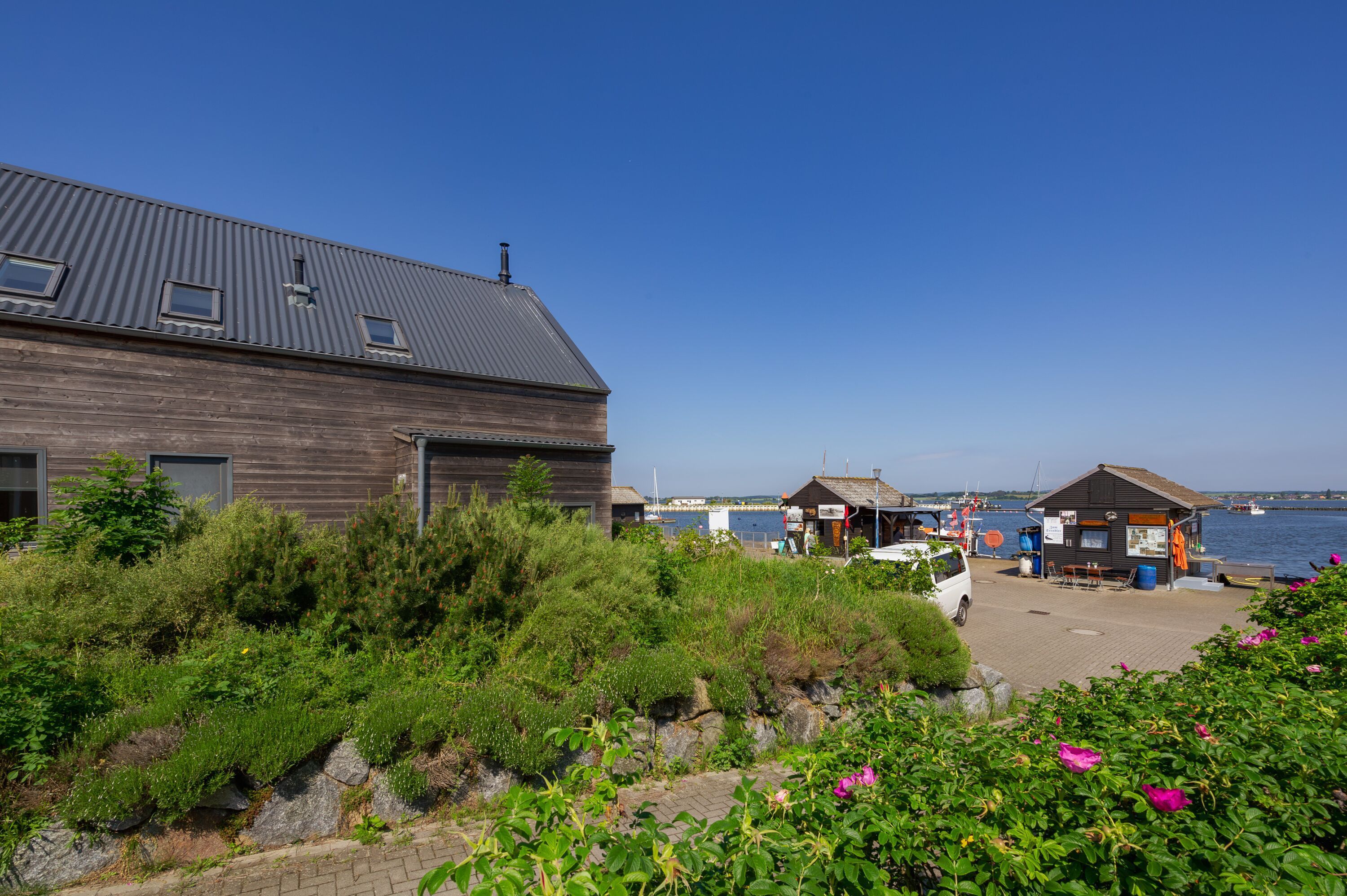 Mit Wasser direkt vor dem Bug, könnte das Haus auf der Halbinsel Mönchgut am Südostzipfel von Rügen nicht besser gelegen sein. Der freie Blick öffnet sich Richtung Südwesten auf die Hagensche Wiek bis zum Jagdschloss Granitz auf dem Tempelberg. Nach Achtern wird das Ferienhaus von den Zickerschen Alpen eingerahmt. Diese mehr als 60 Meter hohe, sanft geschwungene Hügellandschaft gehört zum Biosphärenreservat Südost-Rügen, wird ökologisch korrekt von Schafen beweidet und ist ein Paradies für Wanderer und Spaziergänger. Nur hundert Meter vom Haus entfernt findet sich der Boddenstrand, ein beliebtes Revier für Kite-Surfer. Bis zum feinsandigen Strand, der zwischen Lobbe und dem Seebad Thiessow auf einer Länge von fünf Kilometern sanft in die glasklare Ostsee abfällt, sind es nur 1 800 Meter, zu Fuß oder mit dem Rad nur wenige Minuten. Auch das beliebte Seebad Sellin, mit zahlreichen Restaurants und traditionsreicher Bäderarchitektur liegt ganz in der Nähe.