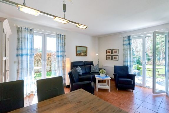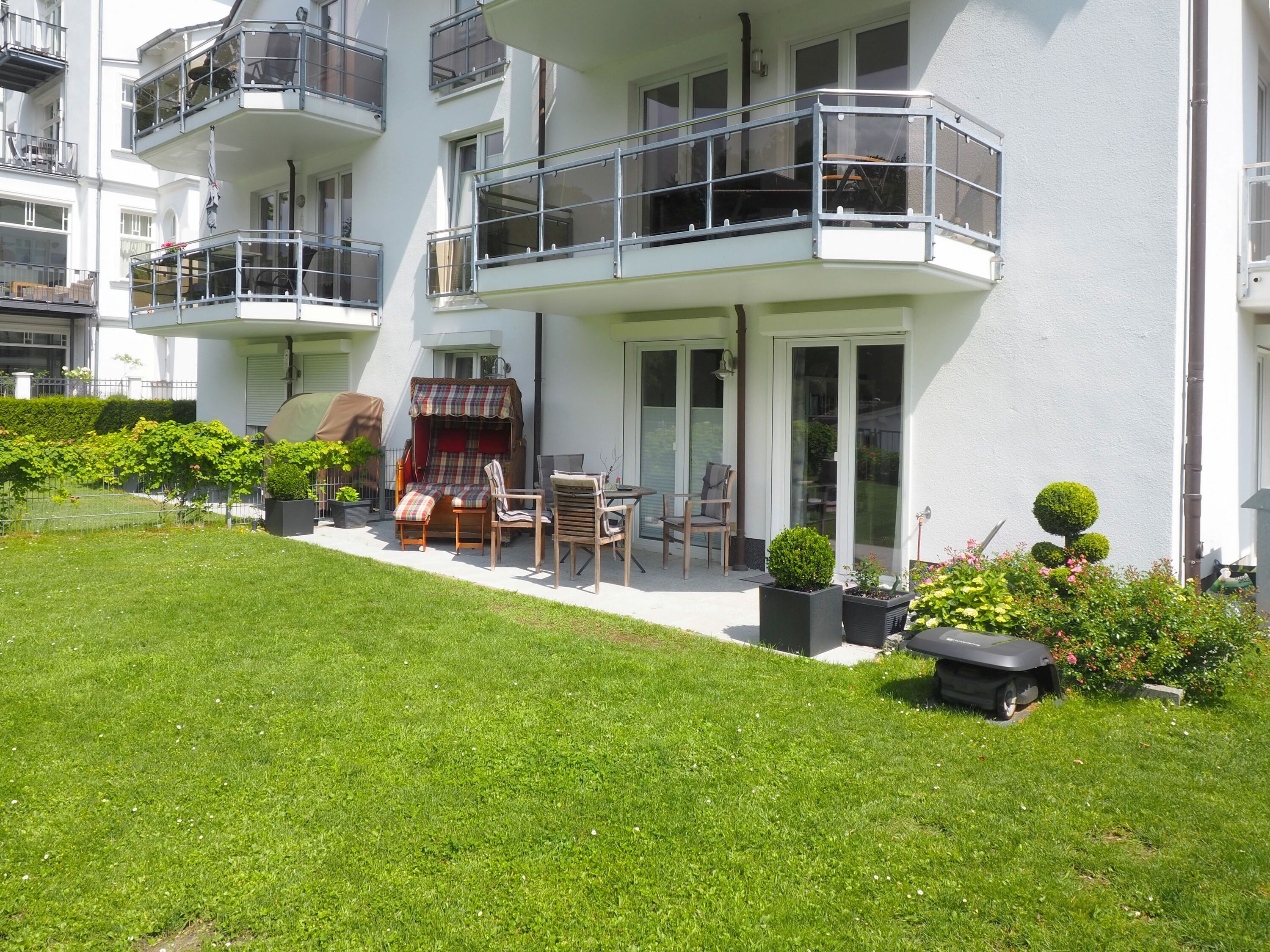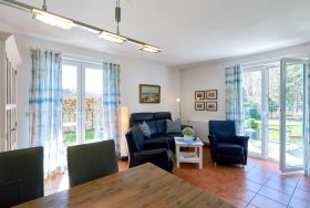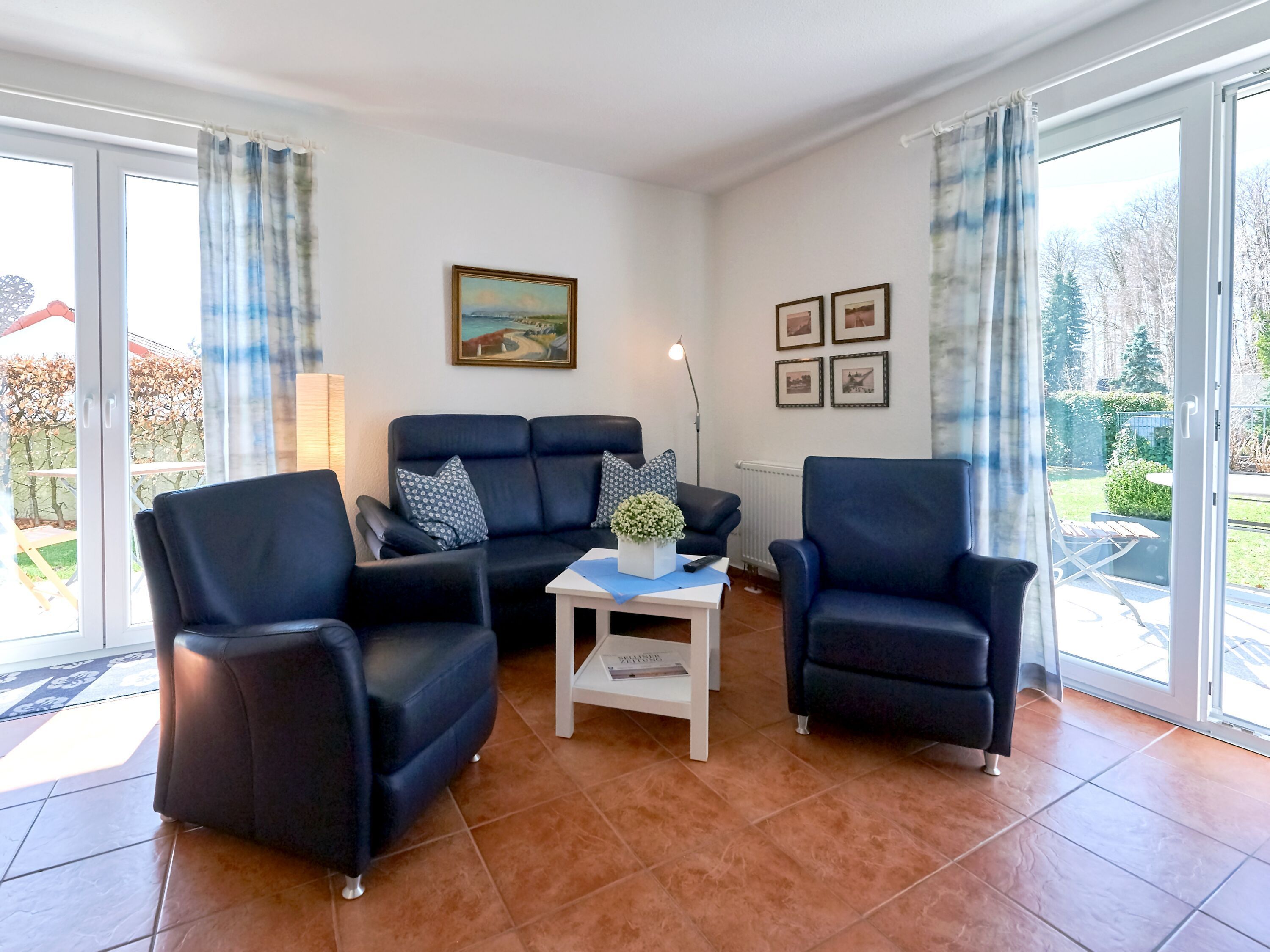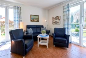 Die Nichtraucherwohnung im Erdgeschoss des Hauses hat eine Wohnfläche von ca. 70 m², ist sehr geschmackvoll eingerichtet und verfügt über zwei Terrassen. Von der möblierten Süd-West-Terrasse mit Garten und Strandkorb können Sie ganztägig die Sonne genießen. Die ebenfalls möblierte Süd-Ost-Terrasse lädt mit Blick auf die Ostsee zu einem sonnigen Frühstück ein.
