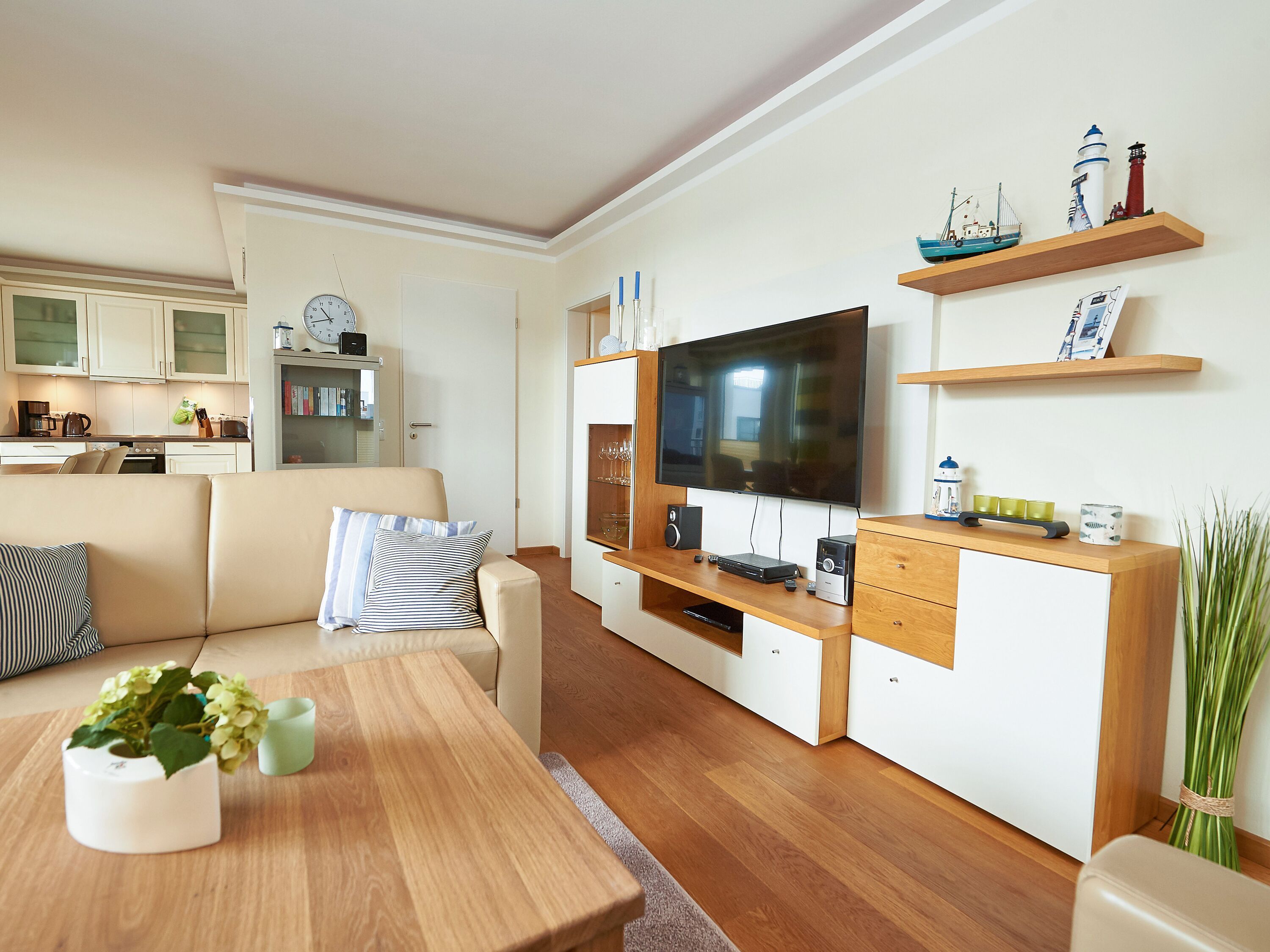 Im Wohnbereich stehen Ihnen neben kostenfreiem W-LAN ein LED-Flachbildfernseher (130 cm) mit SKY inkl. Sport und Bundesliga sowie ein Blu-Ray/DVD-Player und eine Stereoanlage mit CD-Player zur Verfügung.