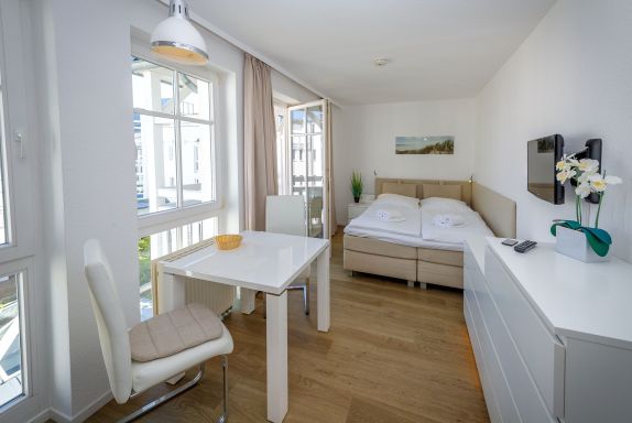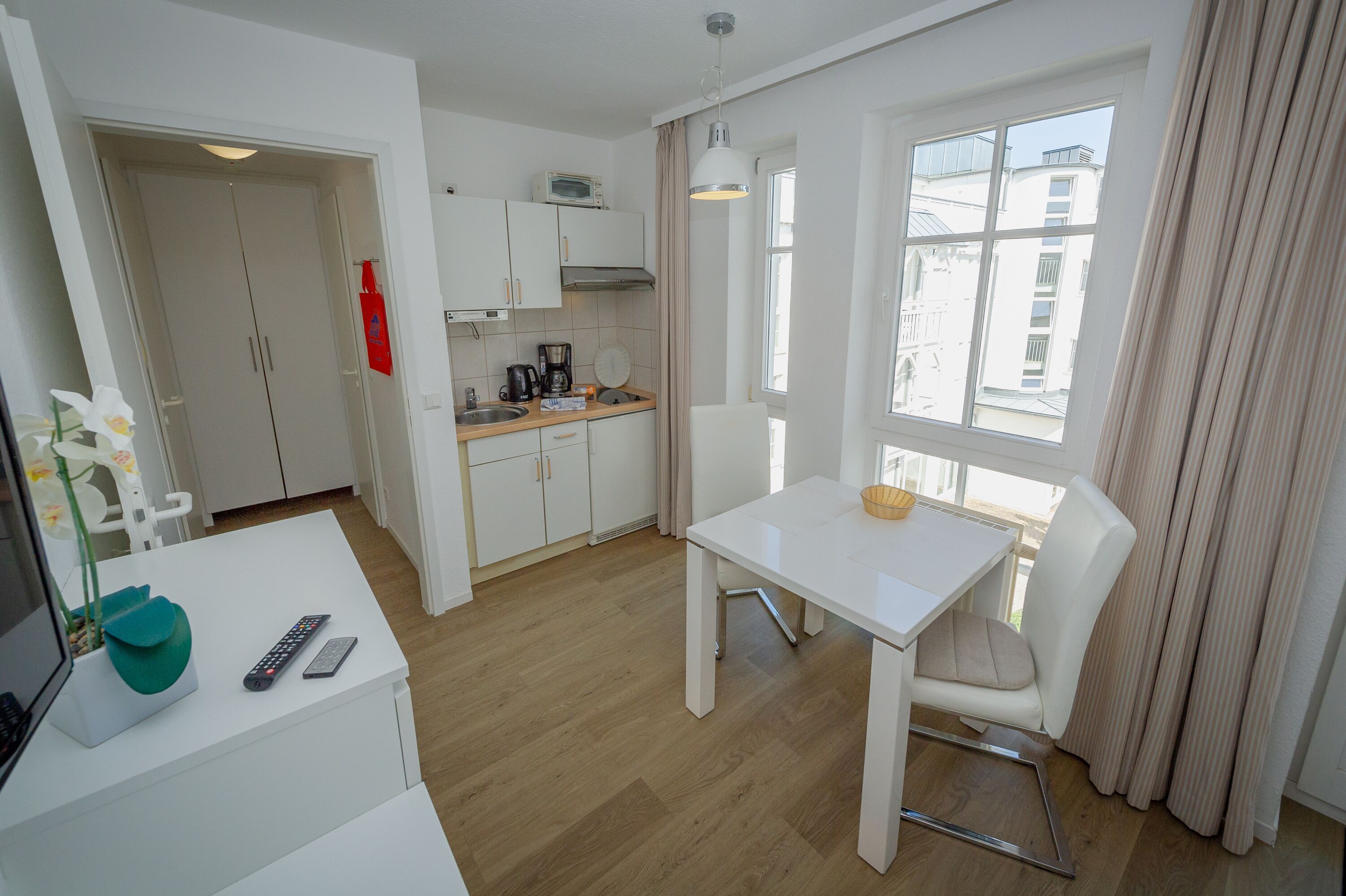 Klein aber fein! Das Appartement 371 im Seepark Sellin ist rund 22 m² groß und erwartet Sie im 2. Obergeschoss von Haus Having, ganz bequem mit dem Fahrstuhl zu erreichen.