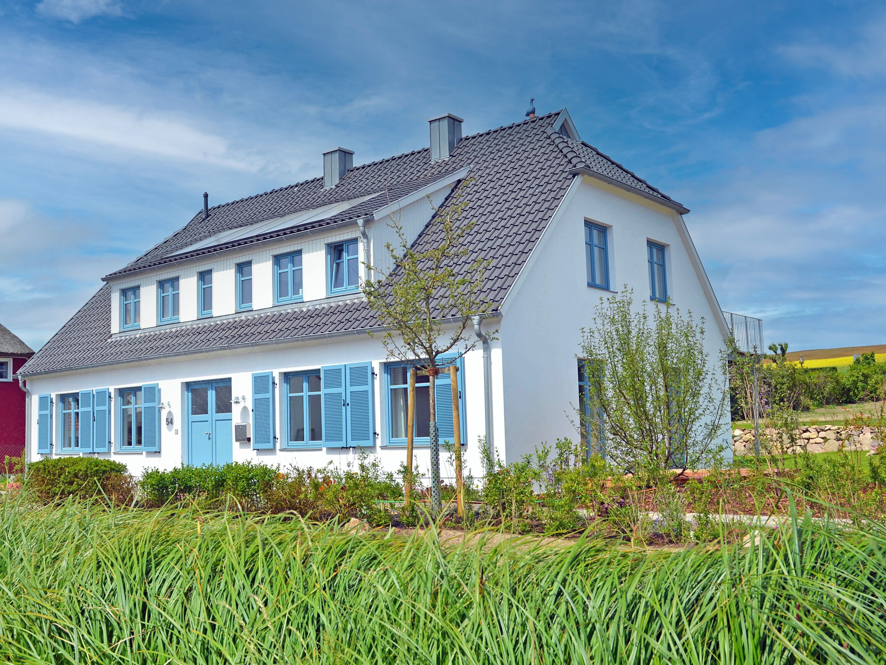 Vom Wohnraum aus betreten Sie die mit modernen Lounge-Möbeln möblierte Holzterrasse. Ein moderner Kugelgrill und eine im Garten angelegte Boulebahn runden die exklusive Ausstattung ab.