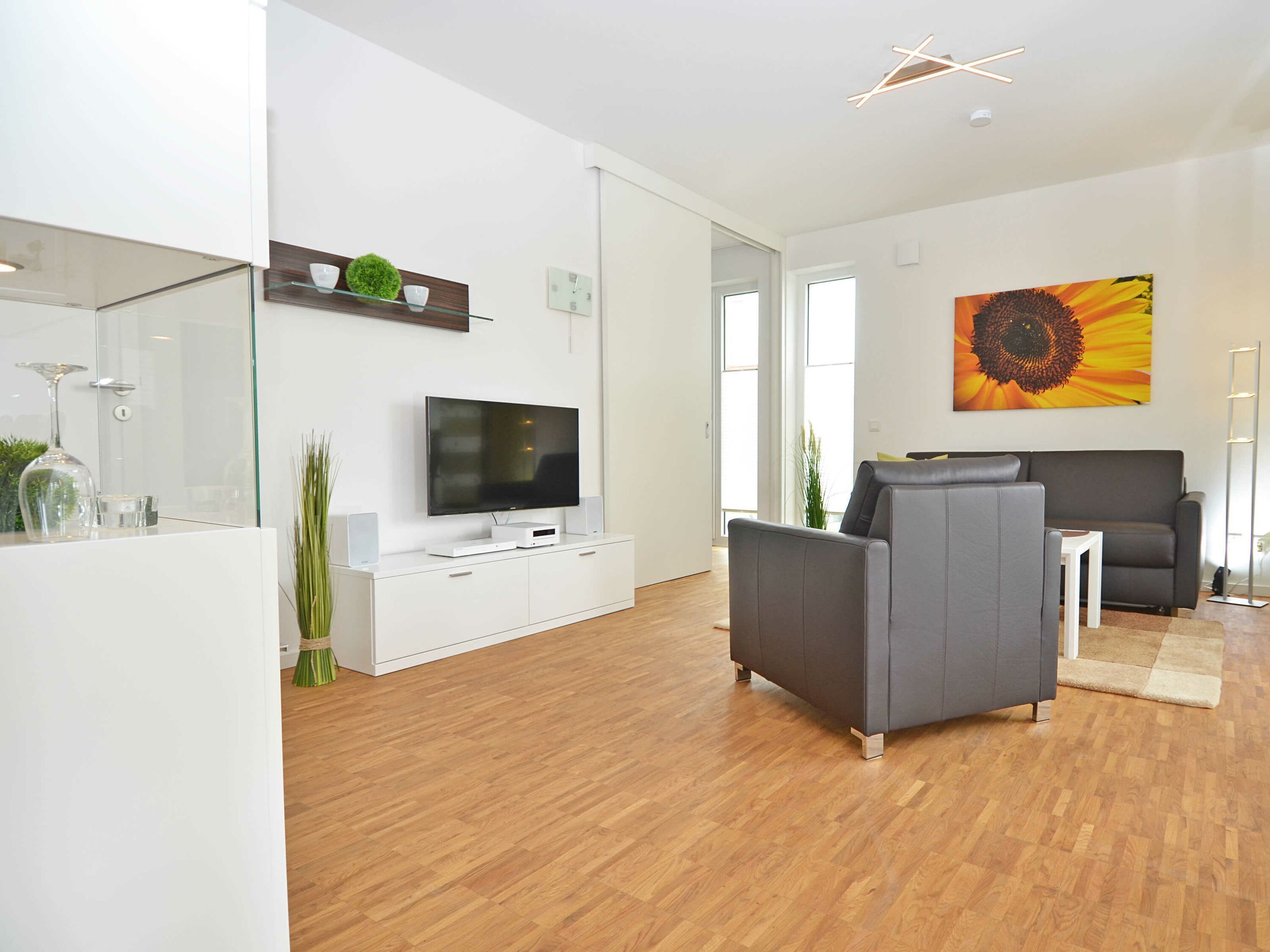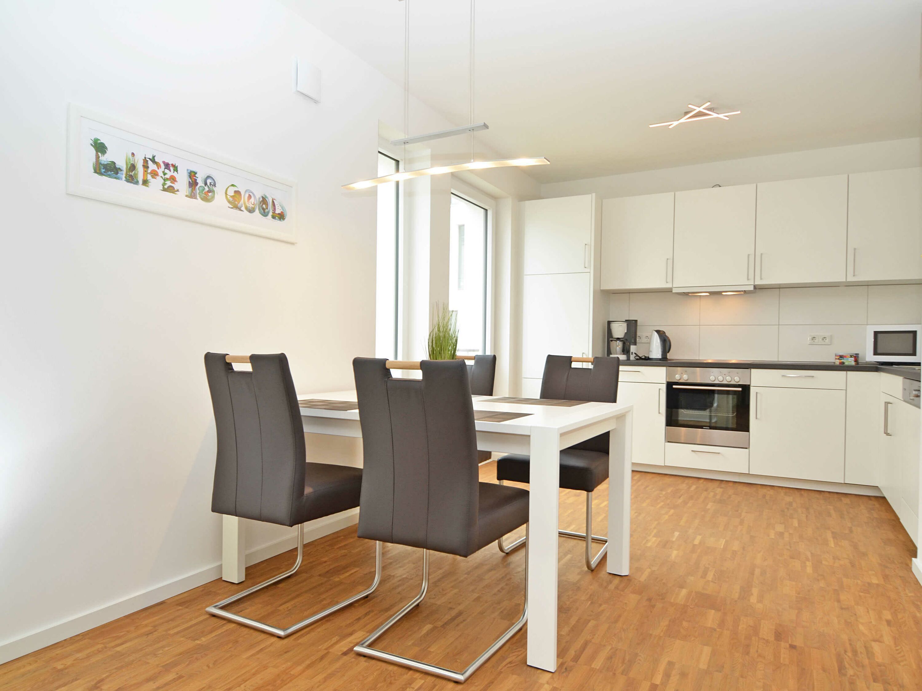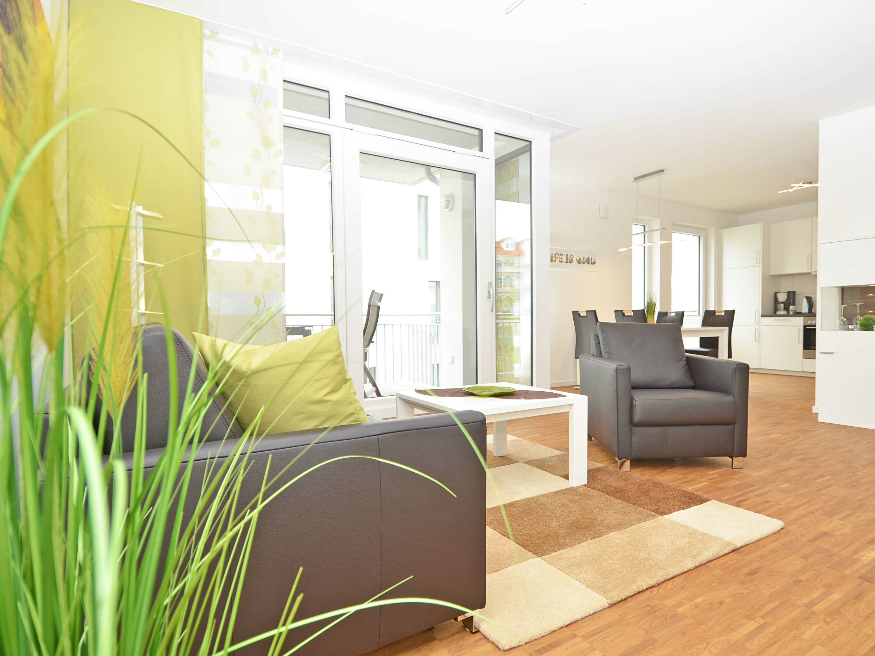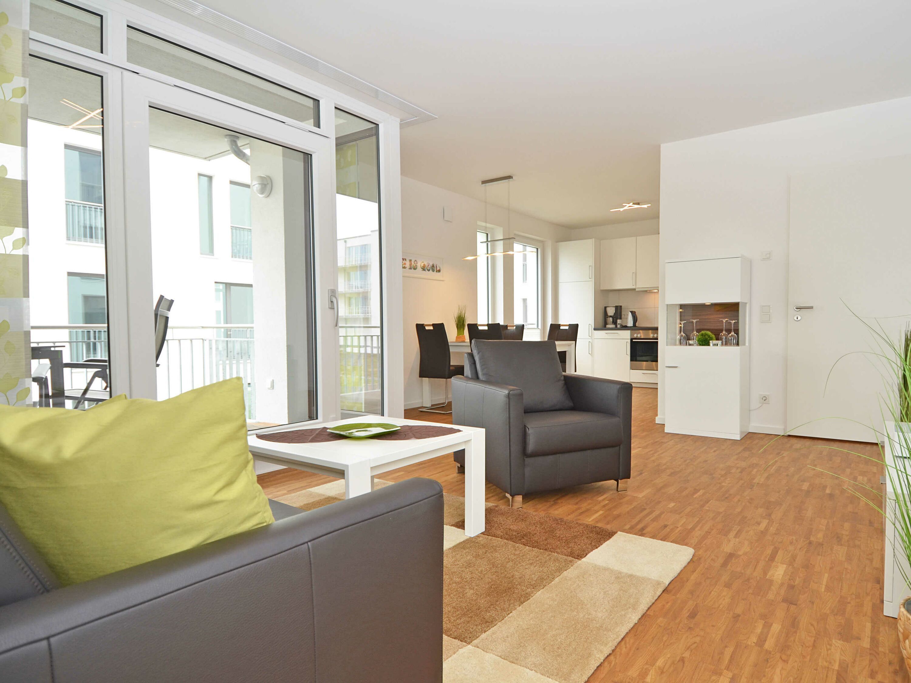 Das rund 68 m² große, hochwertig und geschmackvoll eingerichtete 2-Raum-Appartement erwartet Sie im 1. Obergeschoss und ist bequem mit dem Fahrstuhl zu erreichen. Die Nichtraucher-Wohnung ist ideal für 2 Personen, kann jedoch auch von 3 Personen genutzt werden und ist dafür großzügig eingerichtet und komplett ausgestattet. Echtholzparkett in den Wohnräumen und Fußbodenheizung im gesamten Appartement unterstreichen das moderne und angenehme Ambiente.