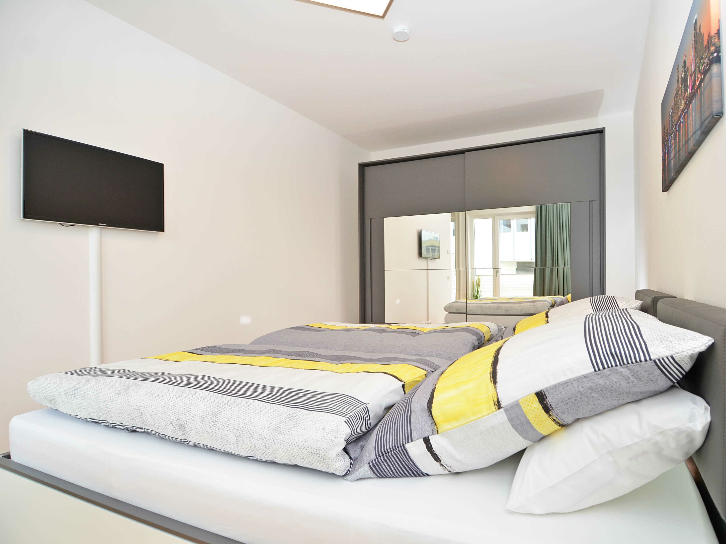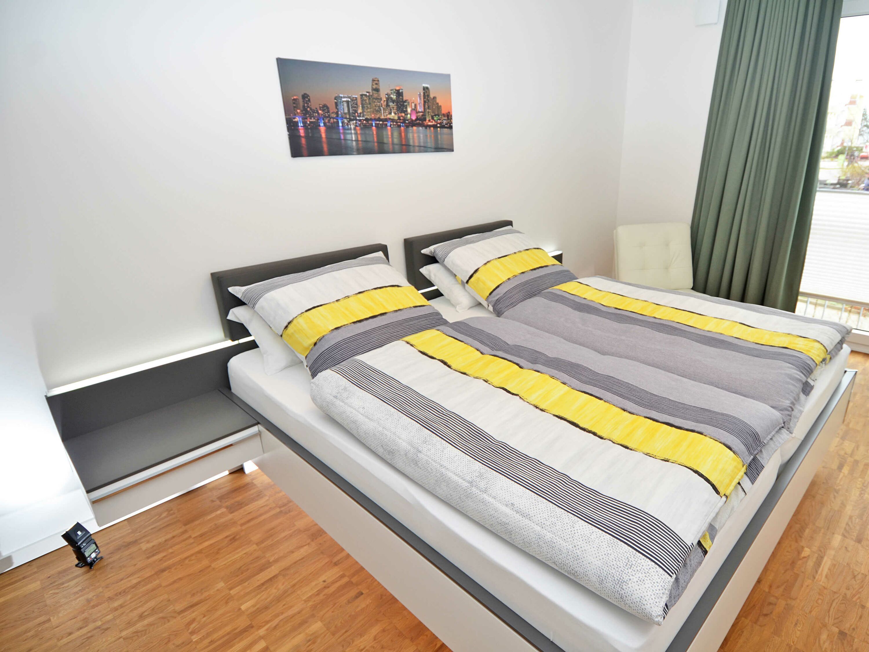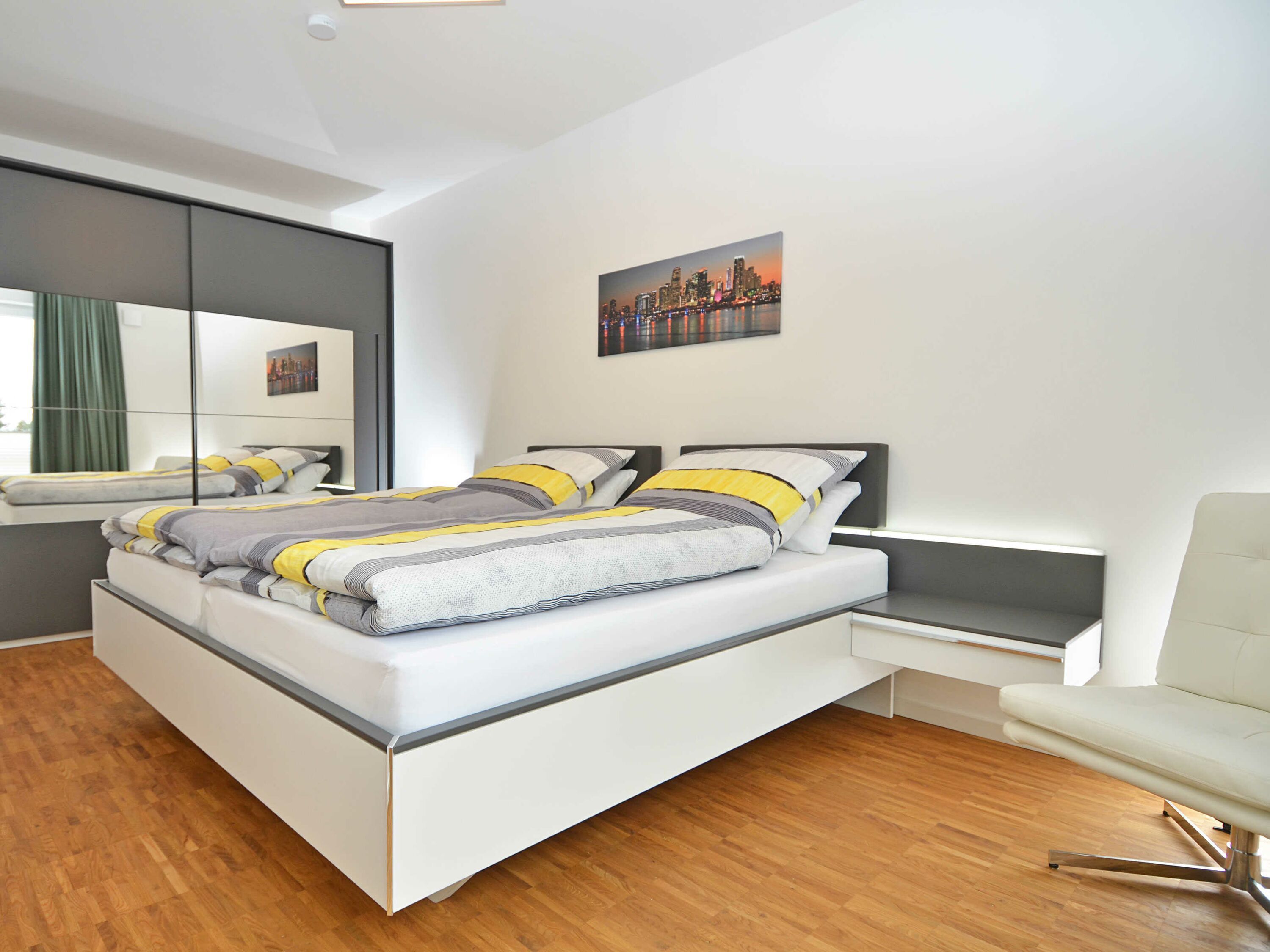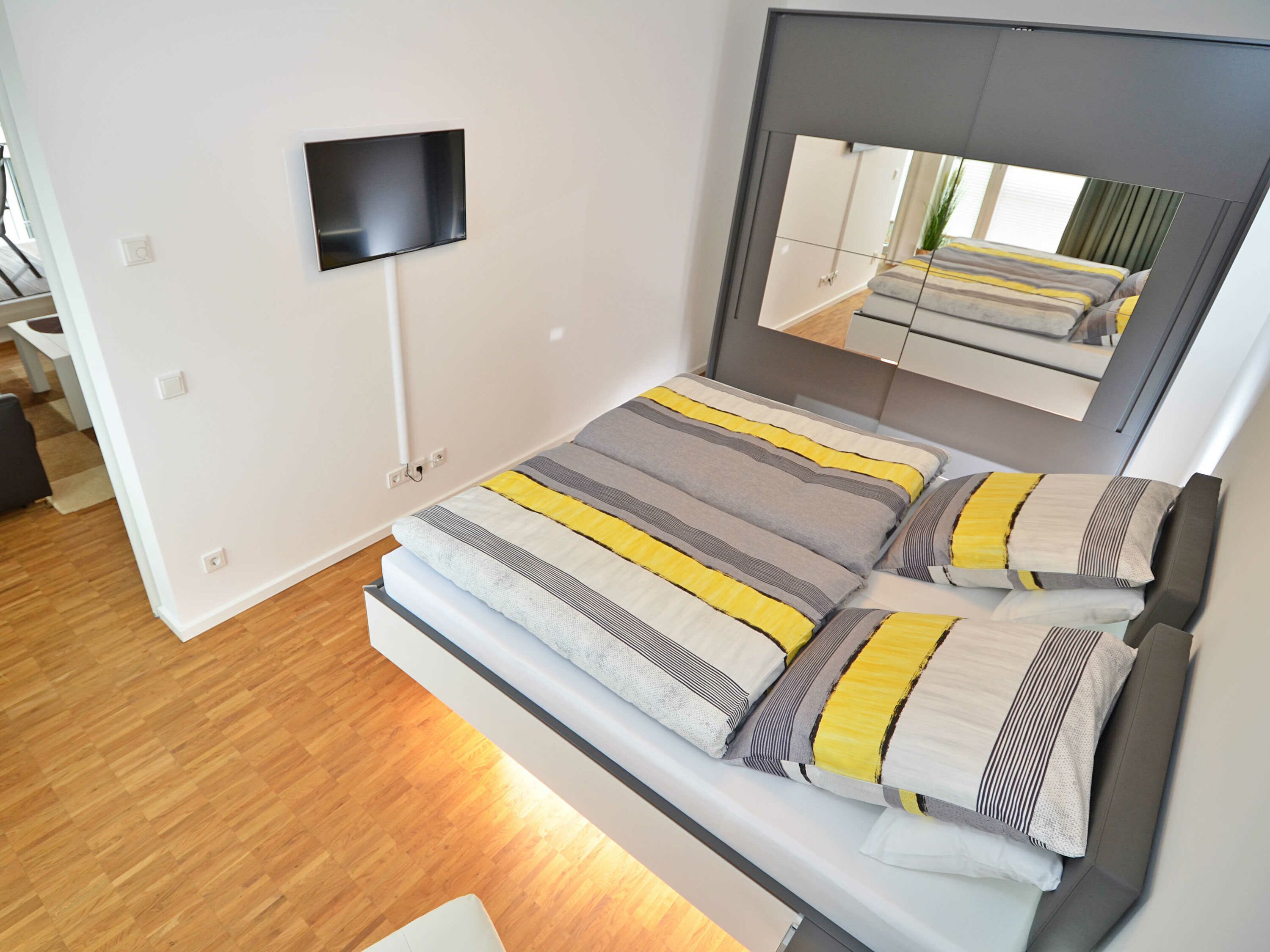 Das rund 68 m² große, hochwertig und geschmackvoll eingerichtete 2-Raum-Appartement erwartet Sie im 1. Obergeschoss und ist bequem mit dem Fahrstuhl zu erreichen. Die Nichtraucher-Wohnung ist ideal für 2 Personen, kann jedoch auch von 3 Personen genutzt werden und ist dafür großzügig eingerichtet und komplett ausgestattet. Echtholzparkett in den Wohnräumen und Fußbodenheizung im gesamten Appartement unterstreichen das moderne und angenehme Ambiente.