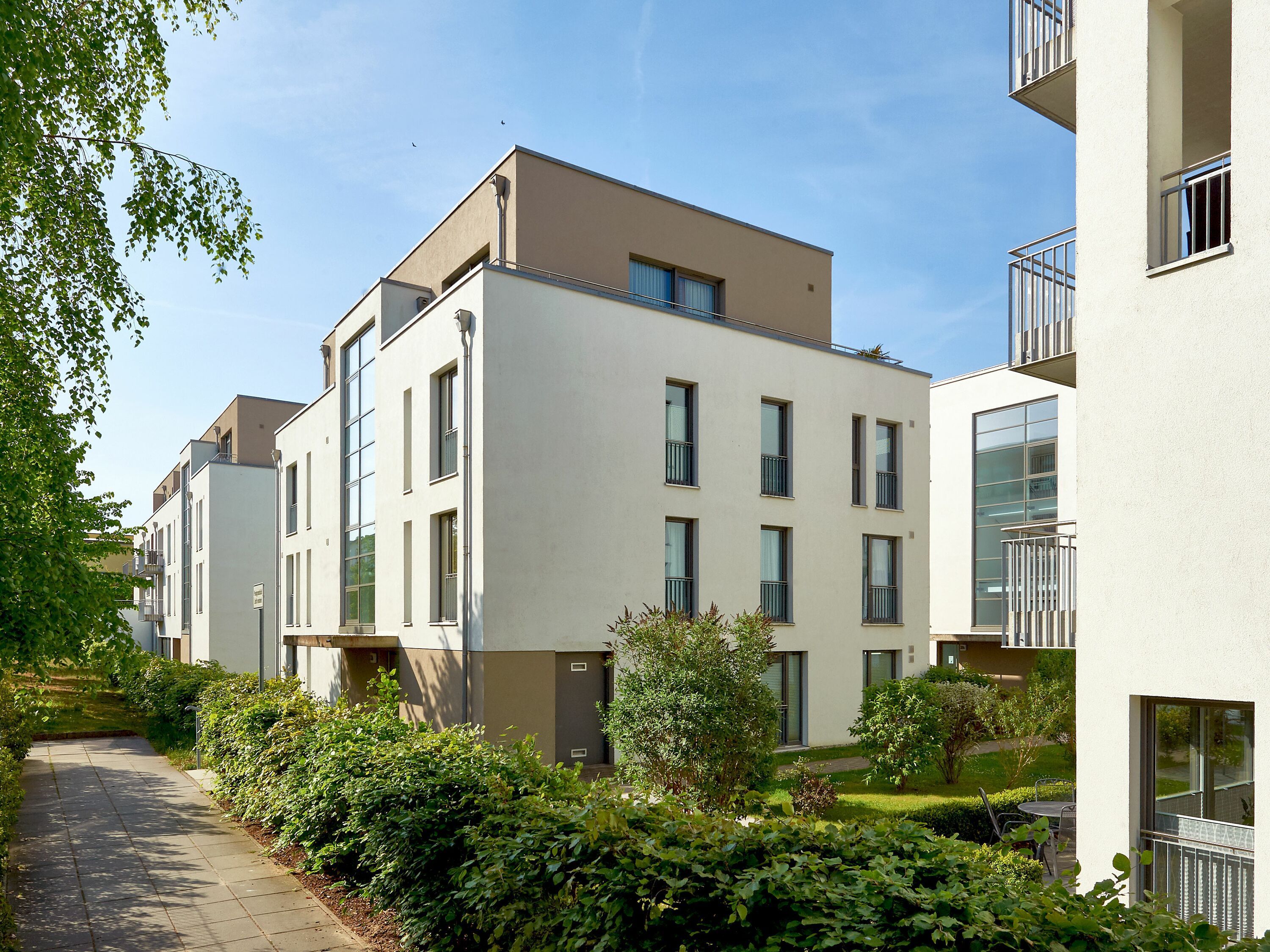 Der begrünte Innenhof lädt die Gäste des „Dünenresort Binz“ zum Verweilen und Entspannen ein. Für Ihren Strandbesuch stehen Ihnen Strandstühle zur Verfügung, die Sie im zur Wohnung gehörenden Kellerraum finden.