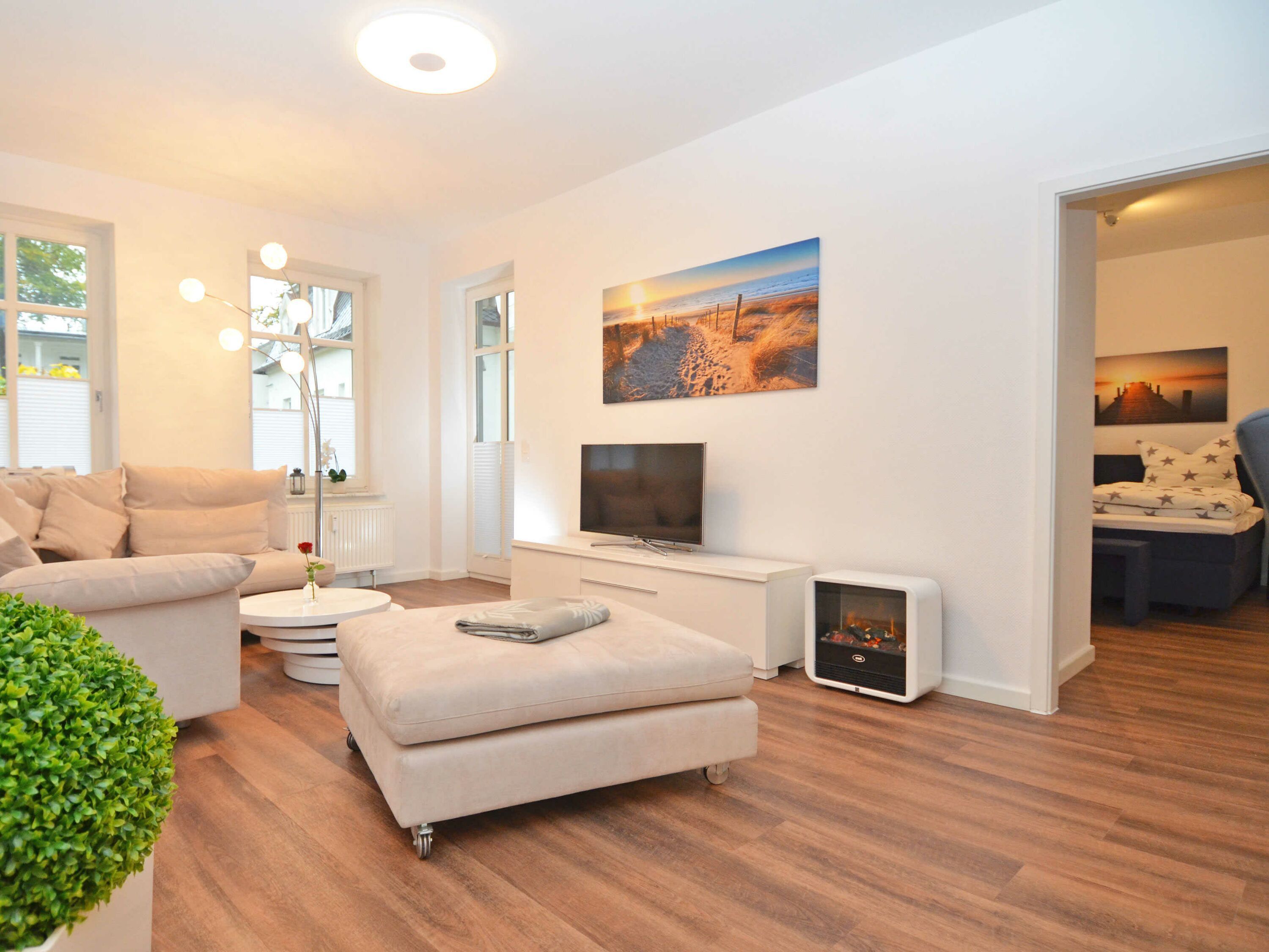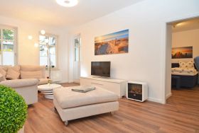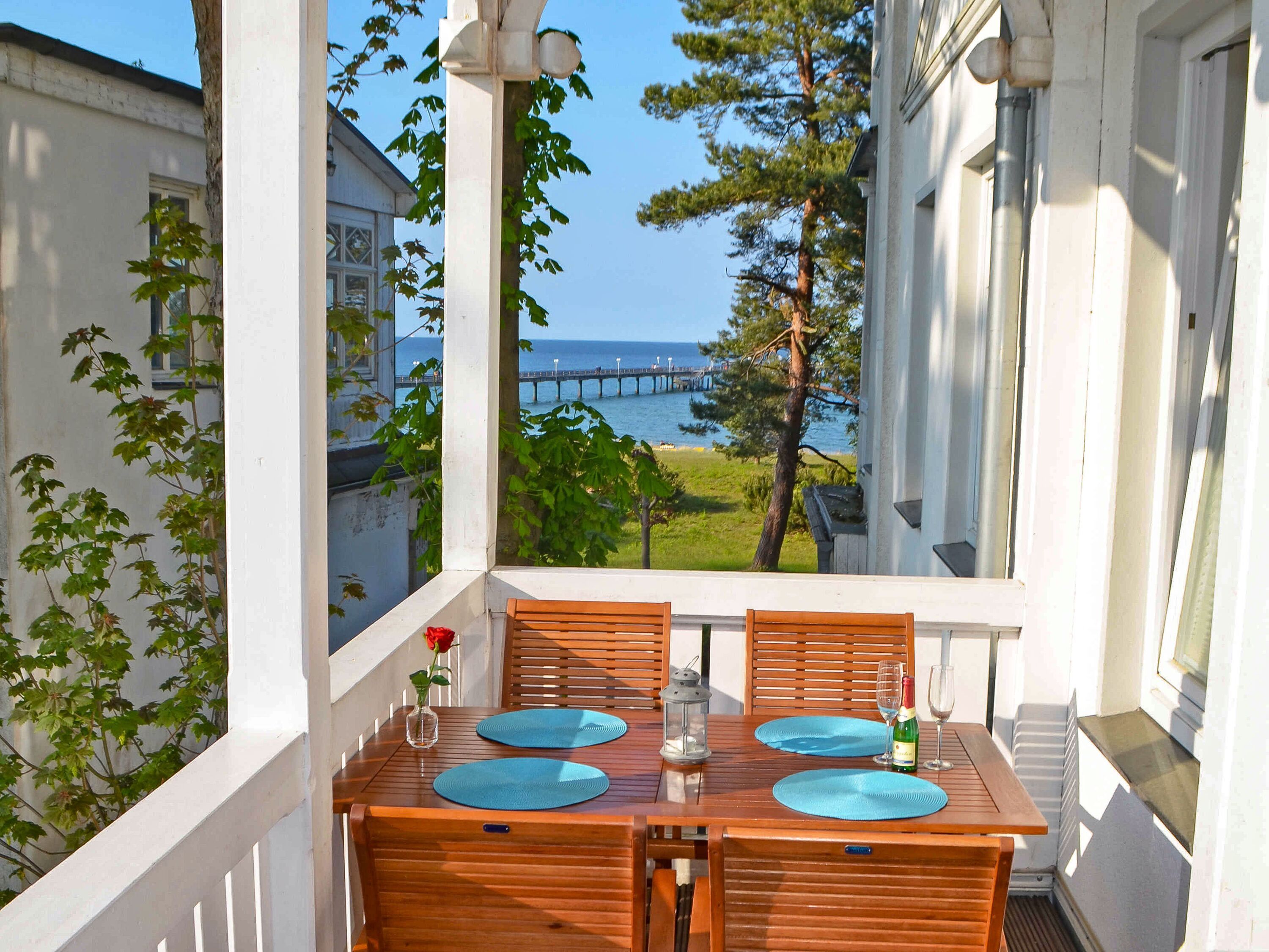 Herzlich Willkommen im Miramare ... Dieses 3-Raum-Appartement im 1. Obergeschoss der Villa Strandblick bezaubert auf rund 68 qm Wohnfläche mit seiner modernen und gepflegten Einrichtung, die eine behagliche Wohlfühl-Atmosphäre ausstrahlt. Hier genießen Sie Ruhe und Erholung, vor allem natürlich auf dem Balkon im Bäderstil, wo Sie die Abendsonne und einen seitlichem Ostseeblick in Richtung Seebrücke und Kreideküste haben.