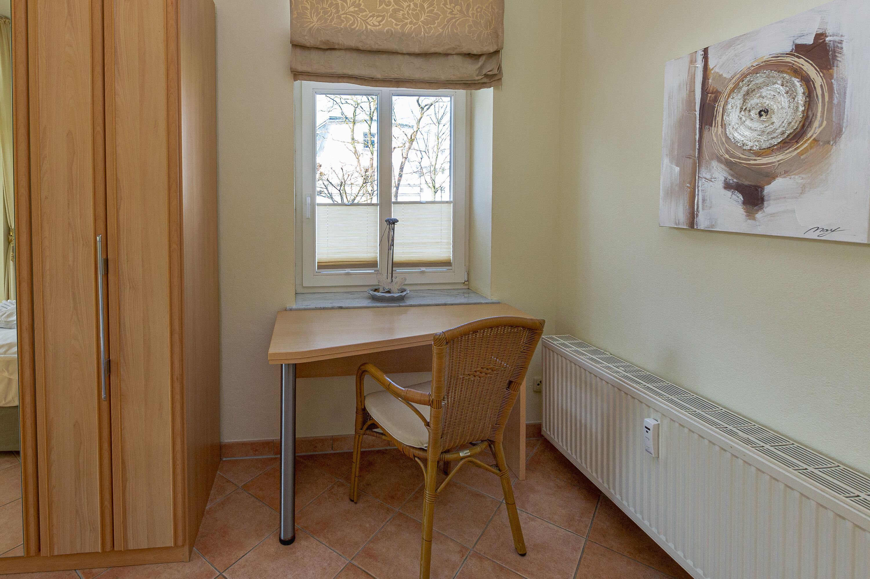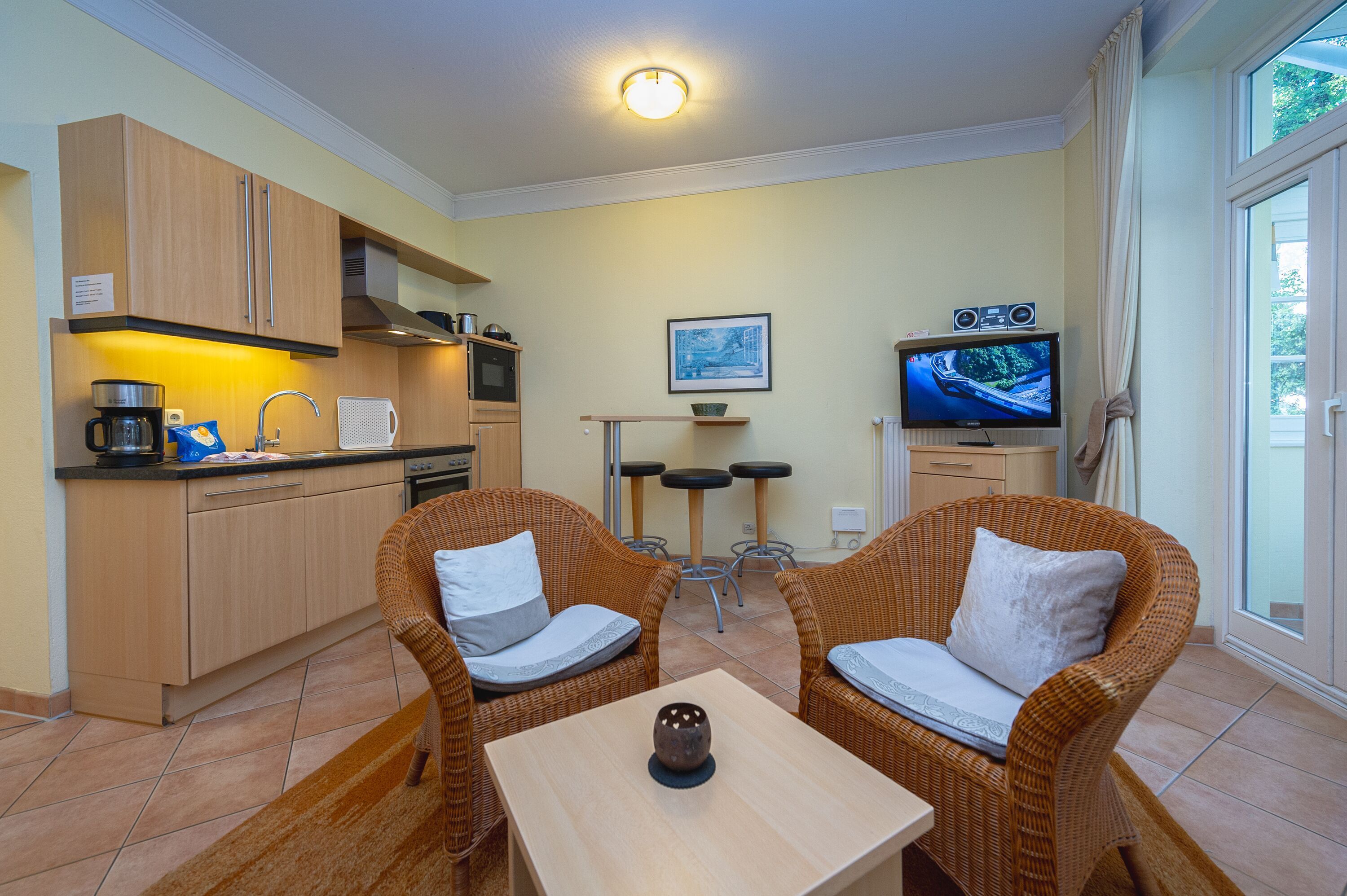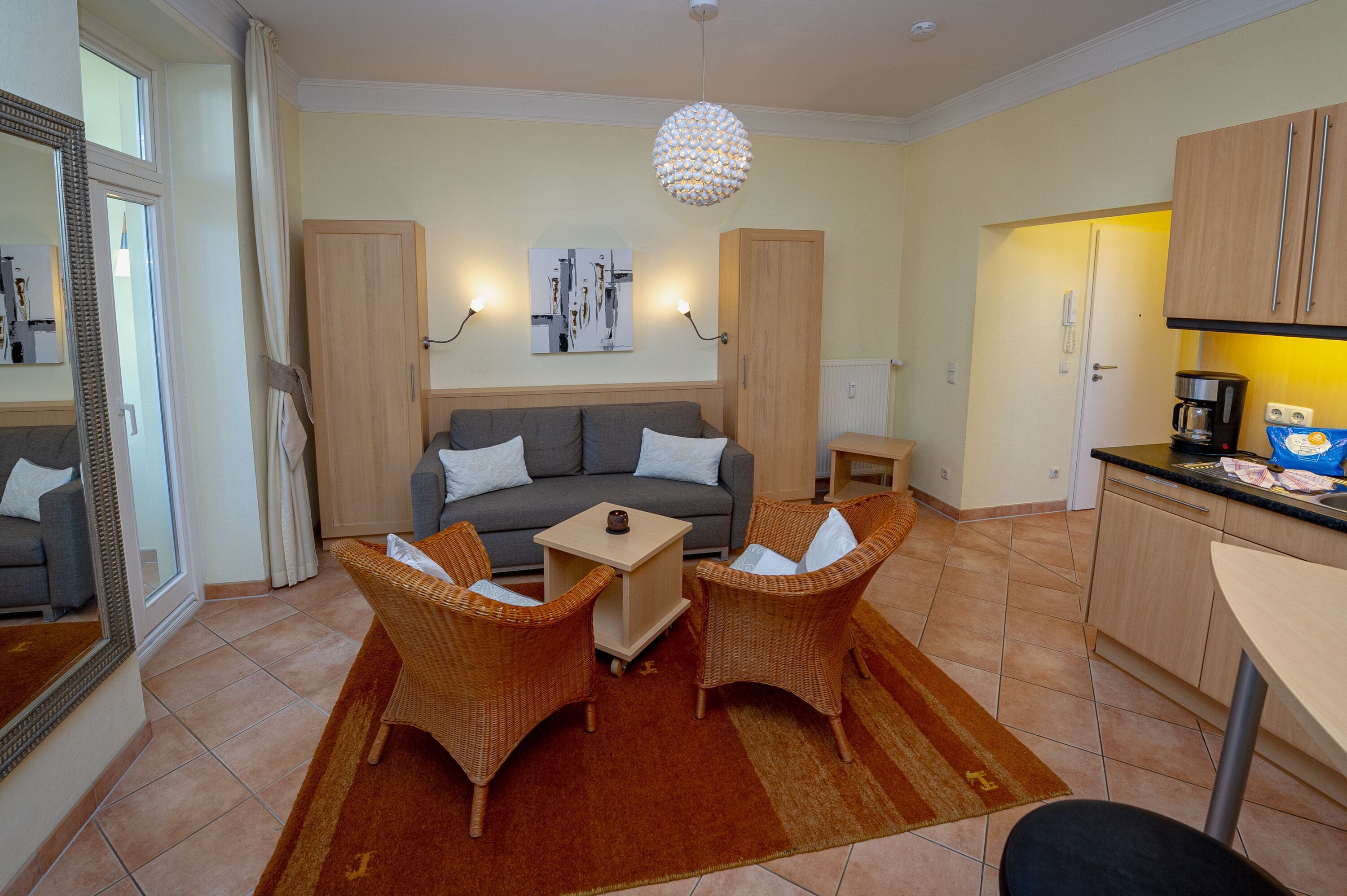 Die Wohnung 03 ist ein rund 56 m² großes 2-Raum Appartement im Erdgeschoss der Villa Malepartus und bezaubert neben ihrer wunderbar zentralen und strandnahen Lage mit gleich zwei verglasten Wintergärten und einer komfortablen Einrichtung.