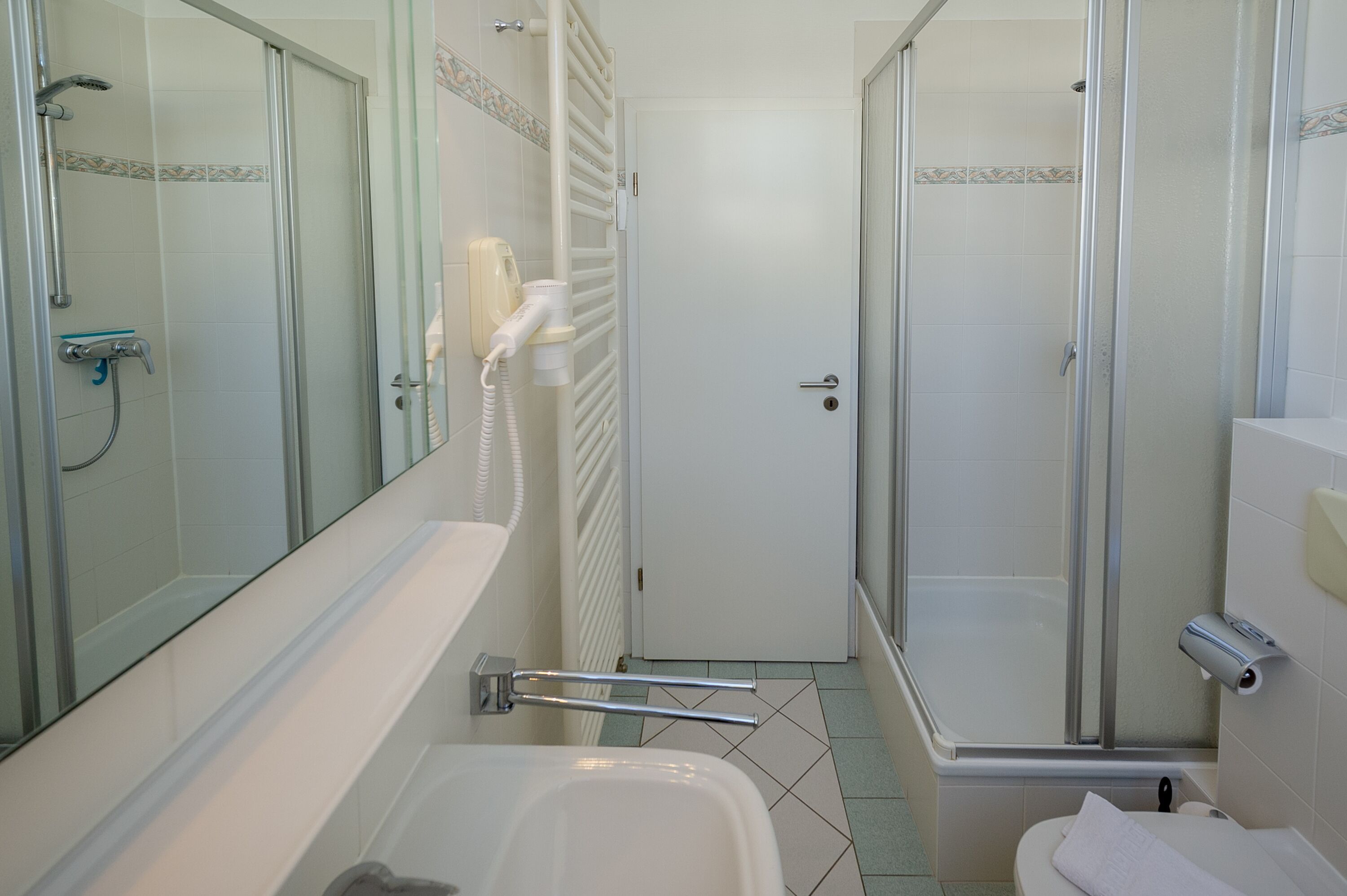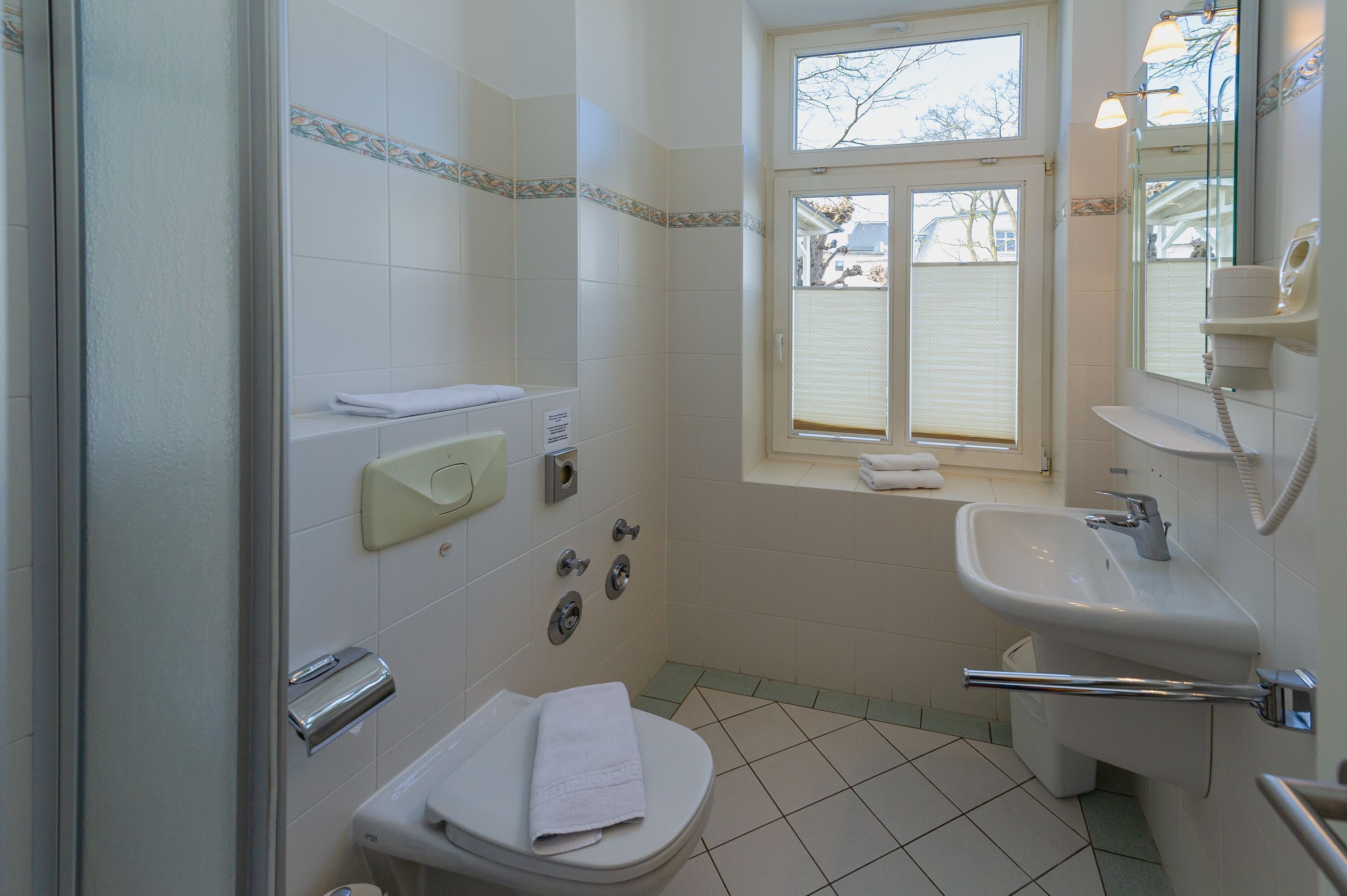 Das Tageslichtbad ist mit Dusche/WC, einem Waschtisch mit Fön und Spiegel sowie einem Handtuchwärmer ausgestattet.