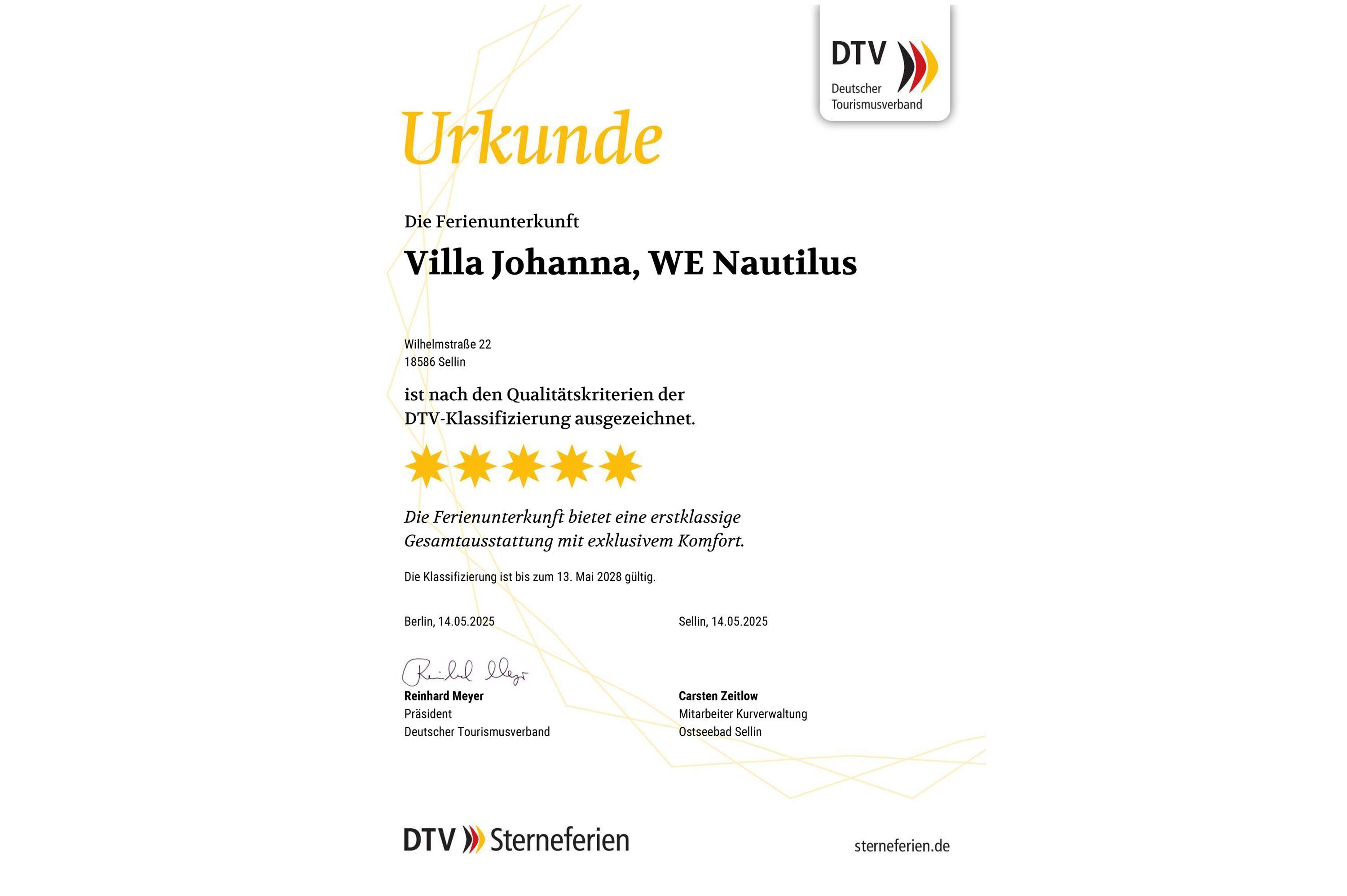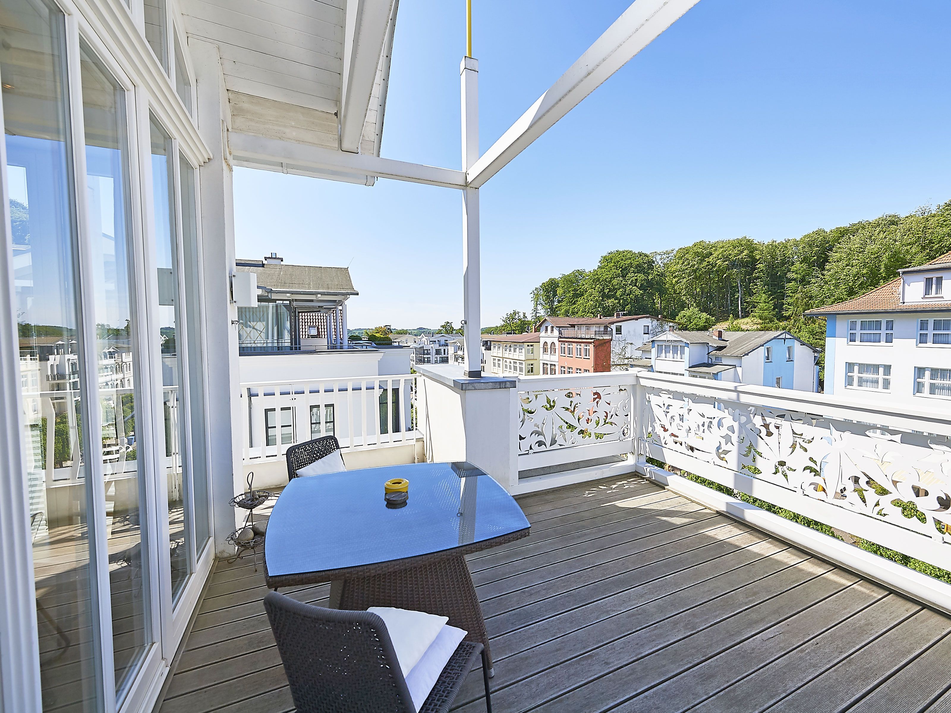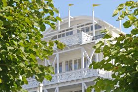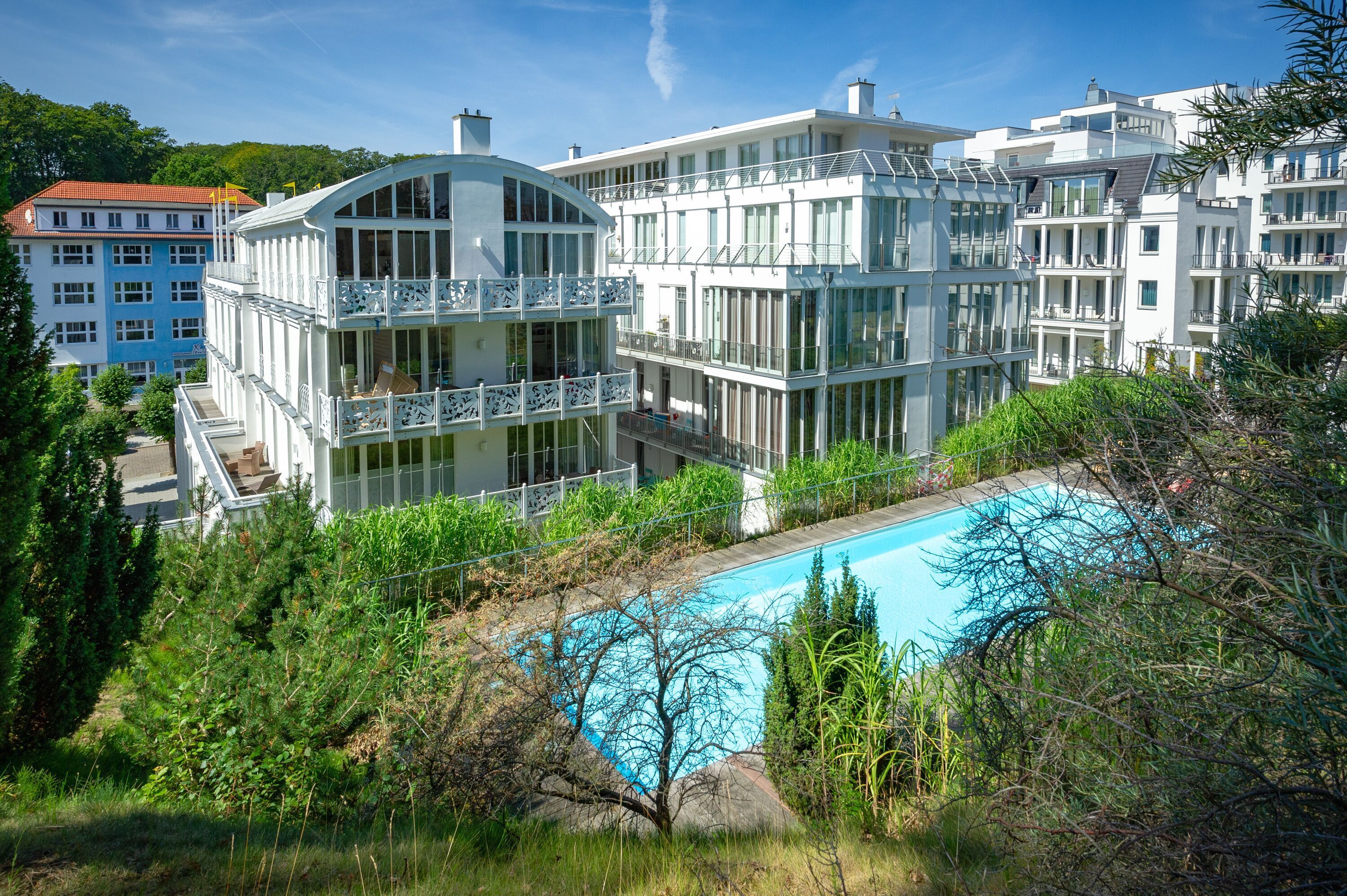 Die Villa Johanna entstand 2011 im Bädervillenbaustil. Die Balkone sind mit aufwändigen Ornamenten verziert und schmücken diesen einzigartigen Bau, sowie auch die riesigen konischen Säulen. Die Raumhöhe in diesem Penthouse reicht weit über 3 Meter hinaus. Das Lichtspiel in diesem Penthouse ist durch seine exponierte Ausrichtung und die vielen Glaselemente unvergleichlich. Der hauseigene solarbeheizbare Außenpool (5 x 15 Meter) befindet sich am Hang hinter der Villa und steht Ihnen saisonal zur Verfügung. Das Wasser wird chlorfrei saubergehalten, so dass Sie die frische Ostseeluft ungehindert geniessen können.