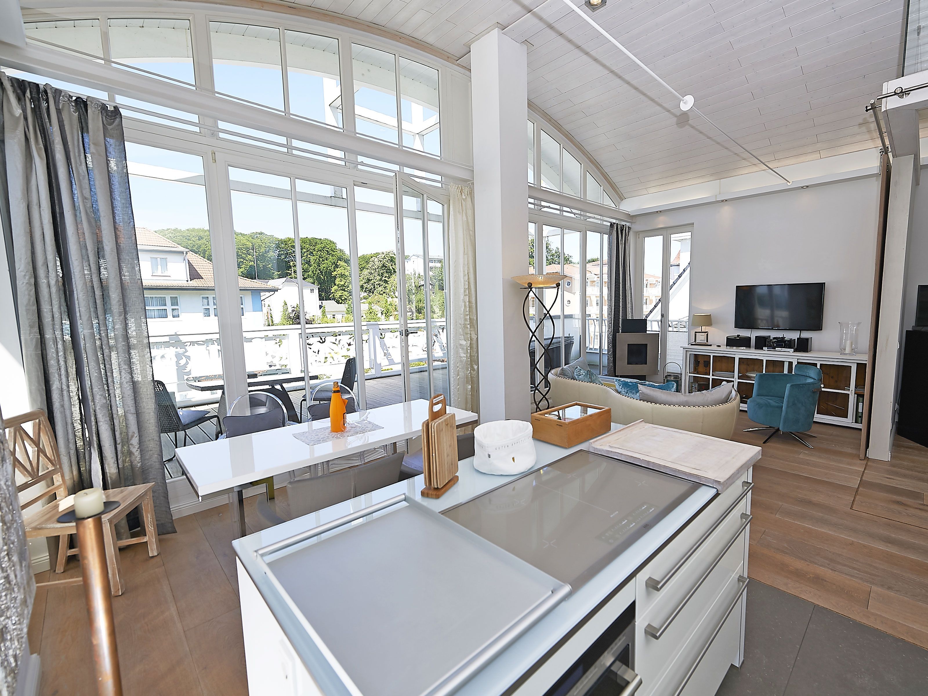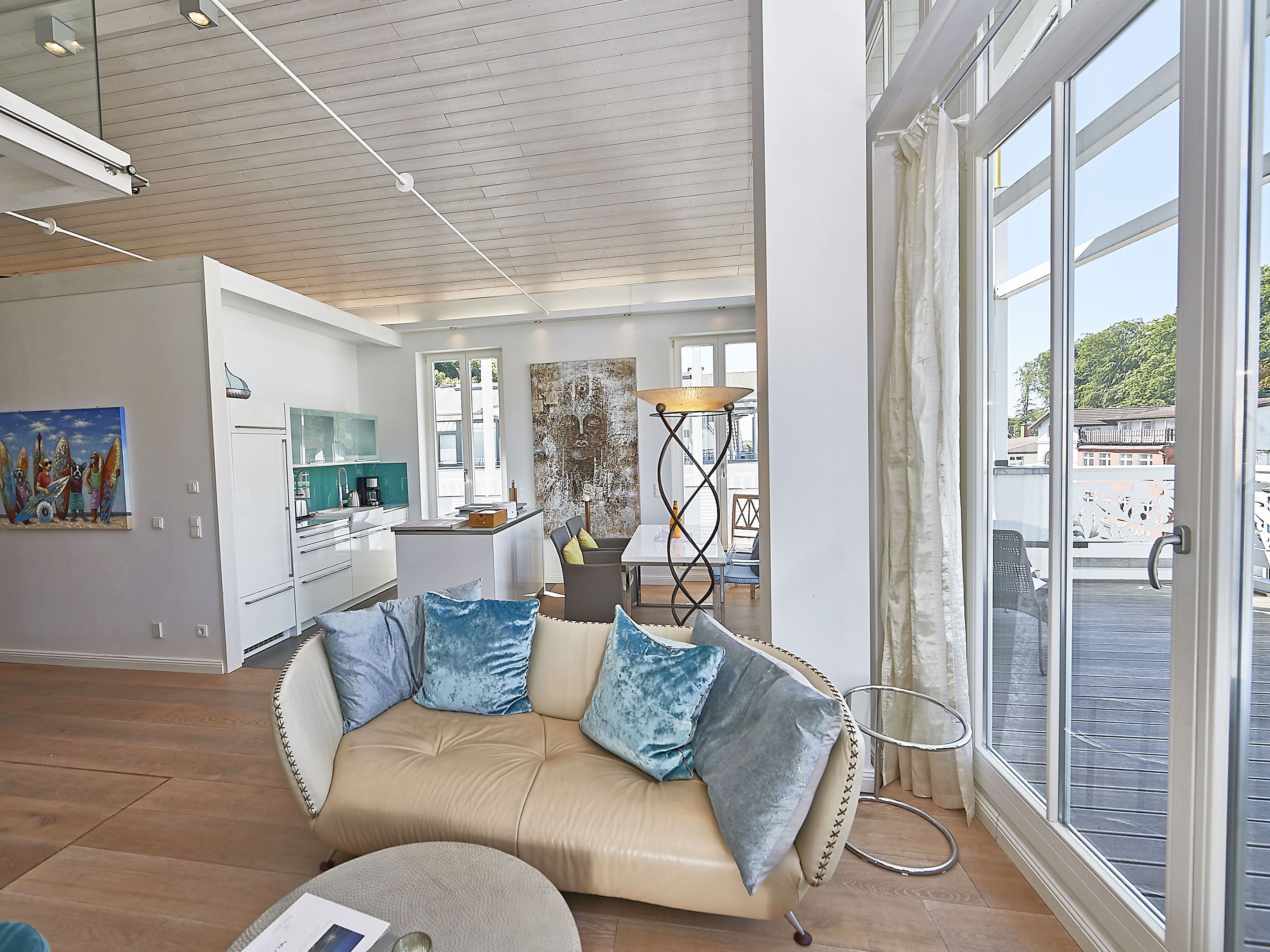 Dieses Luxuspenthouse unter Tonnengewölbe bietet Ihnen ein privates Saunaerlebnis, einen majestätischem Blick zum Meer, zum mystischen Friedensberg und zum Selliner See.