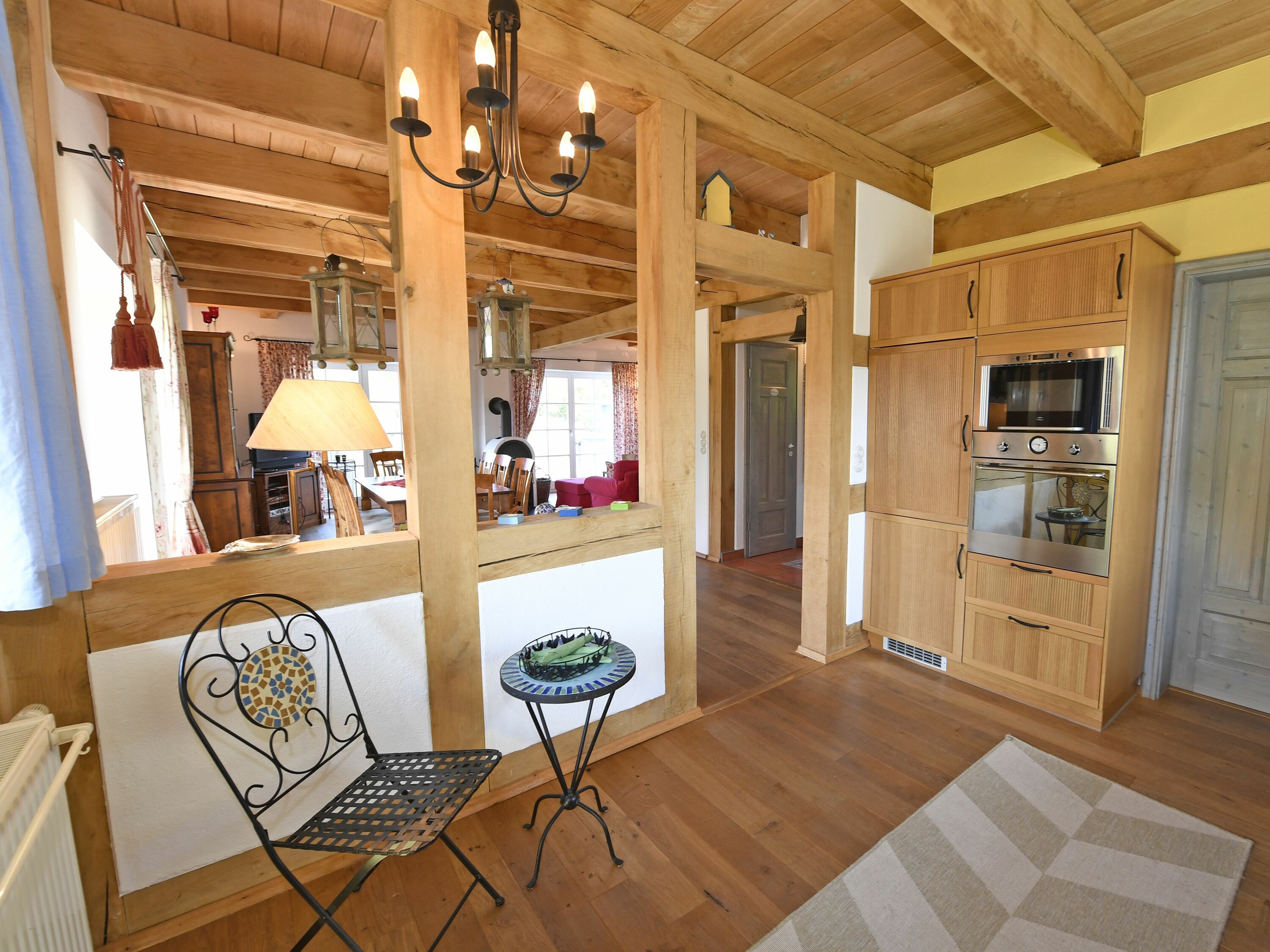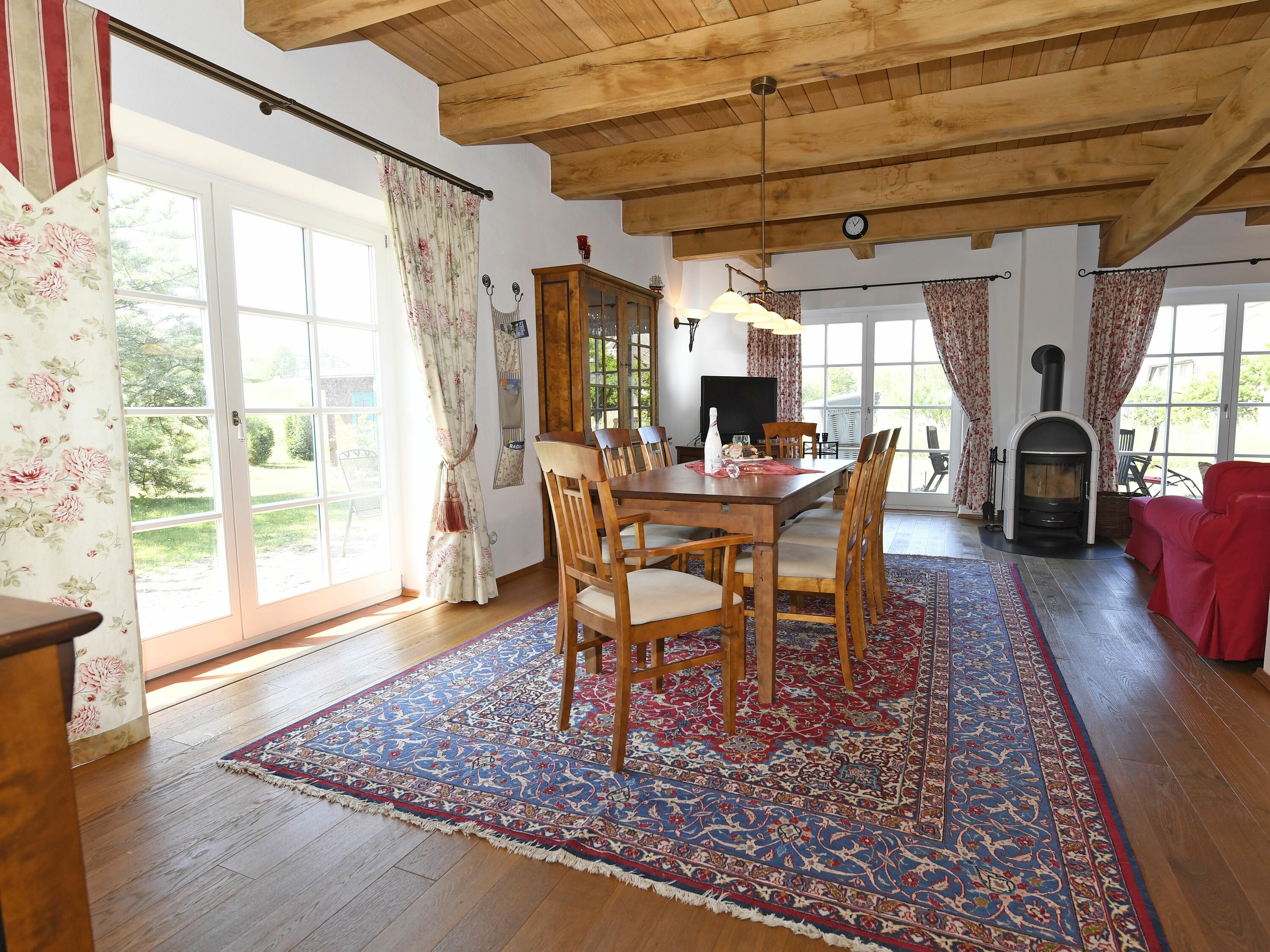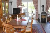 Das Haus verfügt über ein Wohn-/Esszimmer mit einem Esstisch für 6 Personen, einer Sitzecke mit Kaminofen, TV mit DVD - Player und Stereoanlage, eine Küche mit Backofen, Kühlschrank, 4 Platten-Induktionsherd, Mikrowelle und Geschirrspüler sowie zwei Abstellräume mit Waschmaschine und Bügelutensilien.