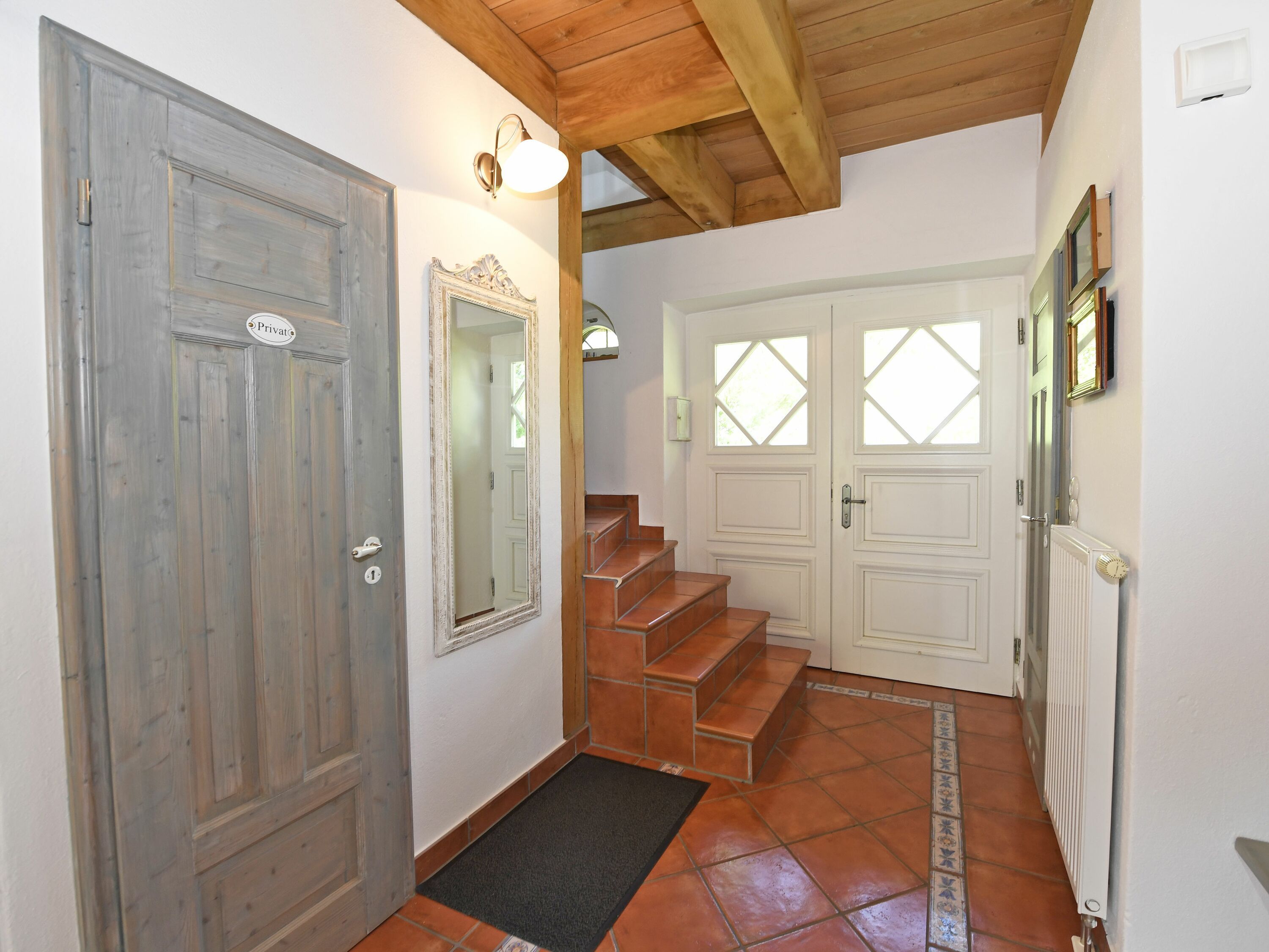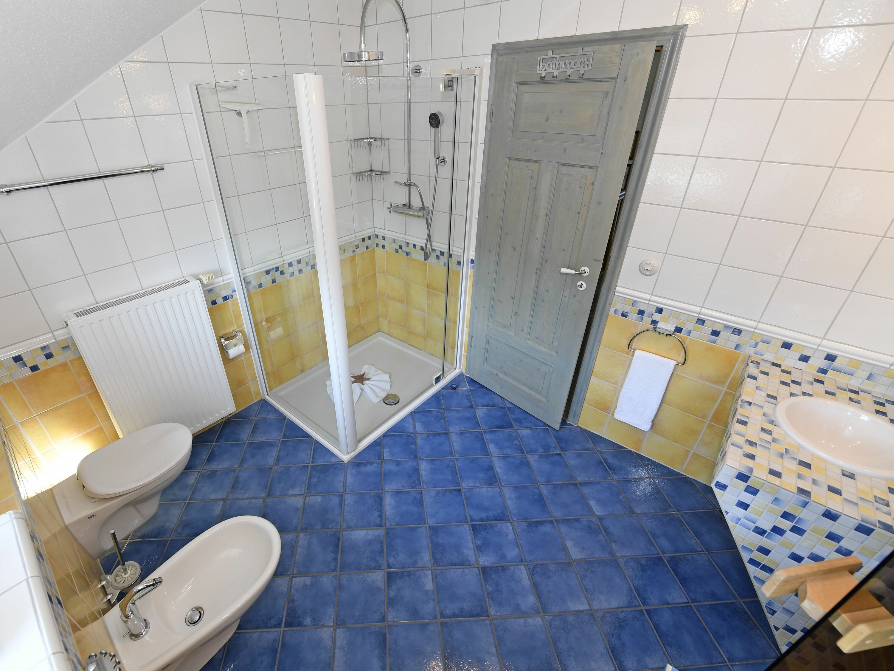 Im Erdgeschoss befindet sich außerdem ein Duschbad unter Balken. Im Obergeschoss des Hauses finden Sie ein weiteres Badezimmer mit Dusche, Waschbecken und einer Sauna sowie drei geräumige Schlafzimmer mit je einem Doppelbett.