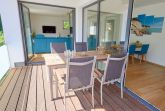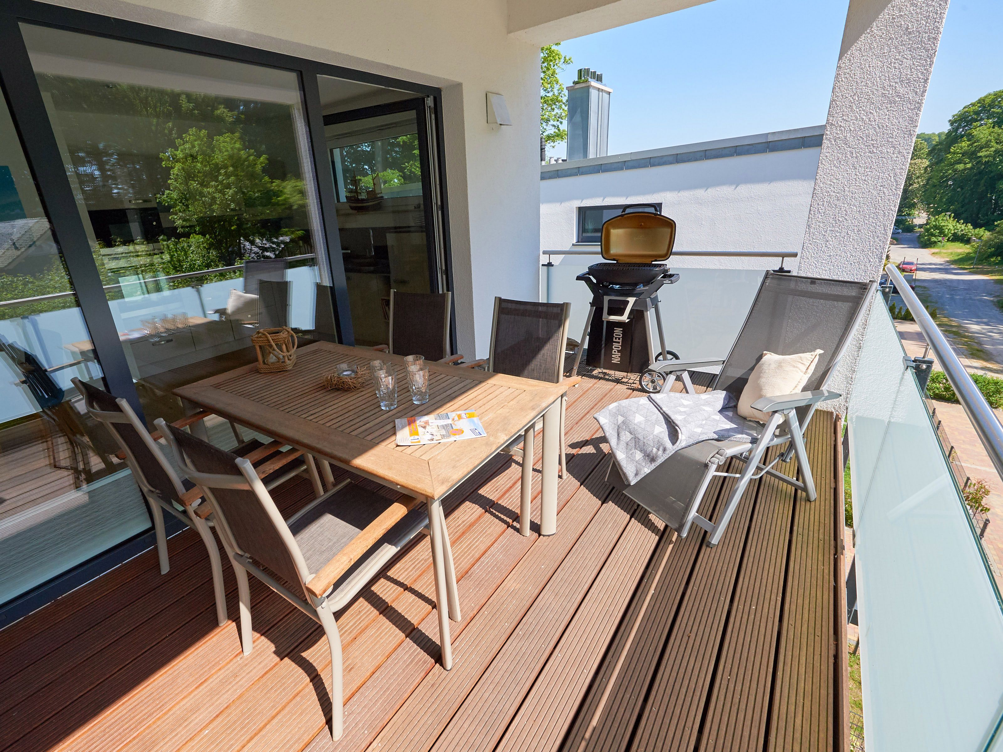 Die integrierte, exklusive Hochglanzküche verfügt u.a. über ein Cerankochfeld, eine Spülmaschine, einen ergonomisch perfekt angebrachten Backofen, einen extragroßen Kühlschrank mit 3*Frostfach, eine Mikrowelle sowie Wasserkocher, Eierkocher, Toaster und Filterkaffeemaschine. Der zusätzliche Jura-Kaffeevollautomat (inkl. Kaffee satt) zaubert Ihnen auf Wunsch die leckersten Kaffeespezialitäten. Der angrenzende große Balkon (ca. 13 qm) eignet sich sehr gut zum Frühstücken oder Sie genießen die Abendsonne mit einem Barbeque vom vorhandenen Elektrogrill.