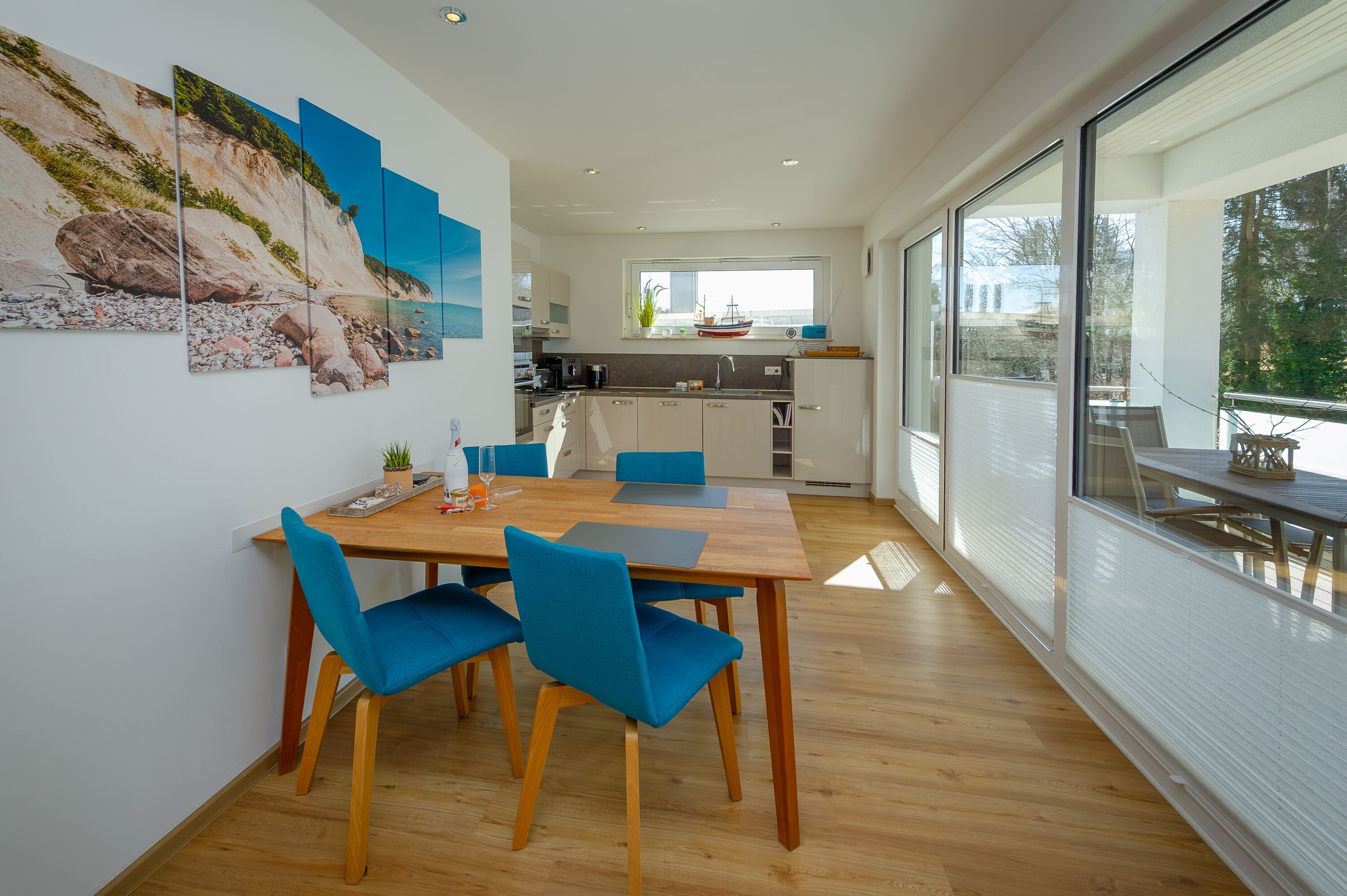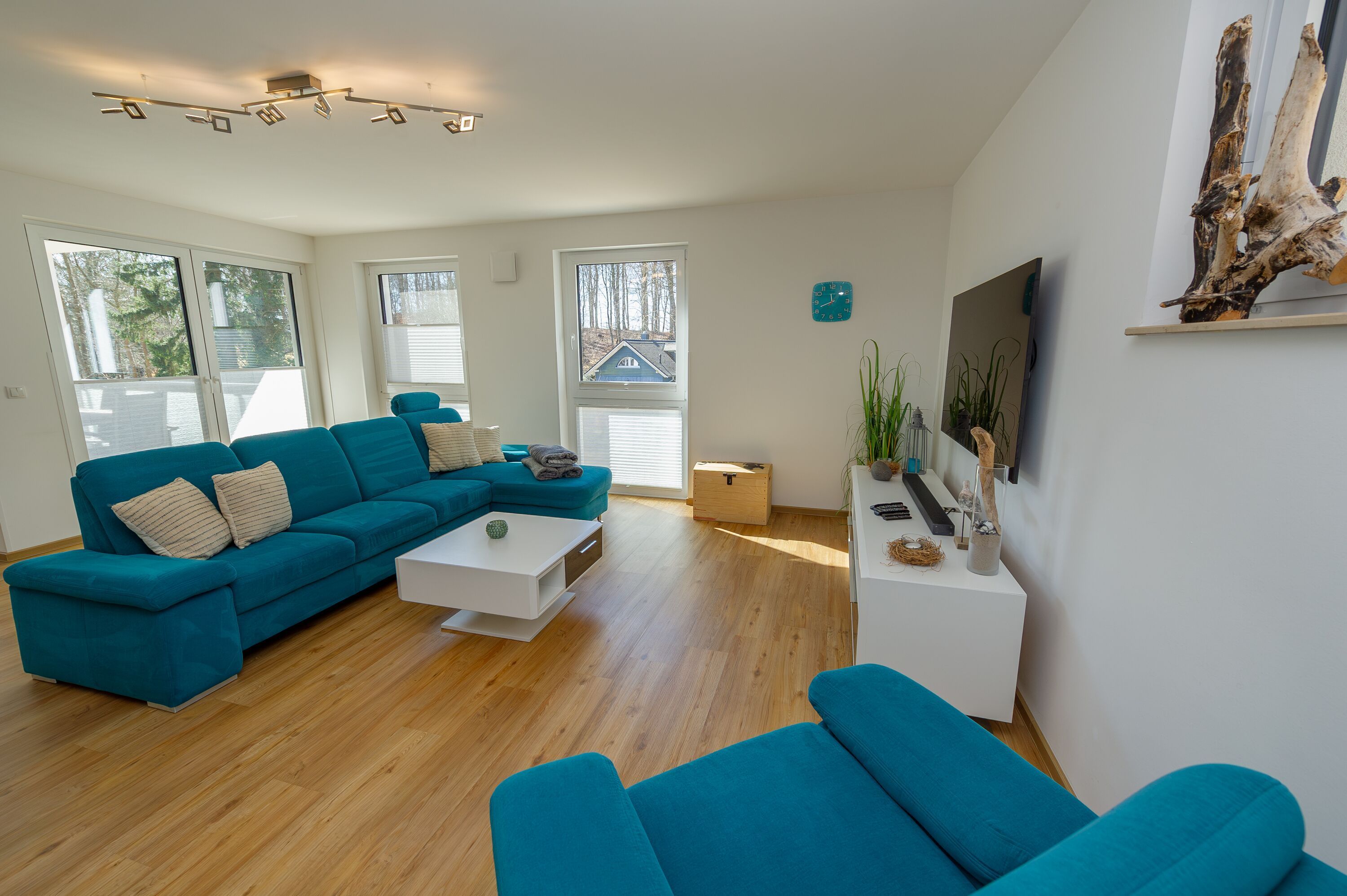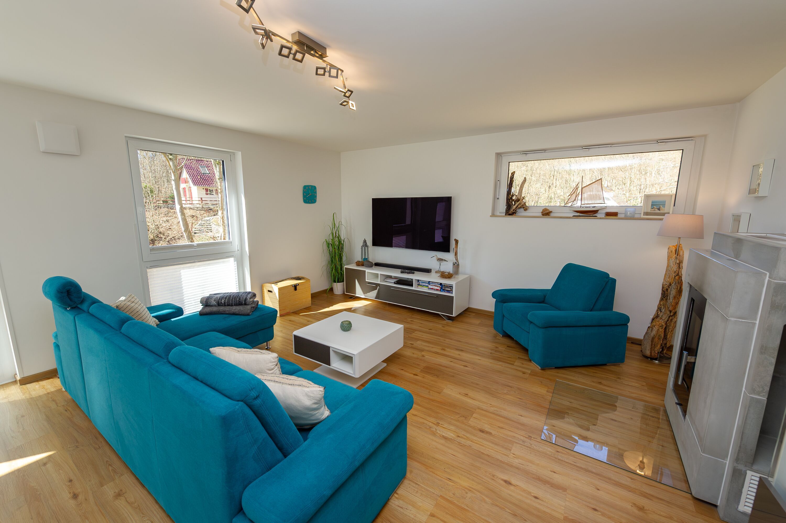 Herzstück Ihres Zuhauses auf Zeit ist das offen gestaltete Wohn- und Esszimmer mit Kaminofen (Holz ist kostenfrei vorhanden), einem bequemen Relaxsofa, einem Sessel und einem 65 QLED 4K Smart-TV mit Bluetooth Soundbar und Bluray-Player. Natürlich steht Ihnen in der gesamten Wohnung auch kostenfreies W-LAN zur Verfügung. Einen Schreibtisch zum mobilen Arbeiten gibt es auch.