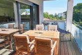 Der große Balkon (ca. 13m²) ist von Küche und Wohnzimmer zugänglich. Er eignet sich sehr gut zum Frühstücken oder relaxen. Nutzen Sie gerne die gemütliche Sitzgruppe und den dort vorhandenen Weber-Elektrogrill.