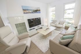 Die 4*-Wohnung verfügt komplett über eine raumweise individuell regulierbare Fußbodenheizung. Die Ausstattung mit hochwertiger Unterhaltungselektronik lässt nichts zu wünschen übrig. Sie nutzen kostenfreies W-LAN. Im Wohn-/Essbereich sowie in den beiden Schlafzimmern erfreuen Sie sich jeweils an großformatigen Samsung-Flachbildfernsehern mit Full-HD neuester Generation, u.a. Internetzugang, zum Teil mit BluRay-DVD-Player. Machen Sie es sich im Wohnzimmer bequem im Relax-Fernseh-Sessel “Movie Star” - wir laden Sie kostenfrei in die Welt der Unterhaltung mit SKY-TV ein. Ein Compact Stereo System von Philips mit Radio/ CD-Player/ iPod-/iPhone-/iPad- und Bluetooth-Schnittstelle sowie USB Anschluss ist ebenfalls für besten Musikgenuß vorhanden.