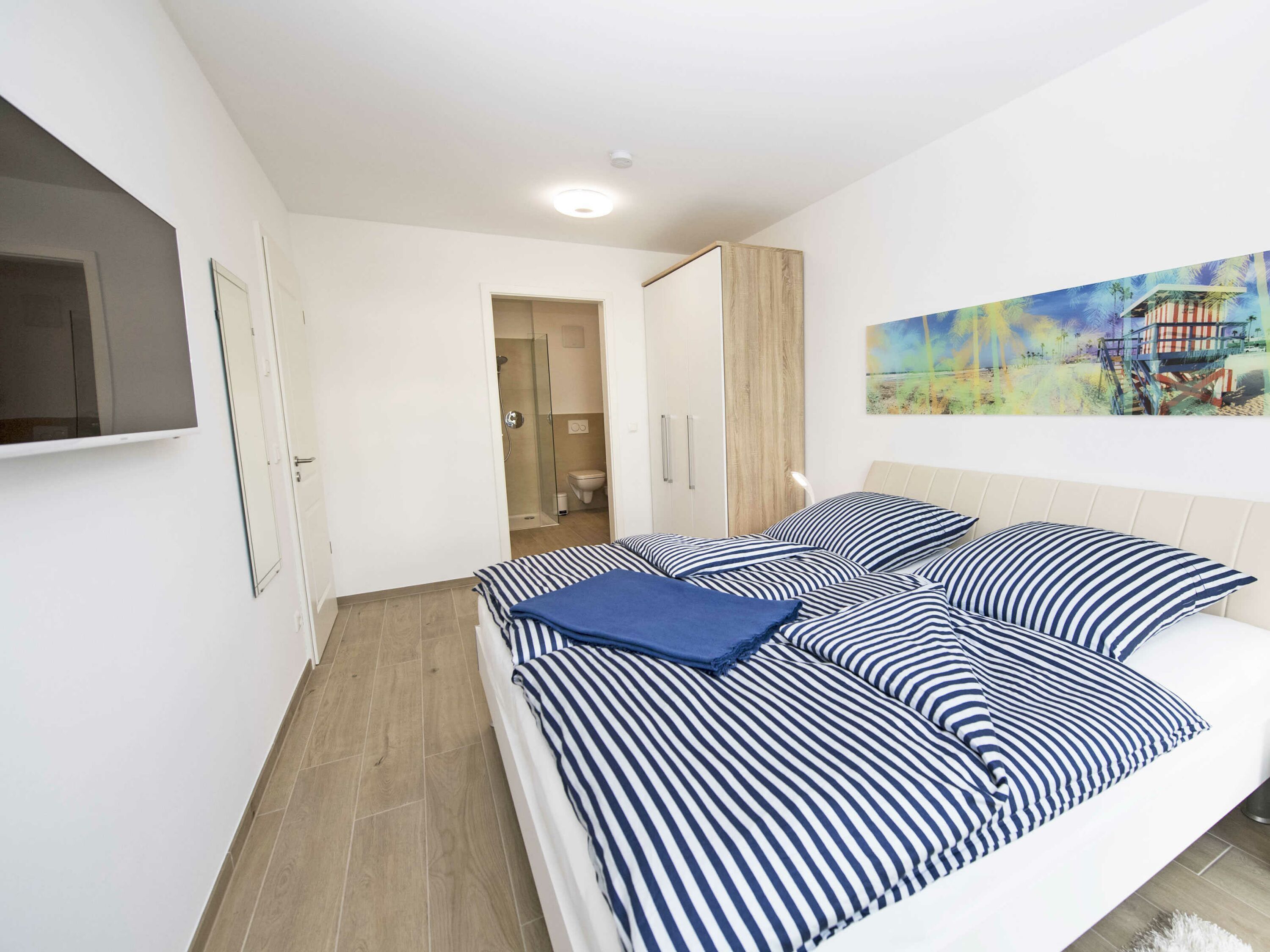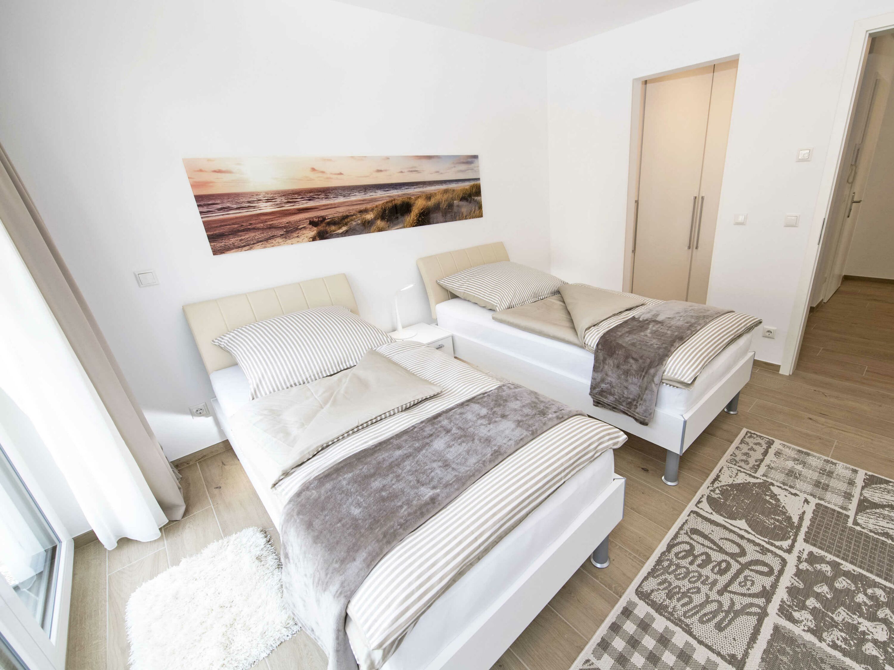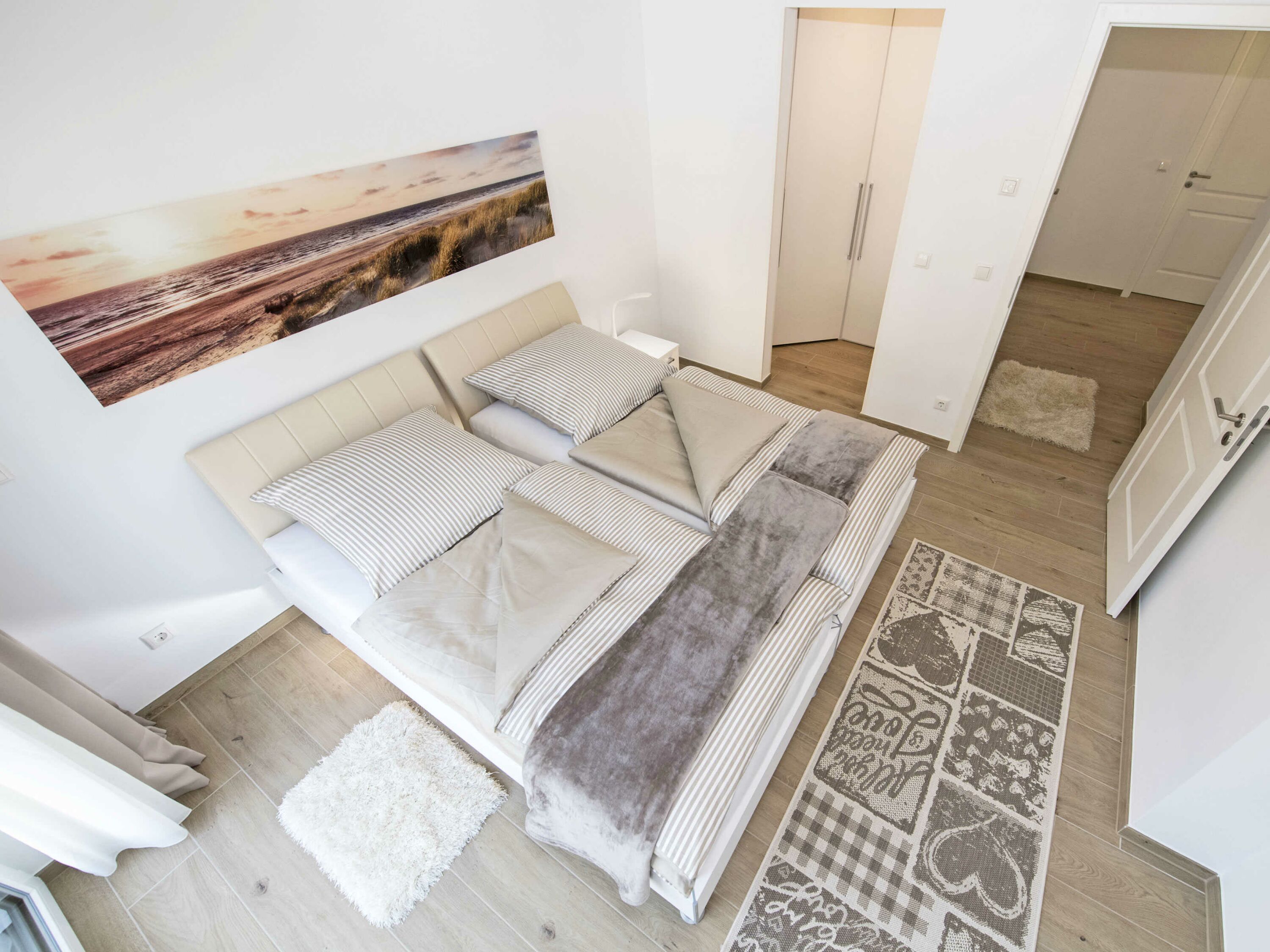 In den beiden Schlafzimmern ausgestattet mit hochwertigen Möbeln und Betten des deutschen Herstellers Nolte werden Sie himmlisch nächtigen. Die 26 cm hohen 7-Liegezonen-Matratzen bieten Ihnen ein spezielles Schulter-Absenkungs- und Becken-Komfortsystem mit hervorragender Wirbelsäulenanpassung. Die Vorhänge ermöglichen das Abdunkeln. Es stehen 2 verschiedene Kopfkissen-Varianten von irisette Noblesse auch ideal geeignet für Hausstaub-Allergiker zur Verfügung. Durch die bei Bedarf geöffneten Fenster versehen mit einem Insektenschutzgitter kommt im Sommer eine kühle Brise vom Meer.