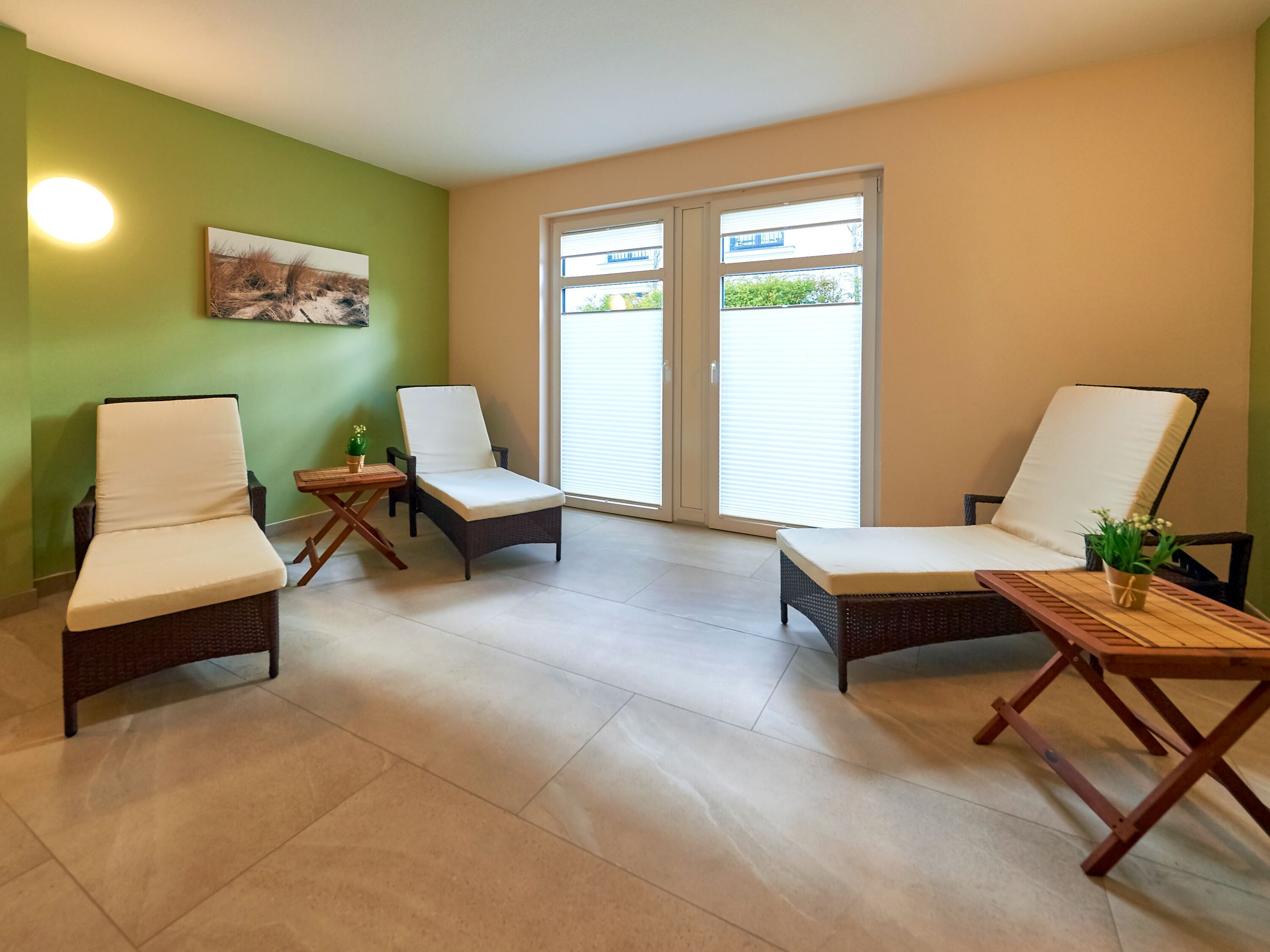 In der Villa Louisa gibt es als weiteres Highlight einen hauseigenen, sehr großzügigen, geschmackvoll gestalteten Sauna- und Ruhebereich. Alles ist neu, auf höchstem Standard und barrierefrei angelegt. Auffallend schön ist die aussergewöhnlich aufwendige und liebevolle gärtnerische Gestaltung des Hauszuganges.