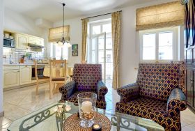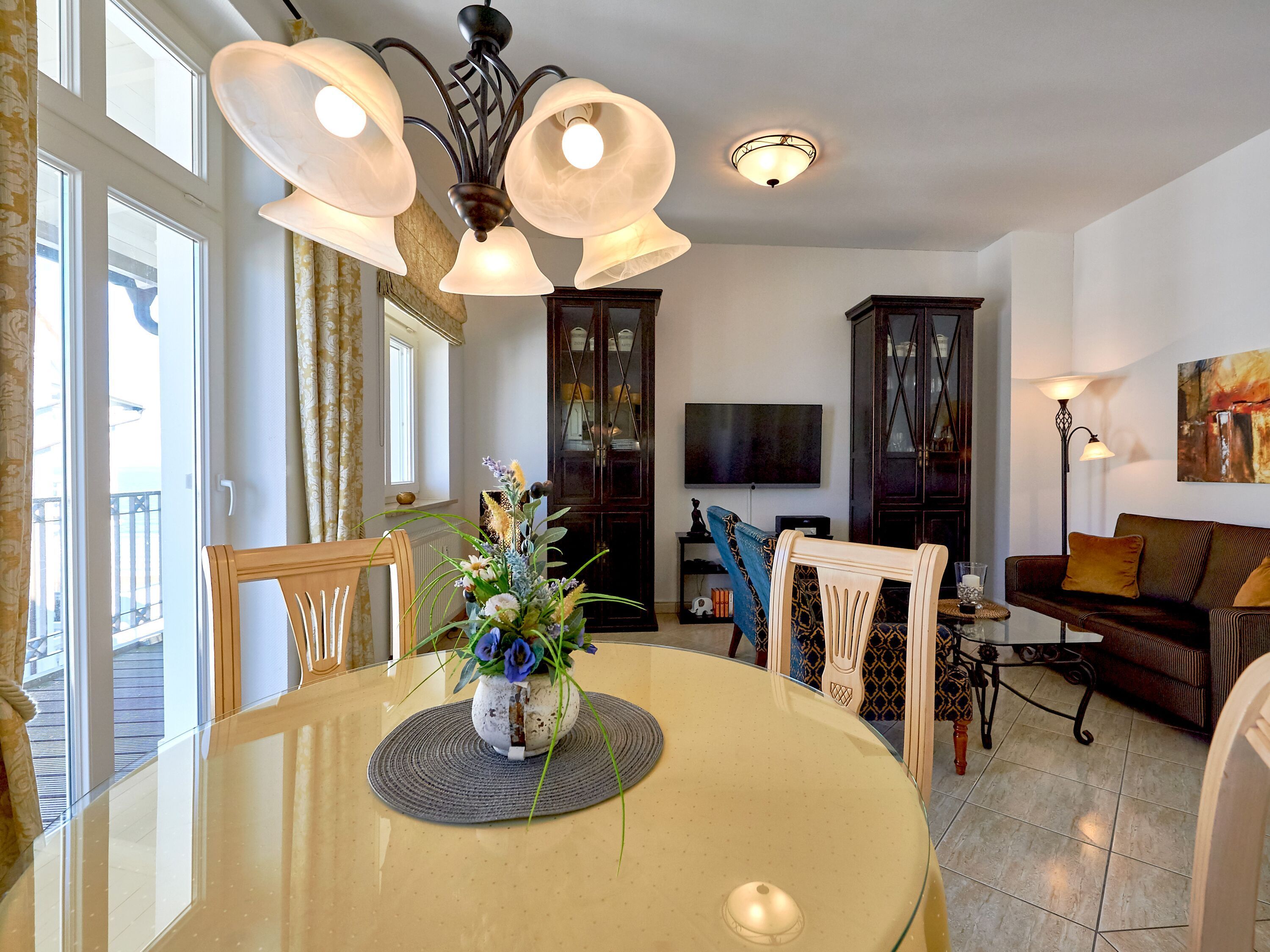 Dieses luxuriös und komfortabel eingerichtete 2-Raum-Appartement ist ca. 60 m² groß, befindet sich im 2. Obergeschoss des Hauses und ist bequem mit einem Lift zu erreichen.
