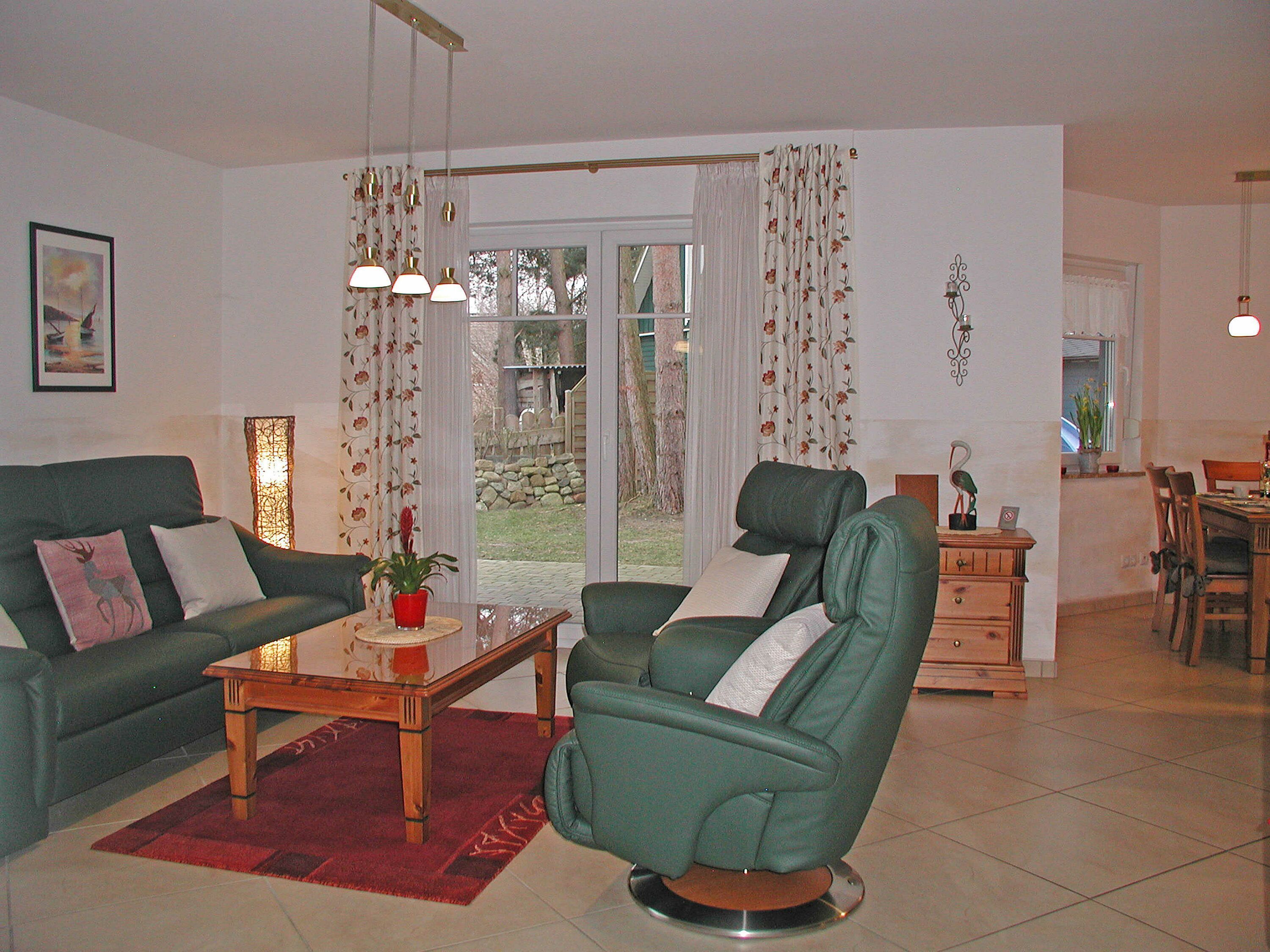 Das Wohnzimmer, mit Echtholzmöbeln, bequemem Wohlfühlsofa und verstellbaren Relaxsesseln ausgestattet, bietet nach einem erlebnisreichen Tag eine ganz besondere Atmosphäre für Entspannung und Erholung. Bei knisterndem Kaminfeuer kann man im Kreis der Familie die Erlebnisse noch einmal Revue passieren lassen.