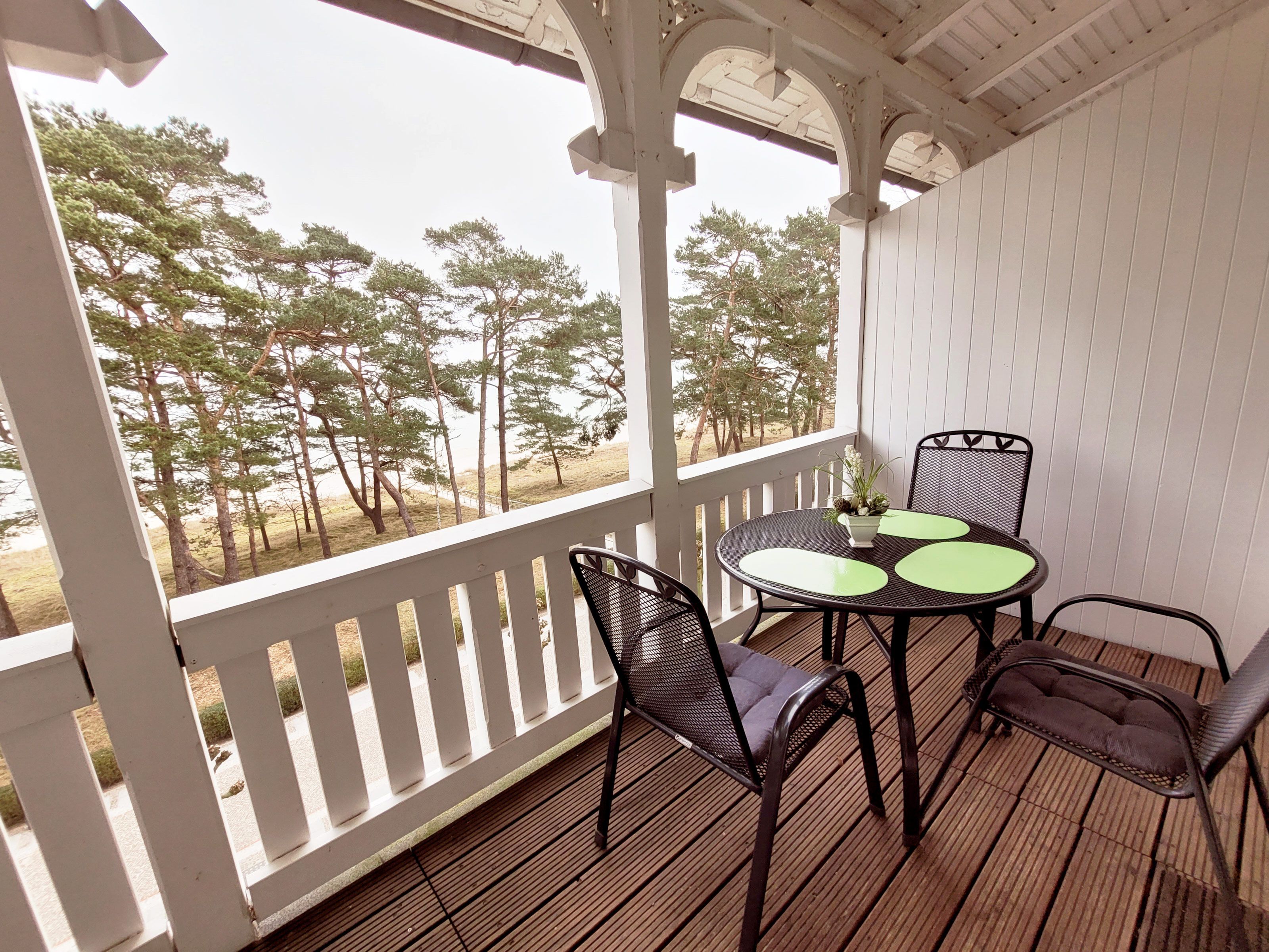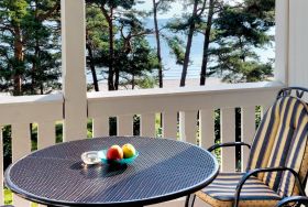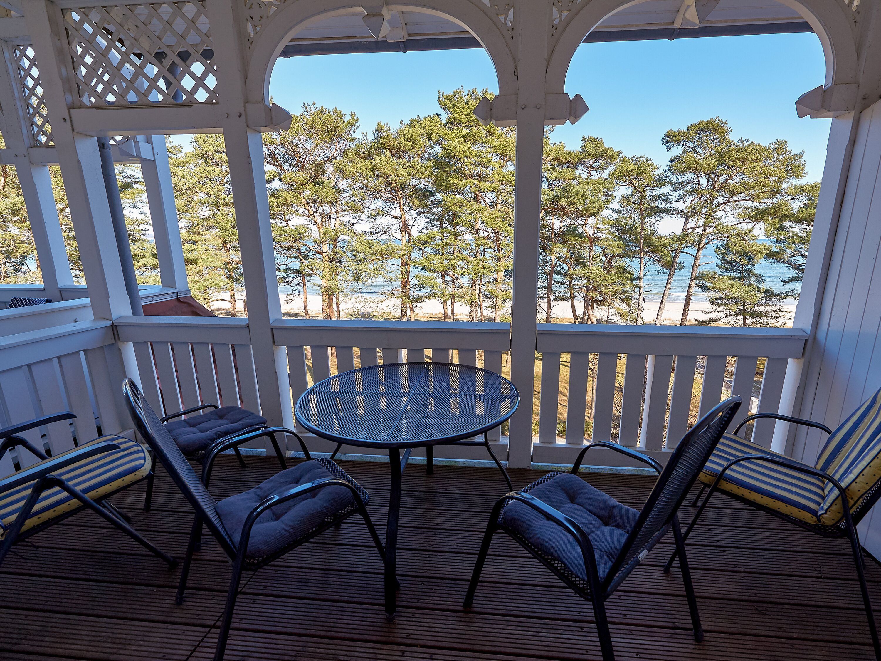 Die Wohnung 11 ist ein rund 52 m² großes, komfortabel eingerichtetes 2-Raum-Appartement, welches Sie im zweiten Obergeschoss der Villa Strandidyll erwartet. Zu den herausragenden Trümpfen zählen die große Loggia, die einen traumhaften Blick auf die Ostsee bietet, sowie ein zweiter Balkon zur Landseite, der vom Schlafzimmer aus zu betreten ist. Beide Balkone zusammen ermöglichen das Genießen der Sonne den ganzen Tag über.