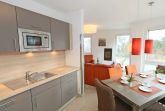 • Küchenzeile mit Geschirrspüler, Kühlschrank mit Gefrierfach, Backofen, 4 Zonen-Cerankochfeld, Mikrowelle, Kaffeemaschine, Toaster, Wasserkocher und diversen Küchenutensilien