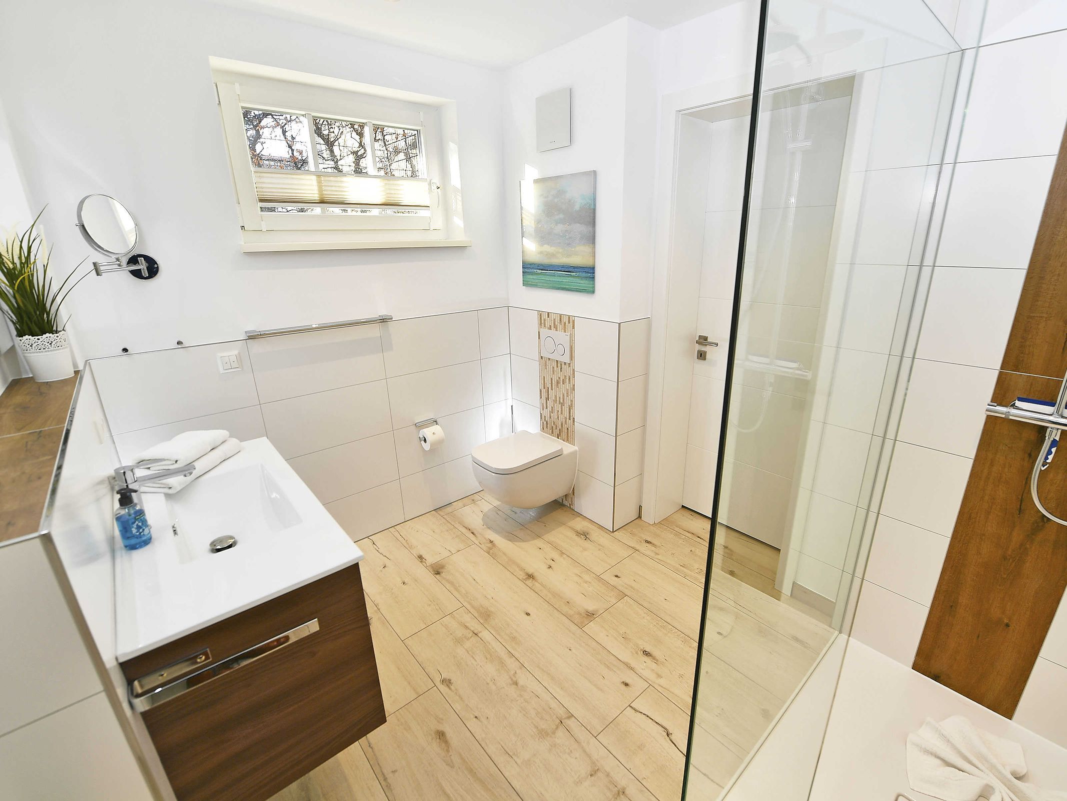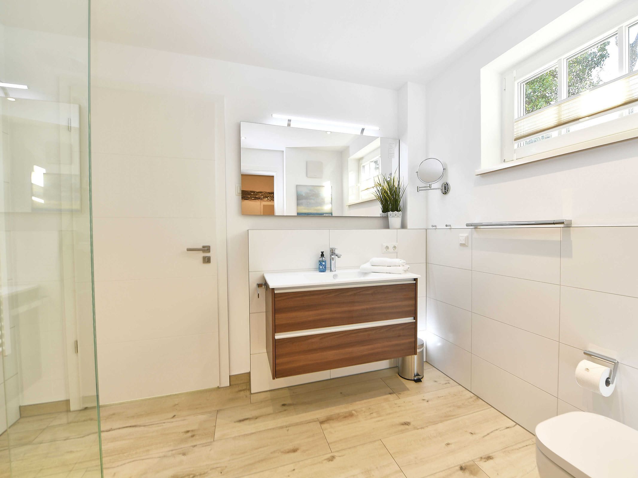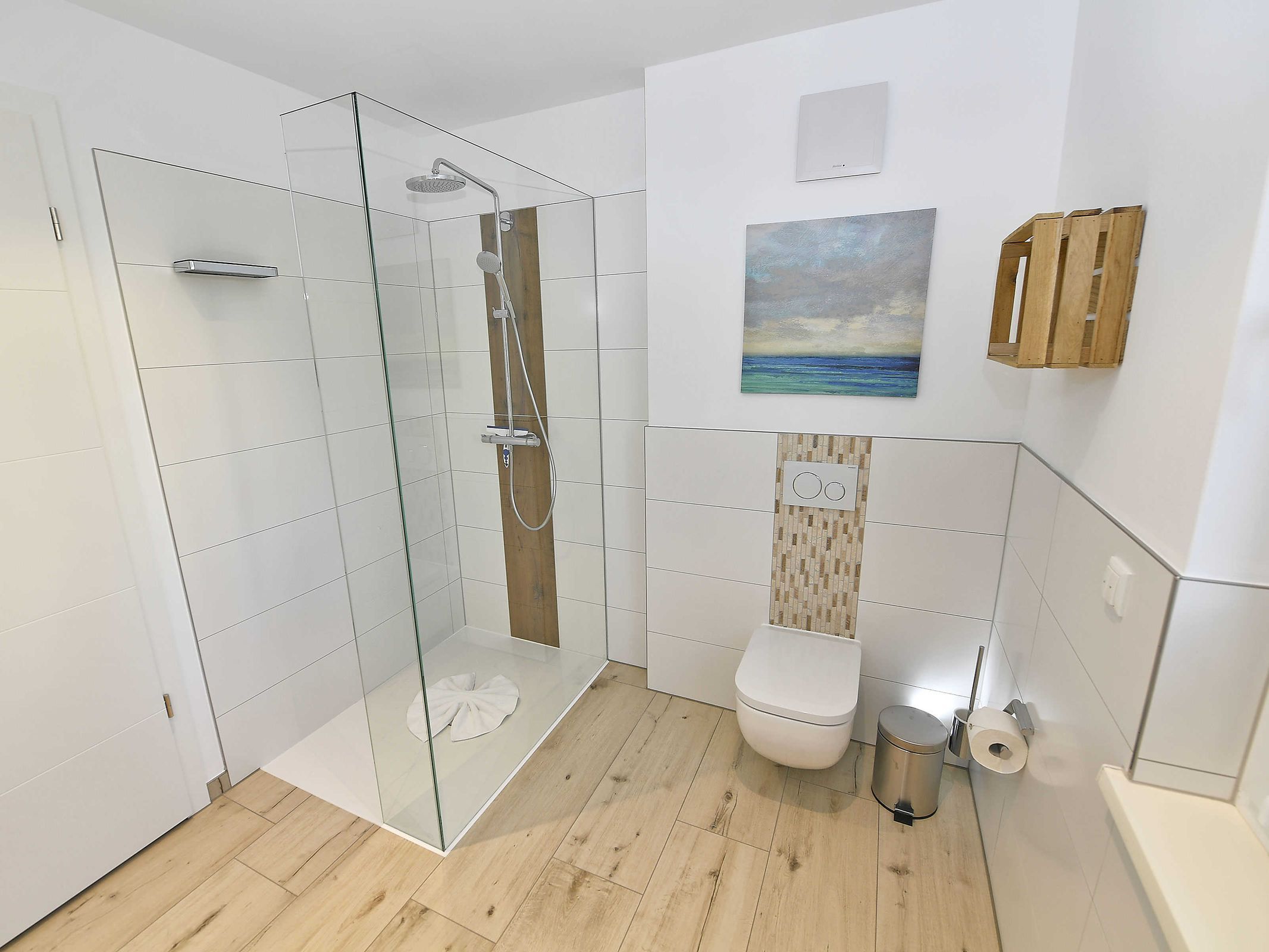 Die beiden exklusiven Duschbäder sind mit hochwertigen Echtglasduschen ausgestattet, die fast ebenerdig sind.