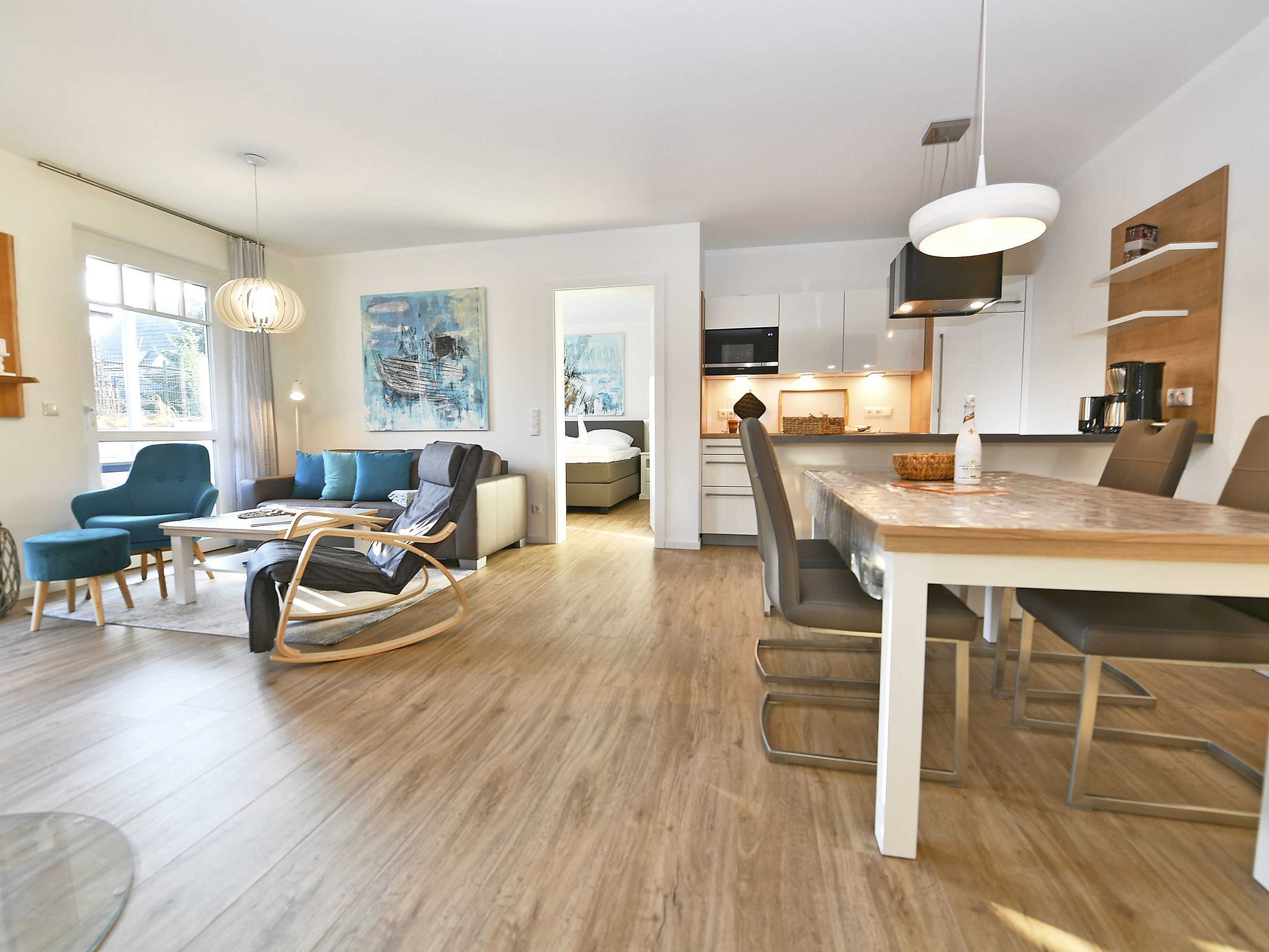 Die ca. 83 m² große luxuriöse Fewo in Binz im Erdgeschoss befindet sich in bester Lage im Ostseebad Binz und verfügt über 3 großzügige Räume, die sehr geschmackvoll und exklusiv eingerichtet sind.