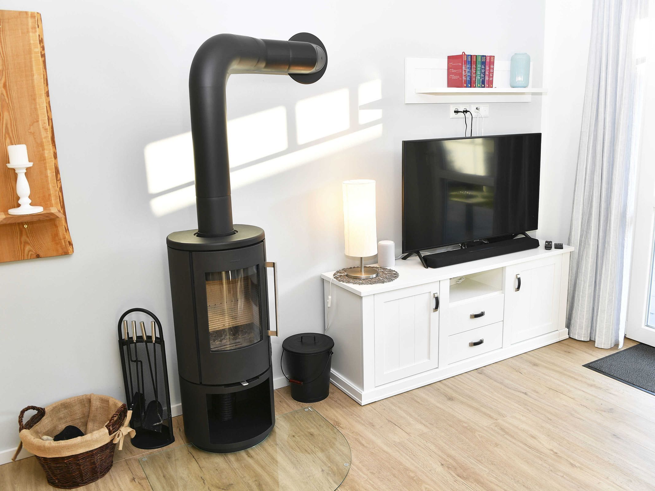 Zur technischen Ausstattung gehören ein Flachbild-TV mit Soundbar incl. Bluetooth. Weiterhin befinden sich in den 2 Schlafzimmern auch je ein Flachbild TV.