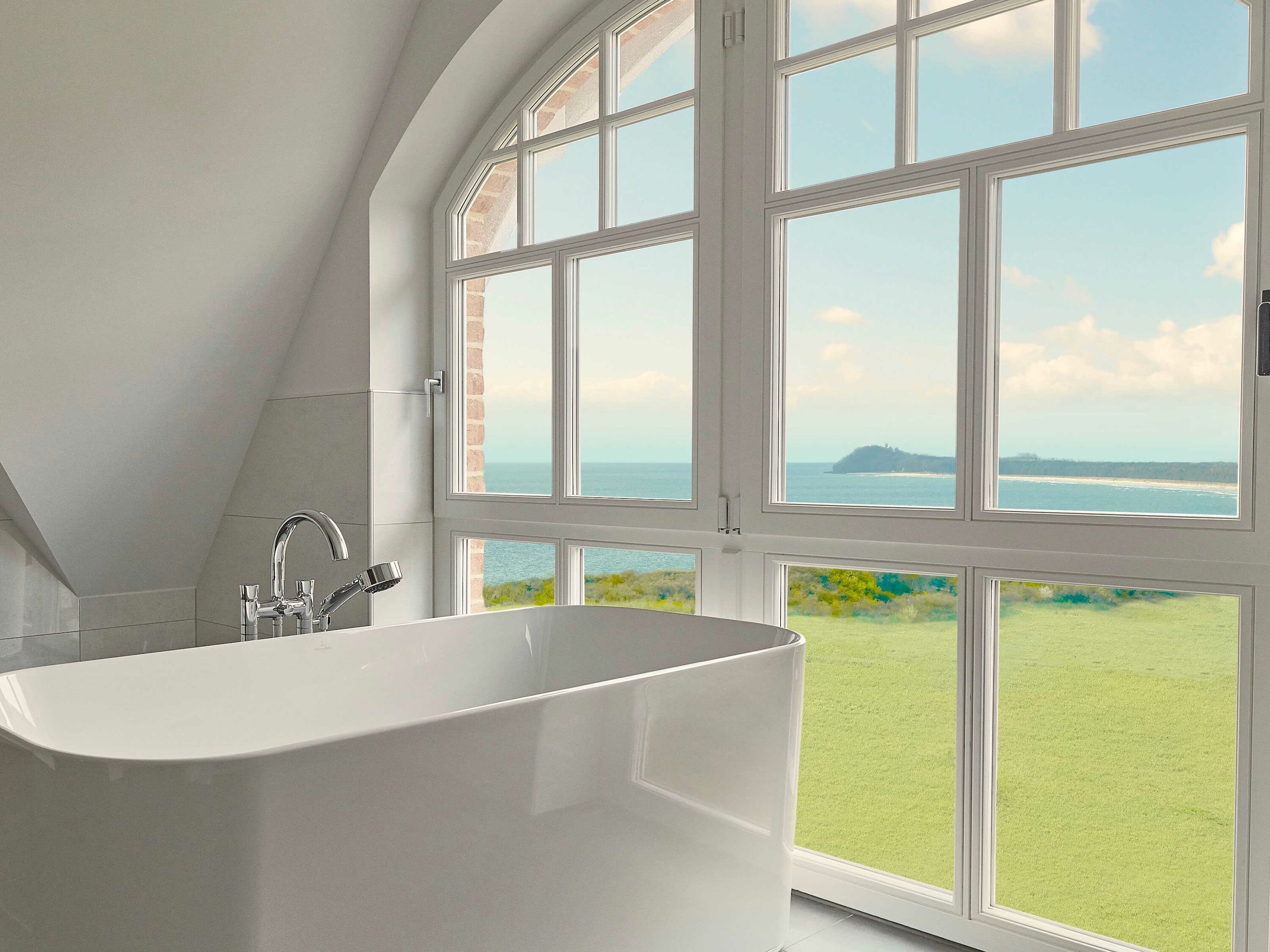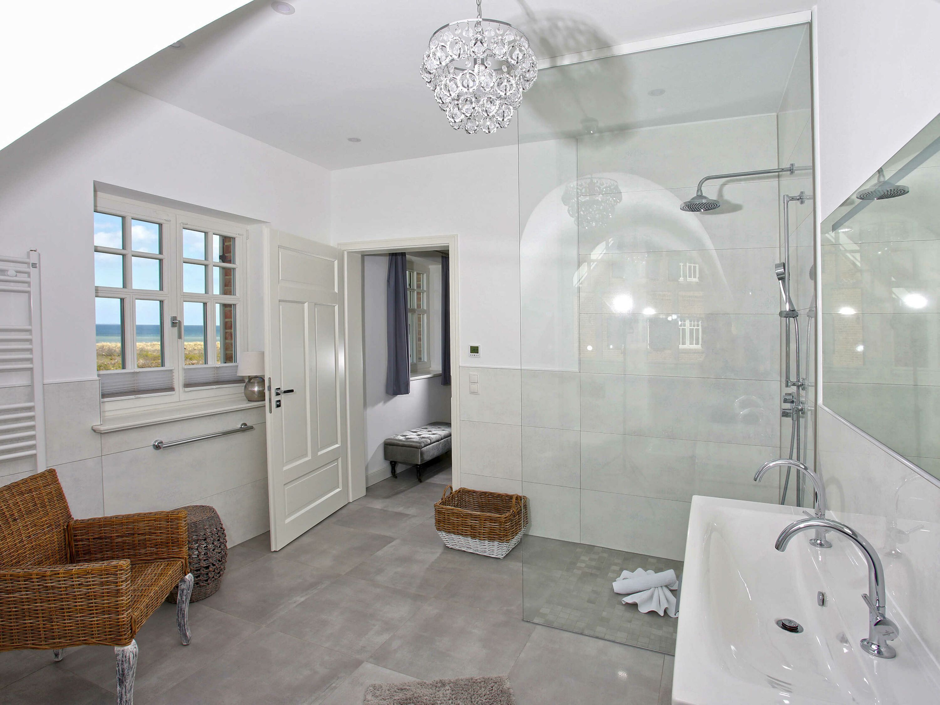 Eines der Bäder ist mit einer großen Dusche, einem Doppelwaschtisch sowie einer freistehenden Badewanne mit atemberaubendem Meerblick- ausgestattet. Das andere Bad verfügt über eine Dusche, ebenfalls mit einem Doppelwaschtisch.