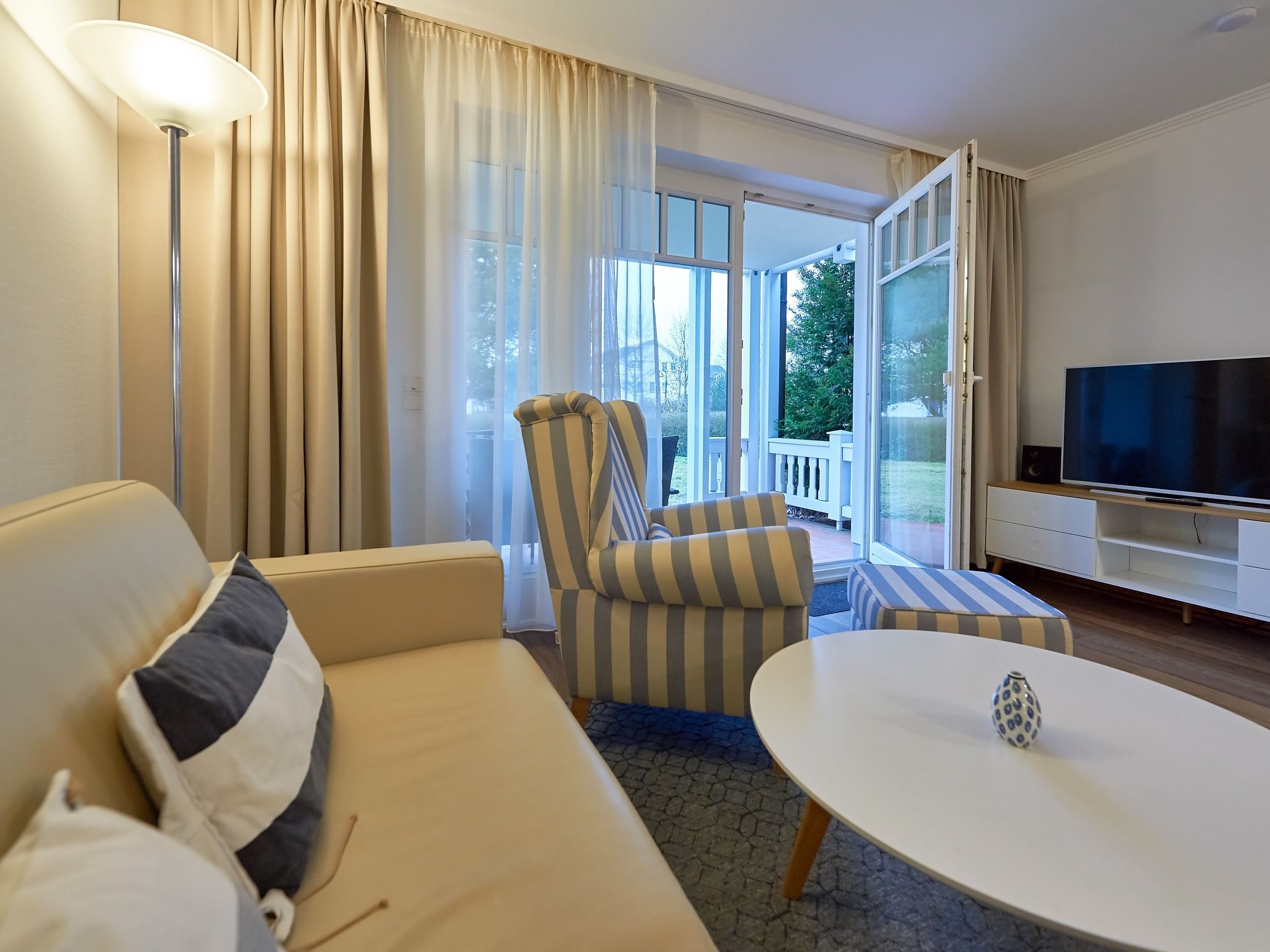 Diese wunderschön eingerichtete Ferienwohnung begrüßt Sie auf rund 63 qm Wohnfläche im Erdgeschoss von Haus 9 im „Dünenpark Binz“. Bis zum herrlichen Sandstrand sind es durch das nahe Dünenwäldchen nur rund zwei Gehminuten.