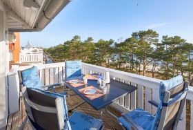 Im Dachgeschoss der Villa Strandidyll erwartet Sie die Wohnung 13 mit rund 55 m² Wohnfläche und herrlichem Panoramablick auf die Ostsee.