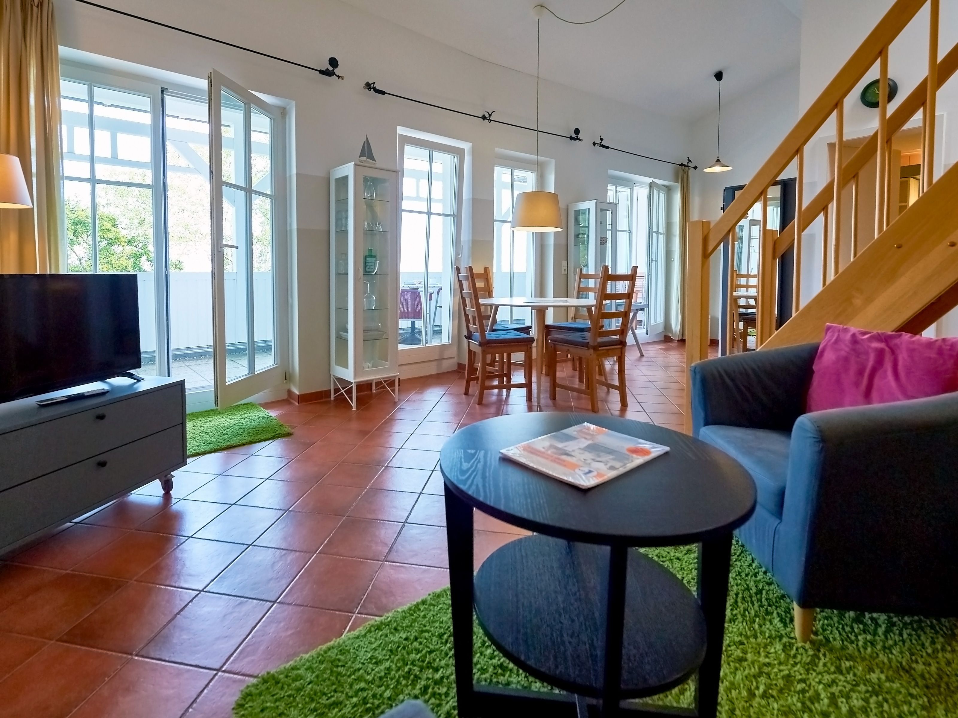 Diese elegante Maisonette-Wohnung mit rund 50 qm Wohnfläche und einem einzigartigen Meerblick erwartet Sie im dritten Obergeschoss, ganz bequem mit dem Aufzug zu erreichen.