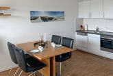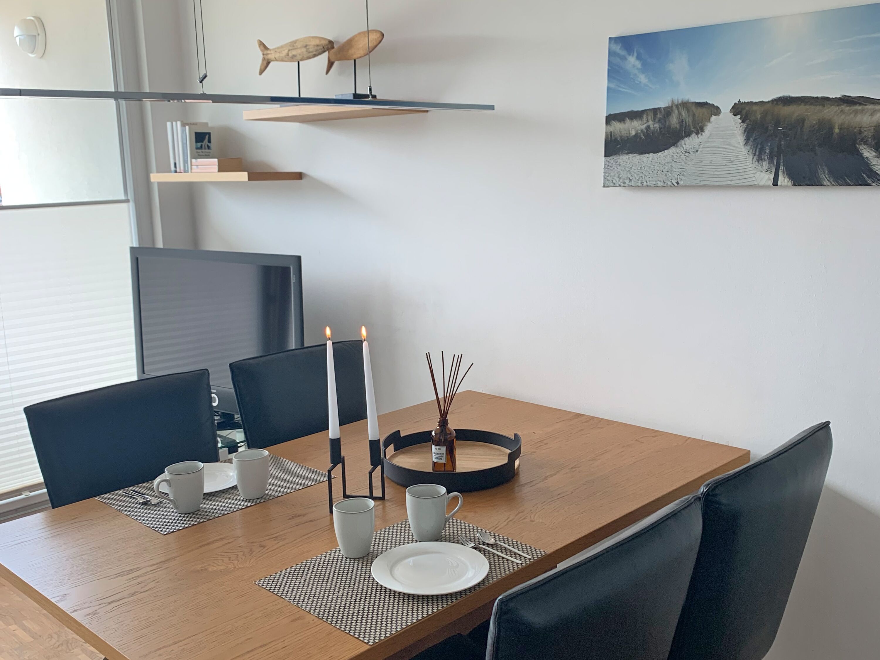 Das geräumige Wohn-/Esszimmer mit integrierter Küche ist geschickt in die verschiedenen Bereiche aufgeteilt. Machen Sie es sich auf der Couch vor dem großen Flachbild-TV gemütlich, lesen Sie ein gutes Buch oder surfen Sie im Internet. W-LAN steht kostenfrei zur Verfügung. Ein kleiner Bioethanol-Kamin sorgt für romantische Stimmung.