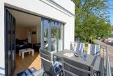 Das Appartement Strandidyll besteht aus einem kombinierten Wohn-/Esszimmer mit integrierter Küche, zwei separaten Schlafzimmern, zwei Badezimmern und einem Flurbereich. Der möblierte Balkon hat eine elektrische Markise und ist dem Wohnzimmer vorgelagert.