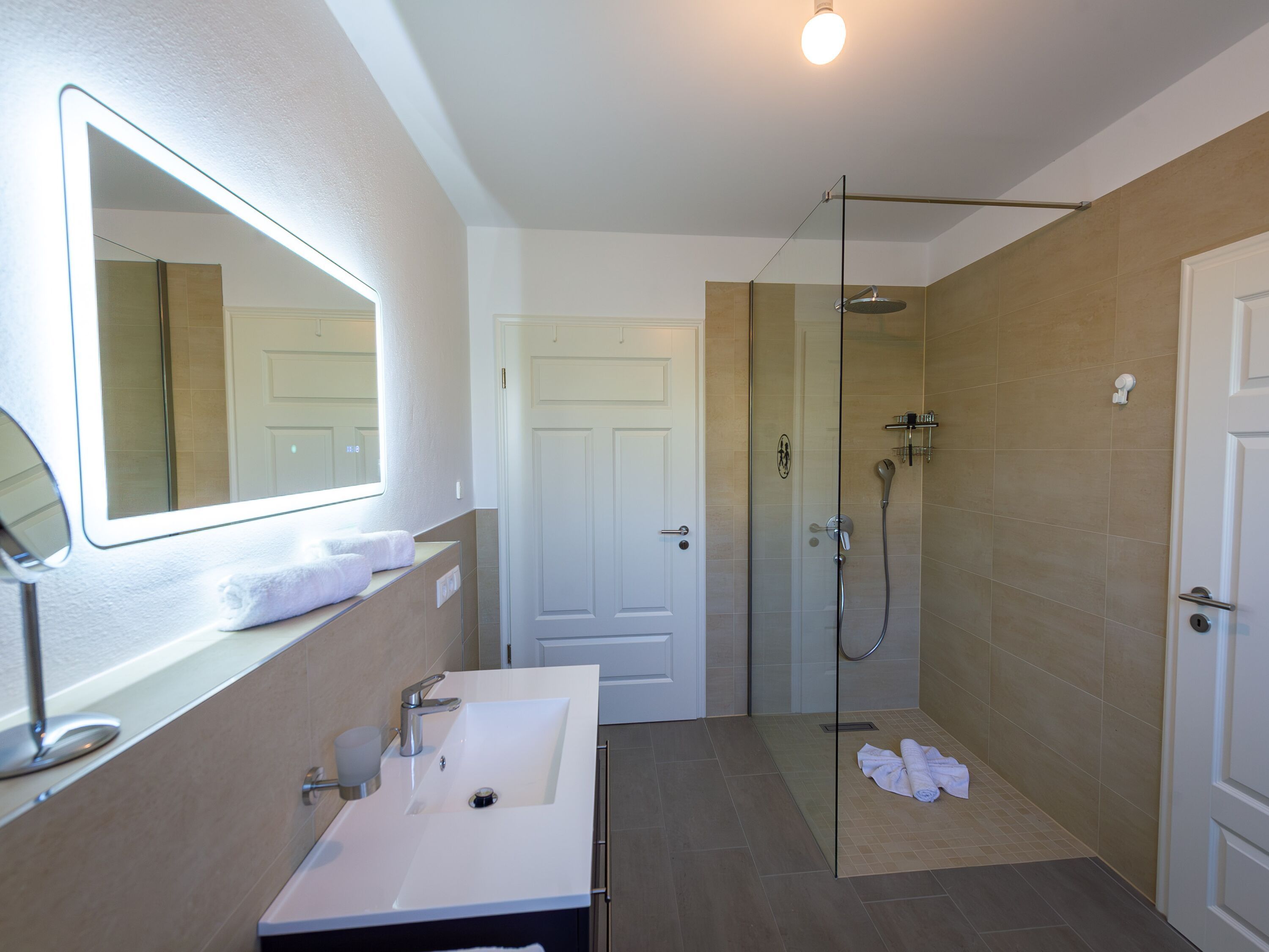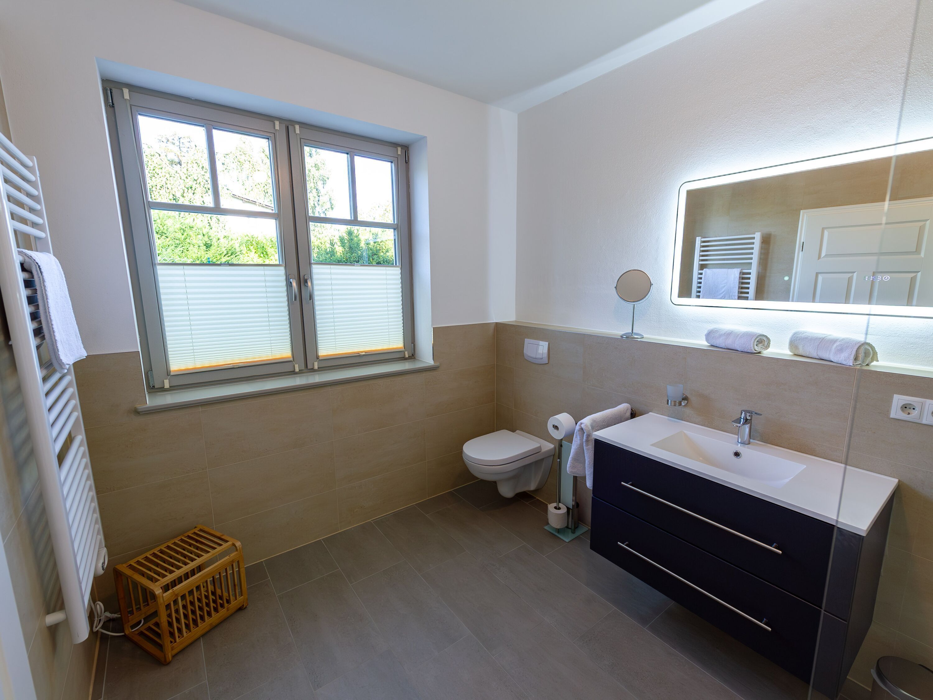 Im Erdgeschoss des Hauses finden Sie darüber hinaus eines der beiden großzügigen Duschbäder, den Hauswirtschaftsraum mit Waschmaschine und Trockner sowie ein Plätzchen zum Arbeiten, falls Sie nicht auf Ihren Laptop verzichten können. W-LAN ist selbstverständlich kostenfrei verfügbar.