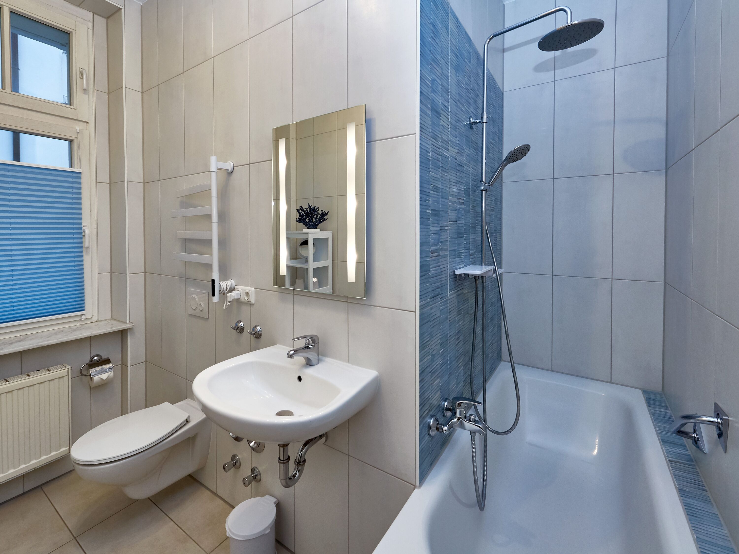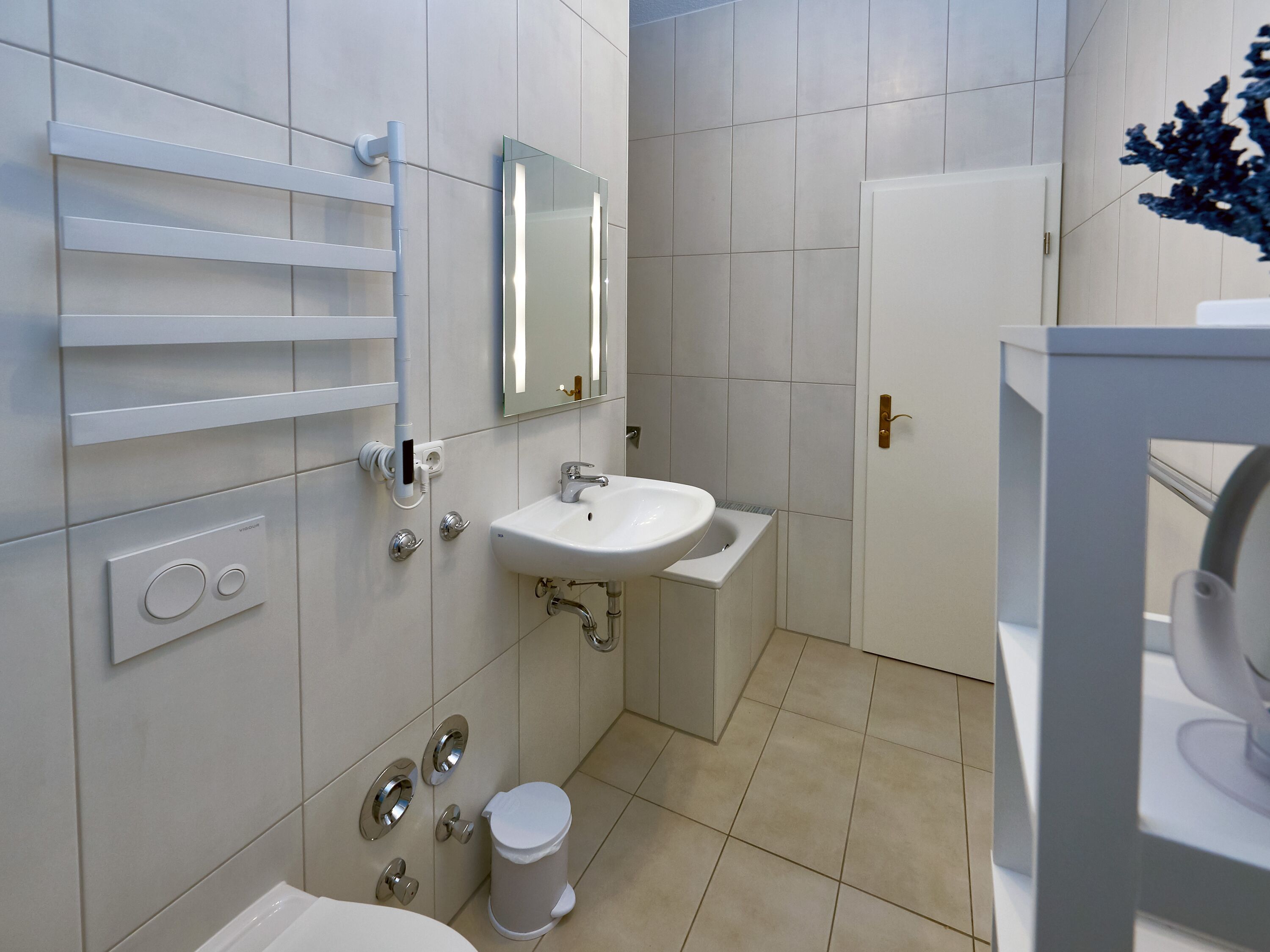 Für Ihren besonderen Komfort verfügt die Wohnung 5 nicht nur über ein Badezimmer mit Wanne/WC, sondern auch noch über ein extra Gäste-WC. Die hygienischen Bodenbeläge bestehen aus Fliesen bzw. im Wohnbereich aus Laminat.
