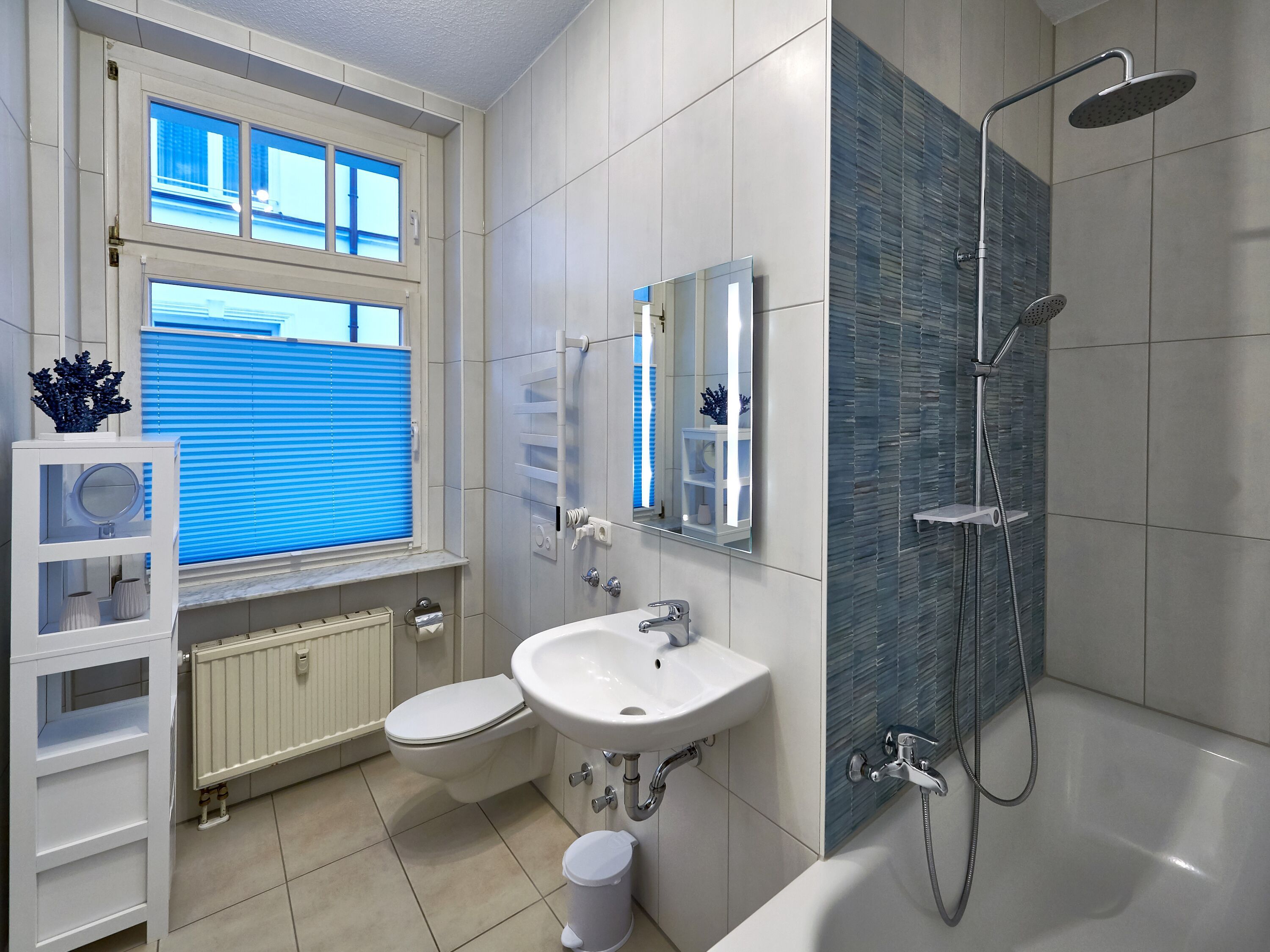 Die Wohnung 5 im ersten Obergeschoss der Villa „Strandidyll“ ist ein wunderschönes 2-Raum-Appartement mit großzügigen 75 qm Wohnfläche. Bis zu fünf Personen nebst gut erzogenem Vierbeiner finden hier ein Zuhause auf Zeit, das mit persönlichem Charme, modernem Urlaubskomfort und traumhaftem Meerblick zu begeistern weiß.