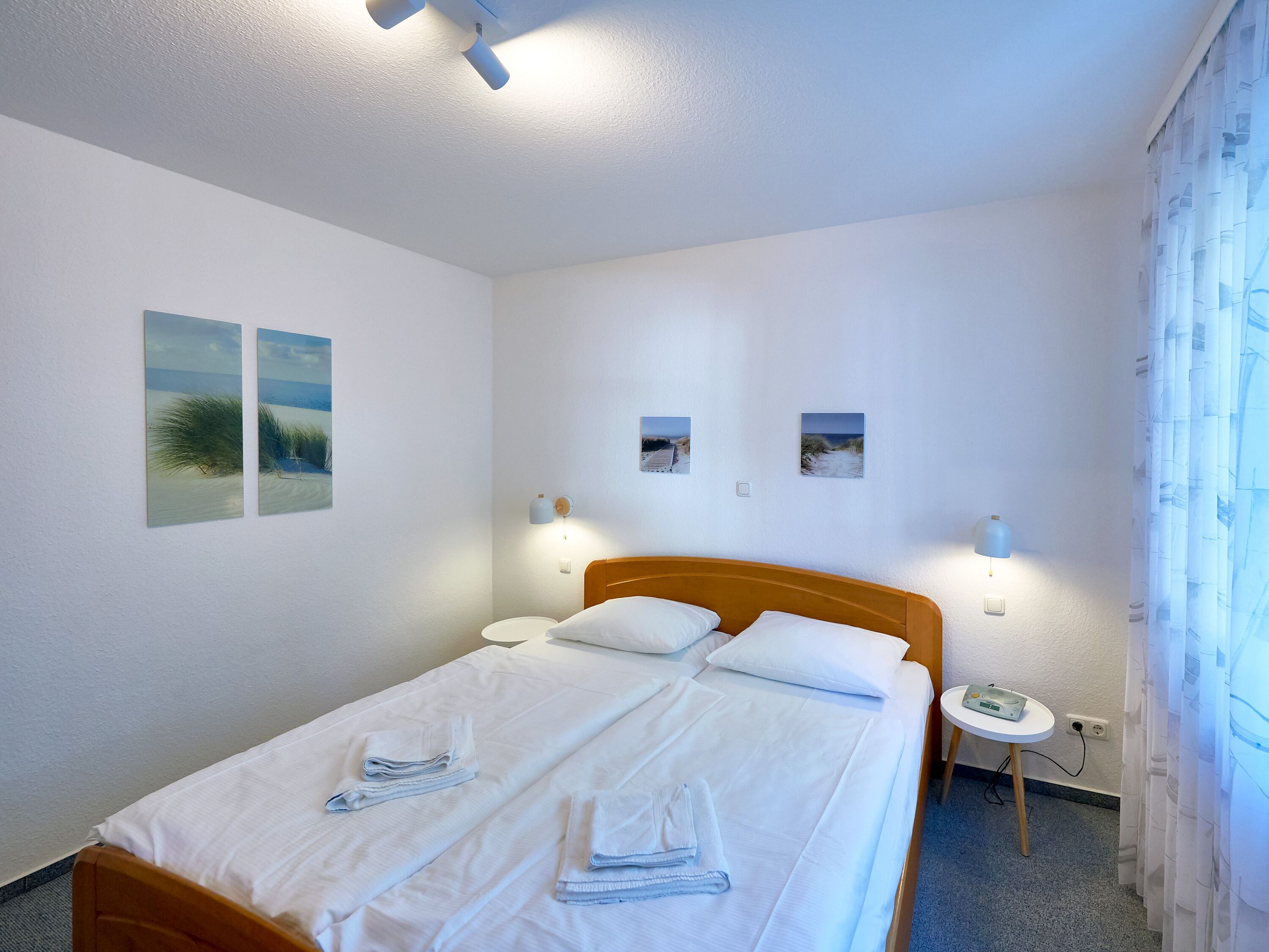 Die Couch im Wohnbereich lässt sich bei Bedarf mit wenigen Handgriffen in eine Schlafgelegenheit für zwei Personen verwandeln. Im separaten Schlafzimmer Ihres Urlaubsdomizils verspricht ein komfortables Doppelbett (1,80 x 2,00 m) angenehme Träume. Hier finden Sie auch einen großen Kleiderschrank für Ihre Urlaubsgarderobe.